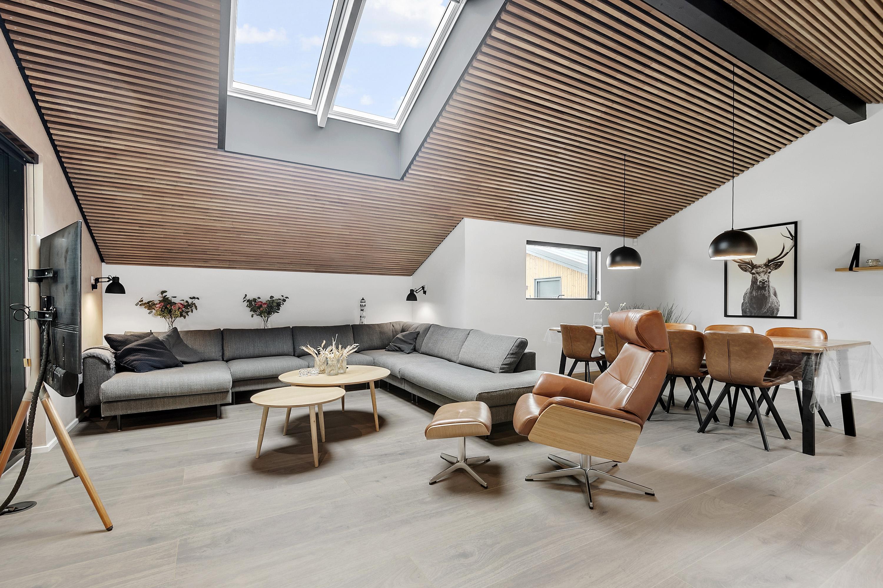 Du kan også nyde roen og freden på de 300 m2 store terrasser, hvor der er havemøbler, liggestole, parasol og grill.