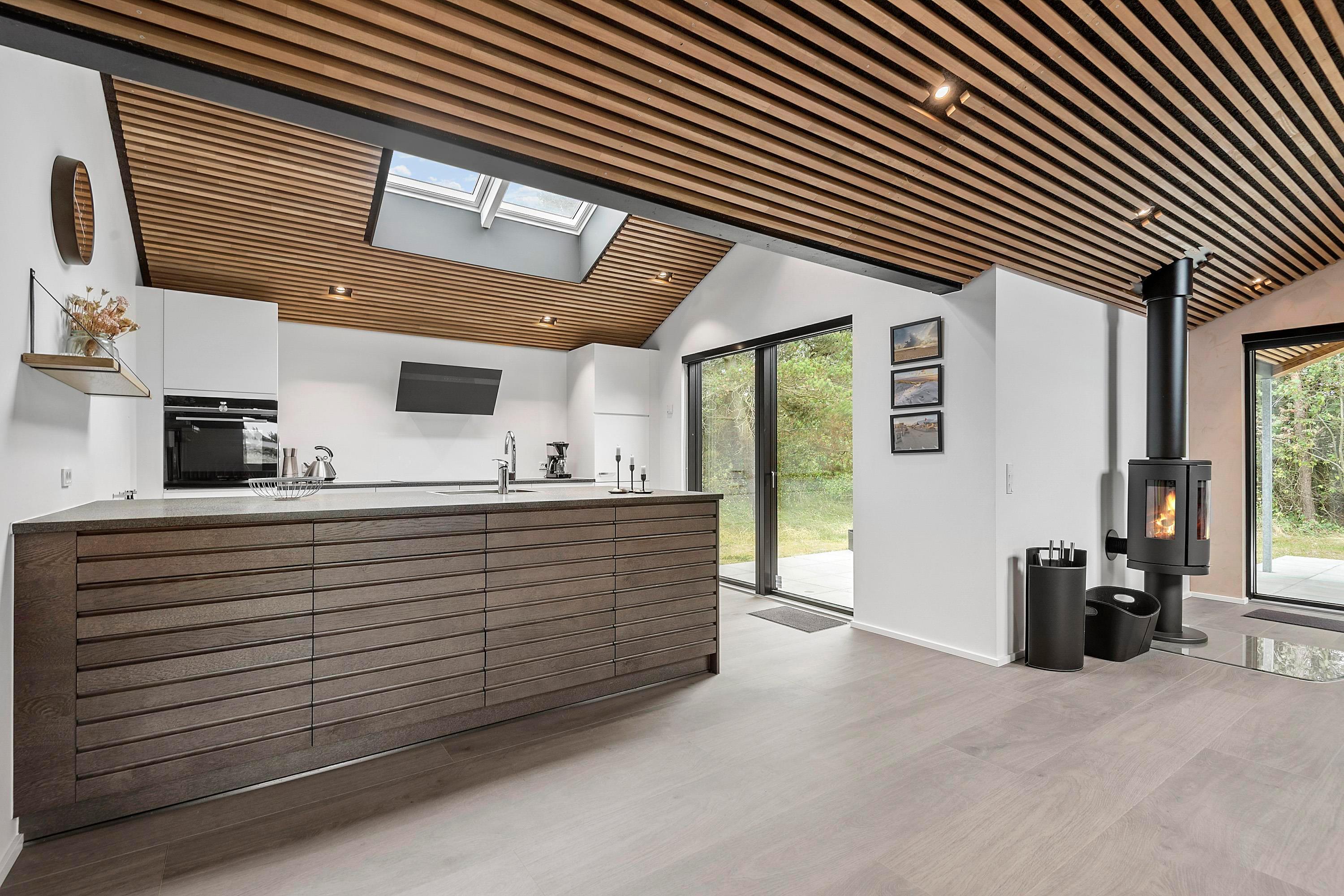 Dette luksus sommerhus er beliggende på en skøn naturgrund tæt på by og strand.