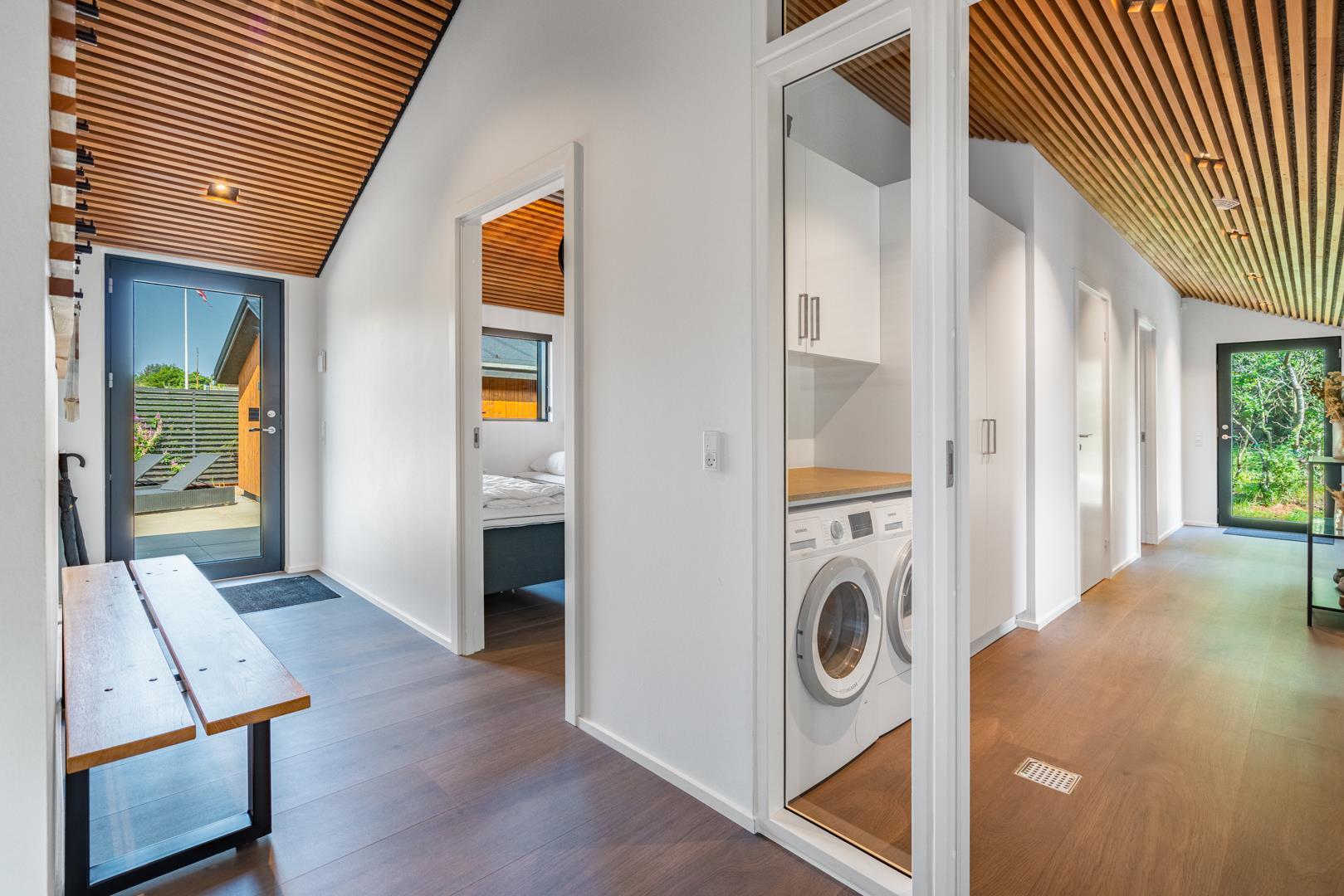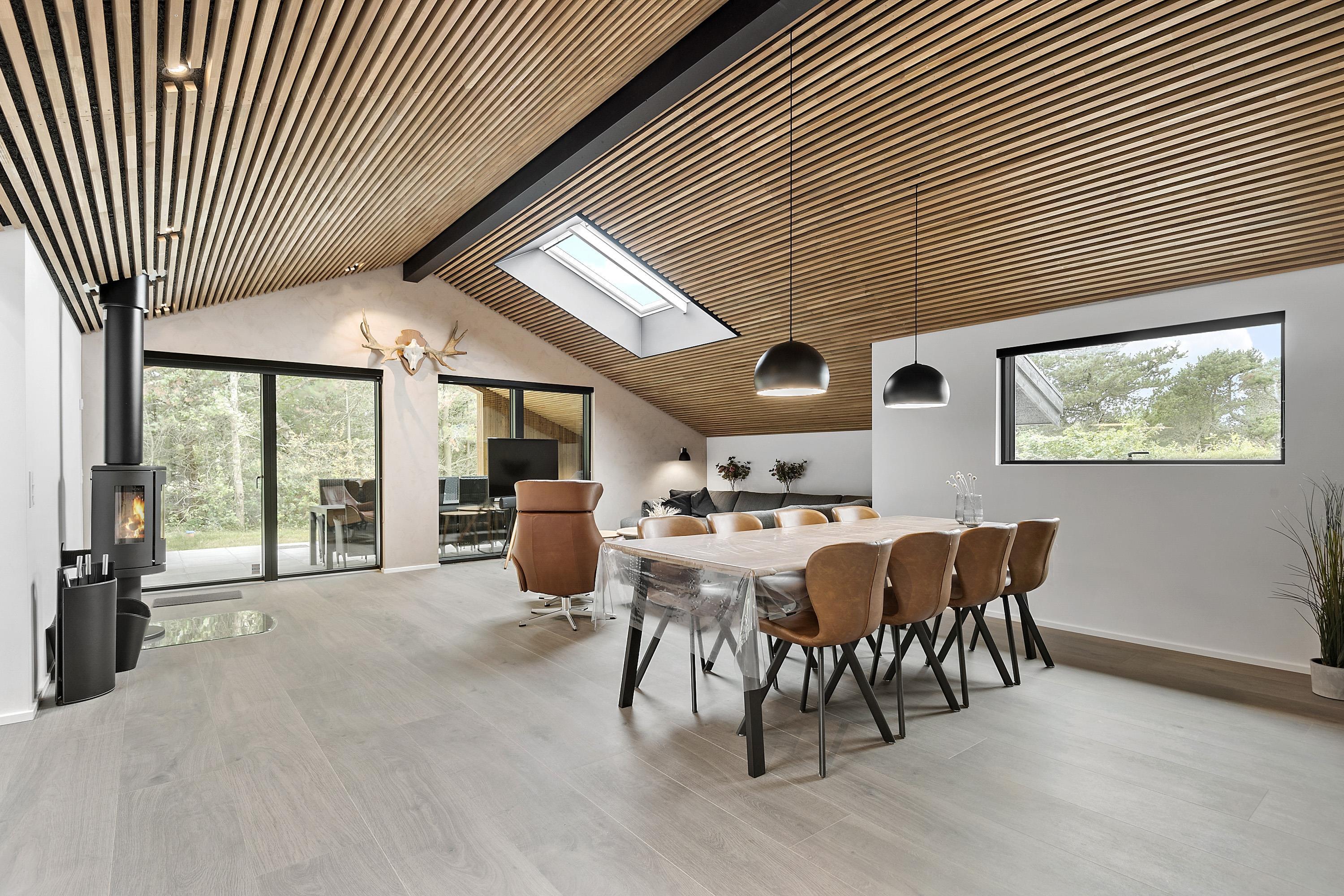 Et dejligt stort og rummeligt sommerhus, som er lyst og lækkert indrettet. Det store skønne køkkenalrum er i åben forbindelse med stuen, hvor man sidde og hygge sig ved brændeovnen. PS4 til rådighed. Der er 4 gode soveværelser - 2 med dobbeltsenge og 2 med enkeltsenge.
