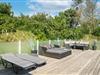 Huset er omkranset af pragtfuld, stor og helt aflukket træterrasse, her kan børnene hygge sig isandkassen.