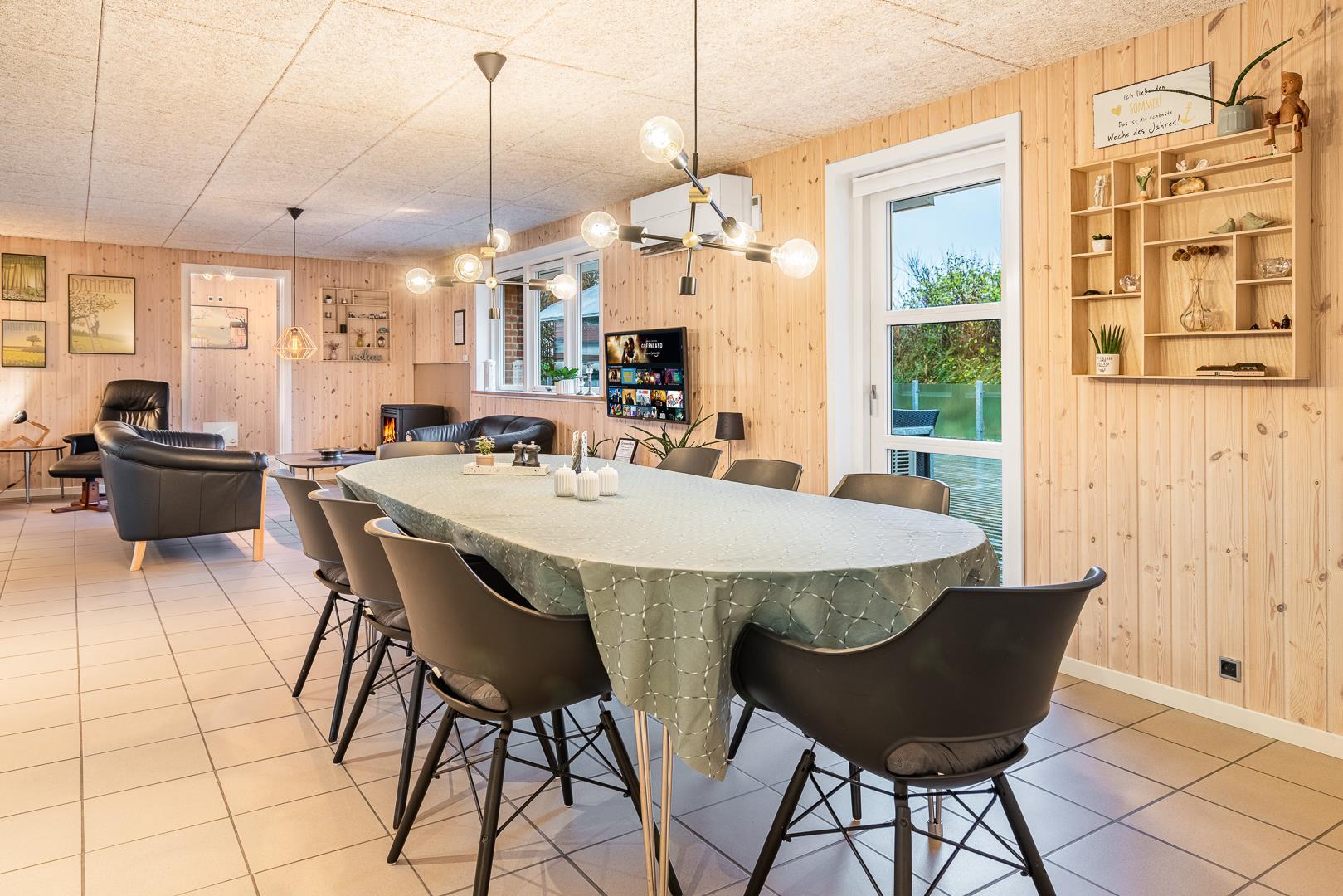Huset er hyggeligt og indrettet med god smag. Stort køkken som er i åben forbindelse med stuen, som har brændeovn.