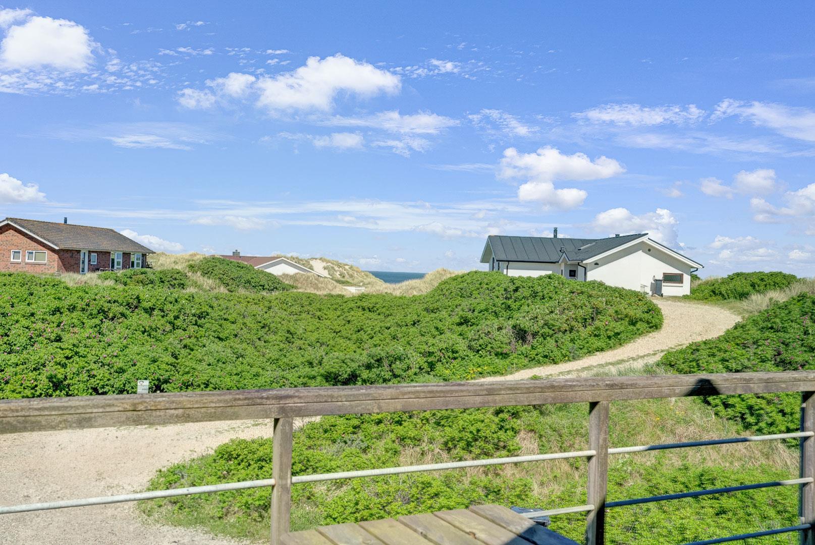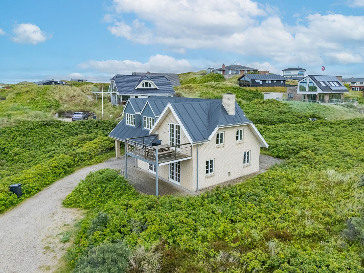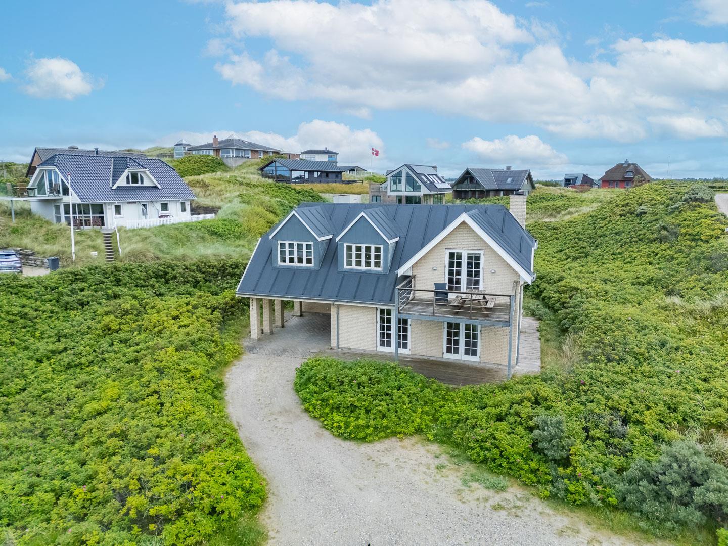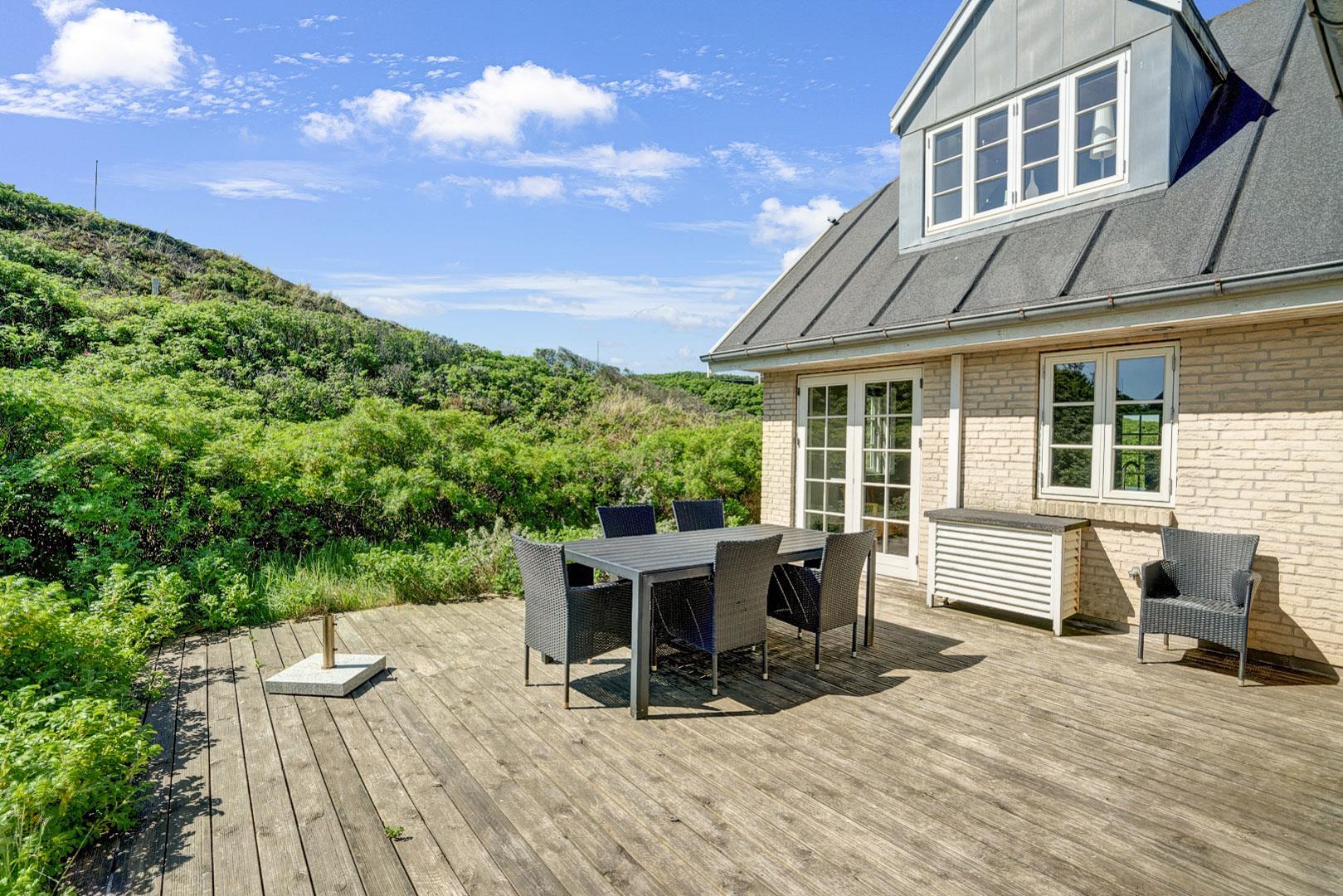 Oplev et helt unikt sommerhus i Henne Strand, hvor havudsigten kan nydes fra både første sal og den imponerende 12 kvm store altan. Beliggende på en enestående grund i første klitrække og kun 200 meter fra Vesterhavet, byder dette hus på den ultimative kystoplevelse. Med et imponerende terrasseanlæg på 60 kvm, udstyret med liggestole, parasol og komfortable havemøbler, er der rig mulighed for at nyde det udendørs liv i fulde drag.