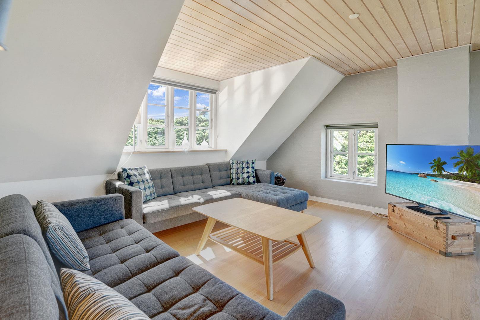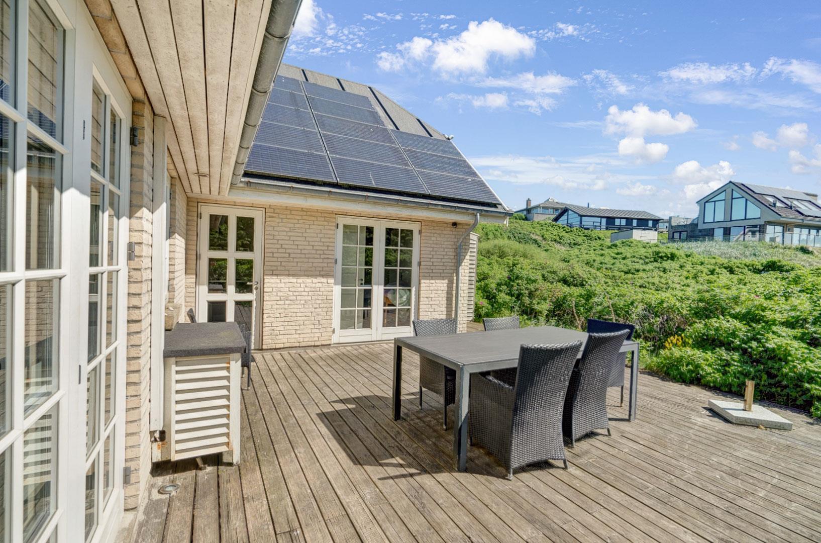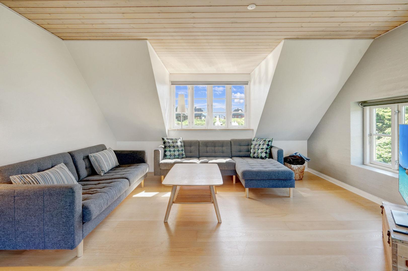 Indendørs venter hyggelige opholdsstuer både i stueplan og på første sal, hvor I kan samles og nyde hinandens selskab. I feriehuset finder du også et super dejligt køkken/alrum med pejs samt 3 skønne soveværelser med komfortable senge og 2 badeværelse. Forkæl dig selv med afslapning i spabadet eller saunaen efter en dag fyldt med strandaktiviteter. Uanset om du ønsker at nyde solnedgangen, morgensolen eller den storslåede udsigt, vil de fantastiske terrasser være det perfekte sted at opleve det hele. I dette skønne luksusferiehus på Strandvejen i Henne Strand er alle ingredienser til en uforglemmelig ferie til stede.