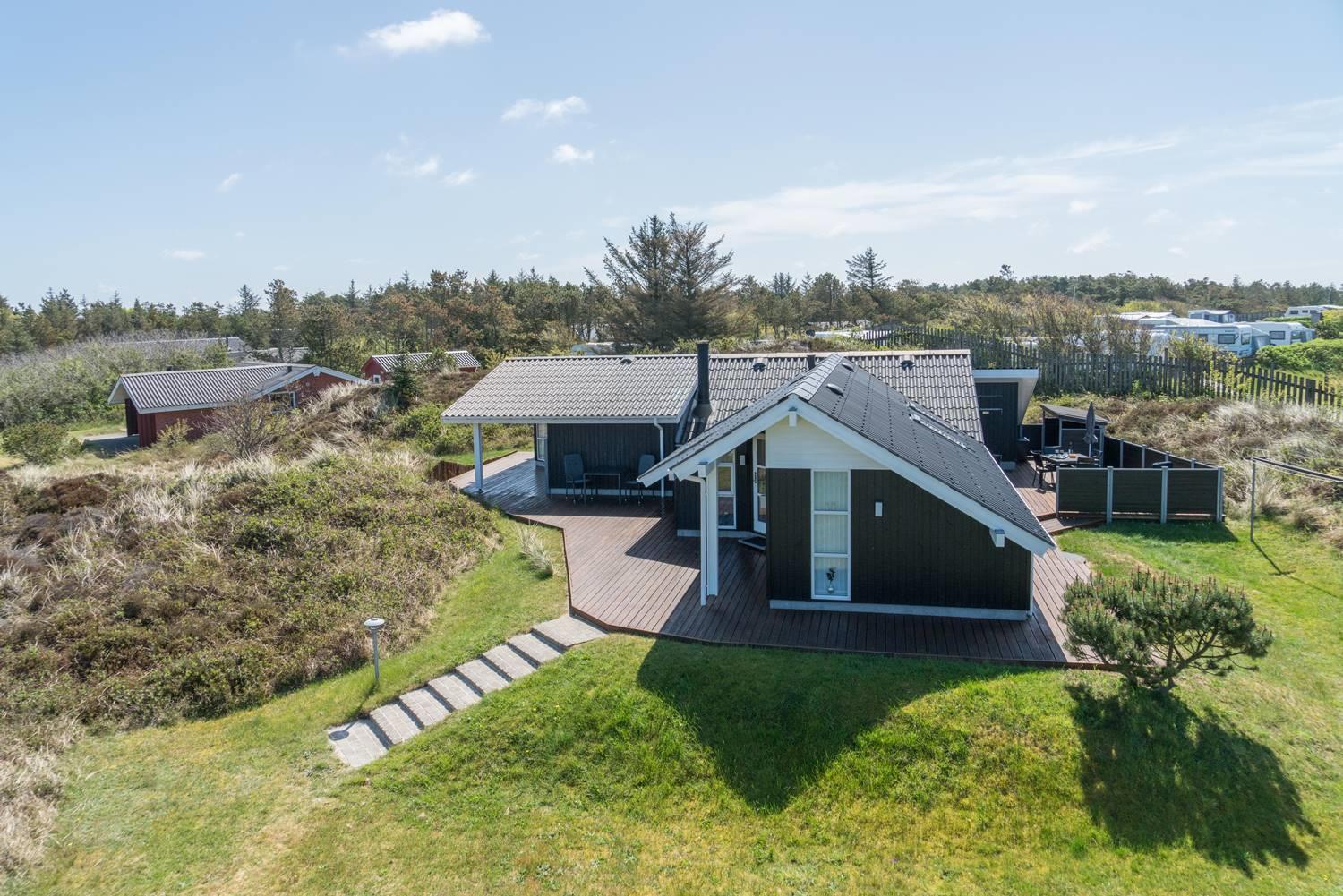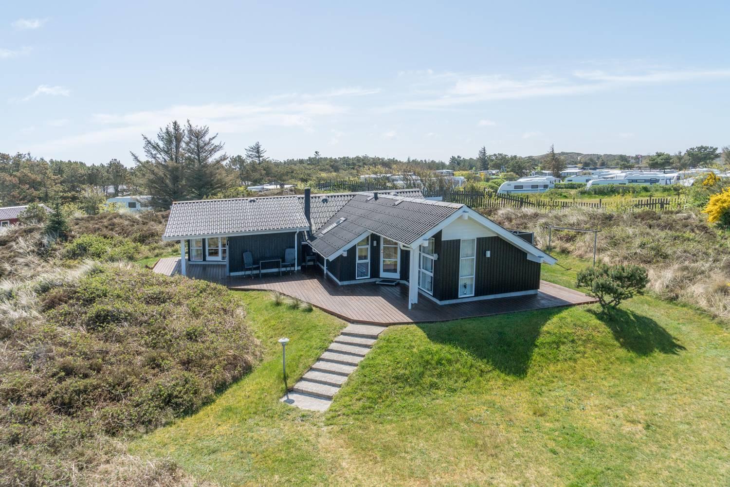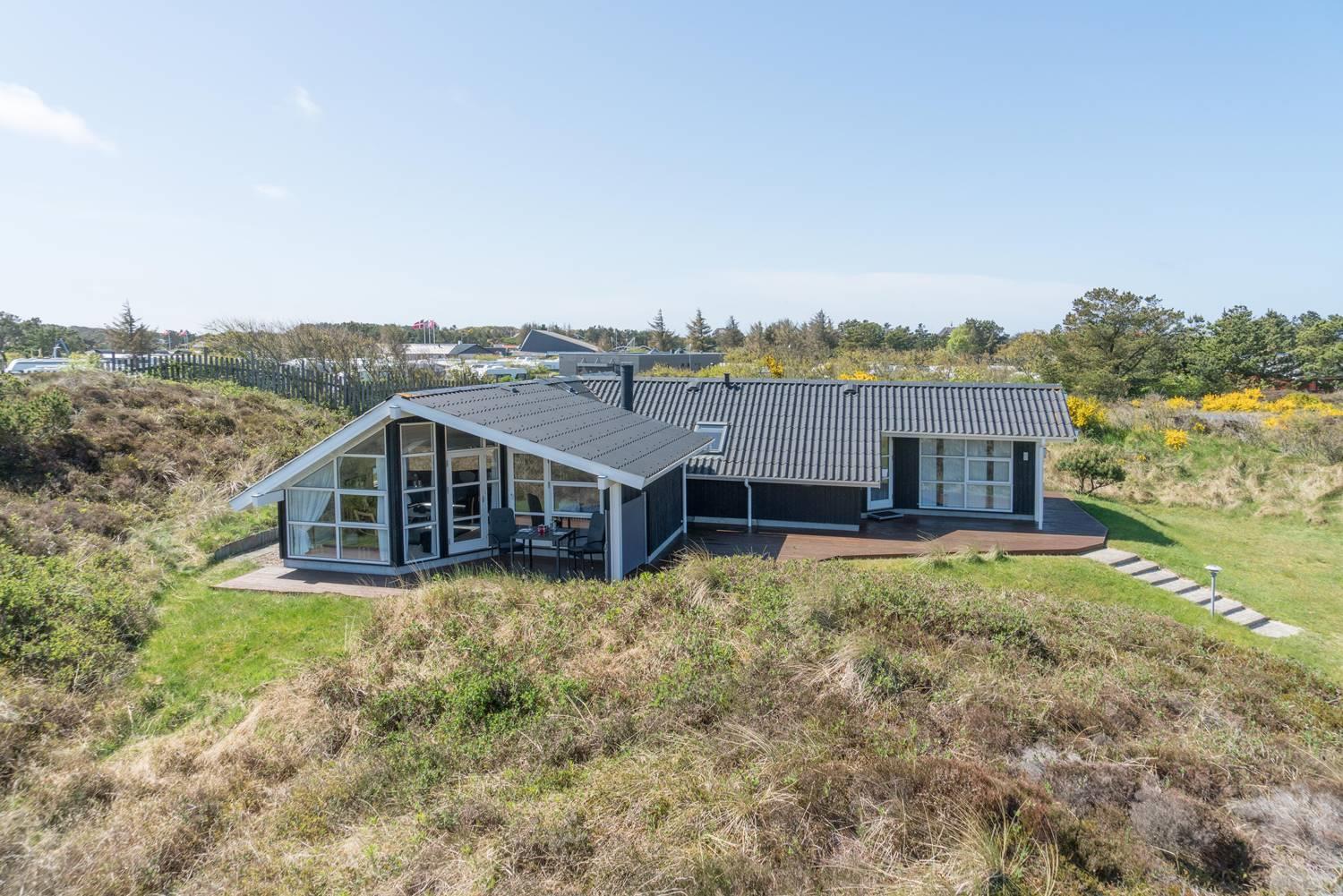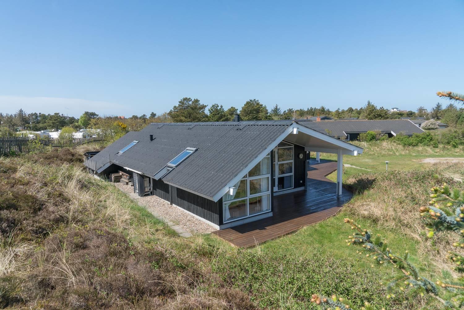 Velholdt feriehus på naturgrund nær fredet hedeområde og kun 700 m fra havet i Henne Strand.