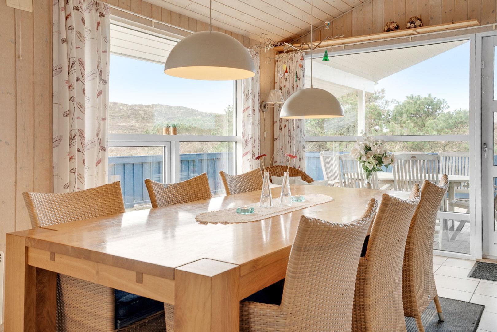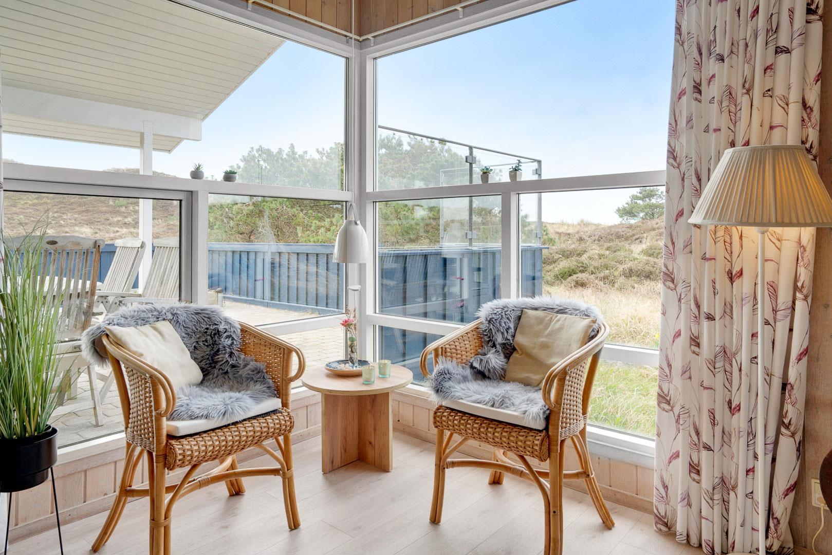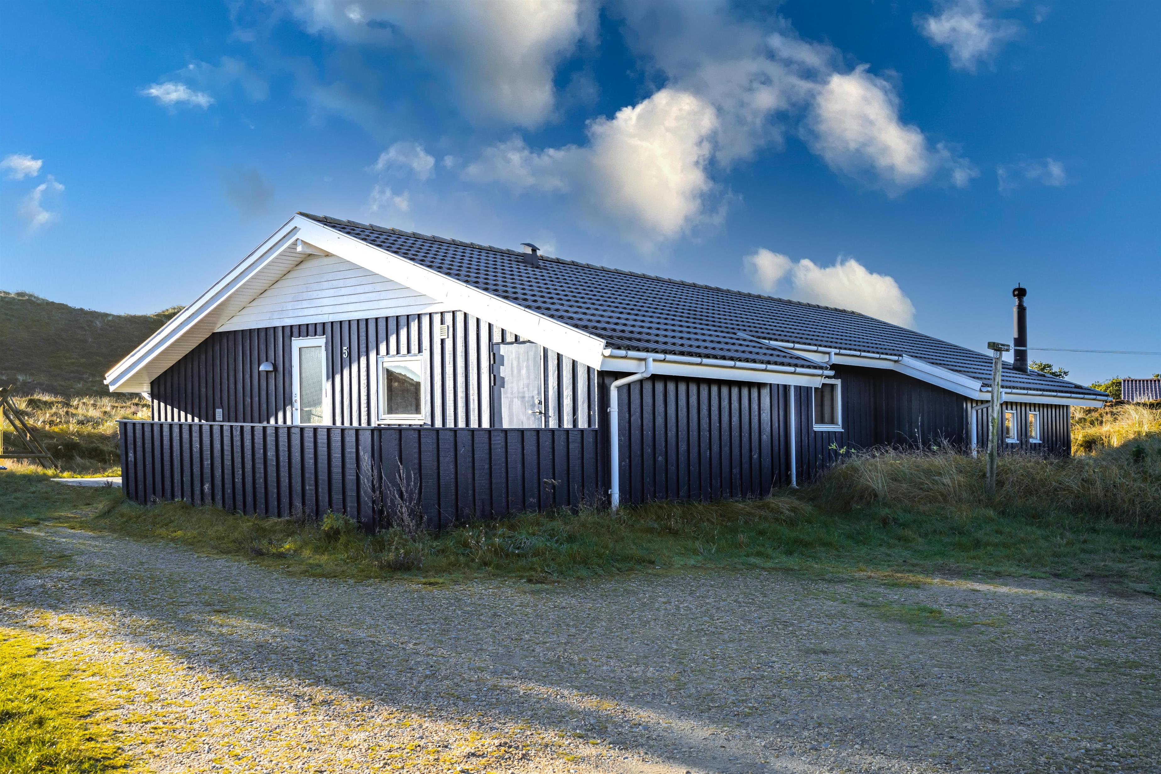 Dejligt, velholdt feriehus beliggende på en ugeneret beplantet klitgrund. Til huset hører der såvel åbent og delvis overdækket terrasse.
