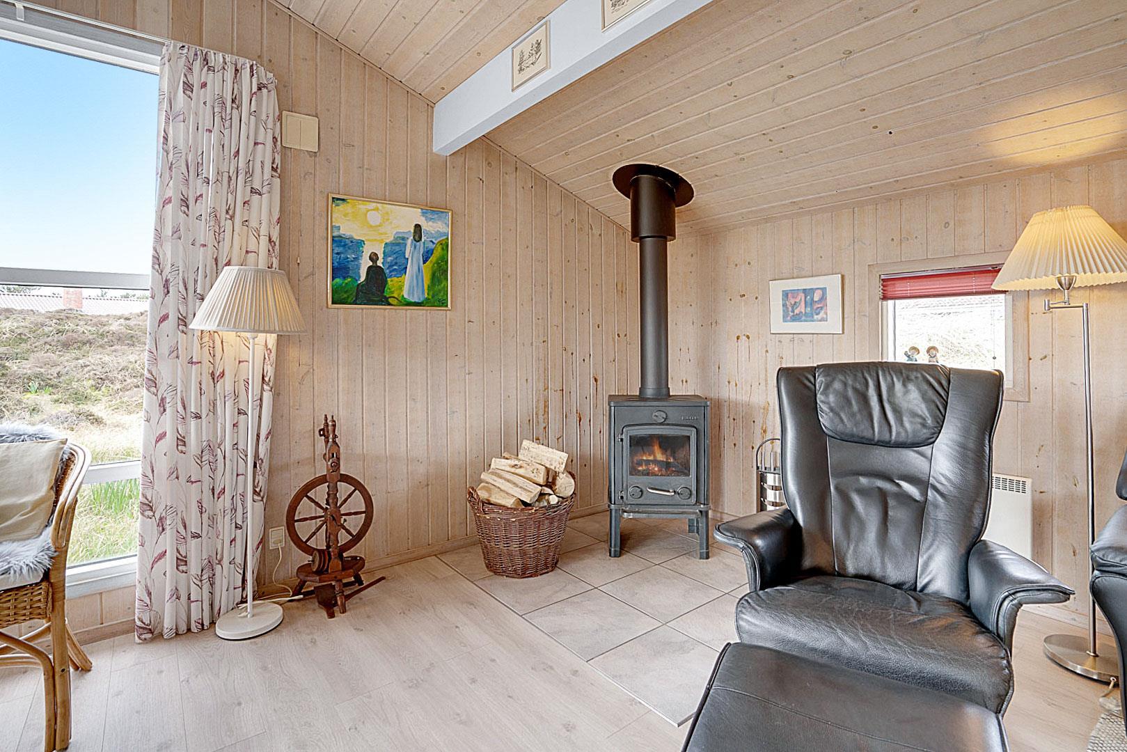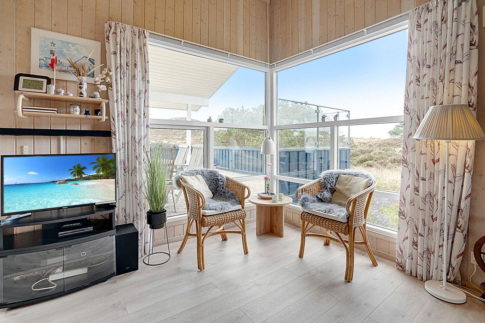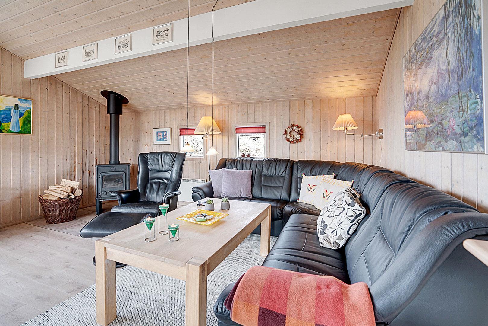 Hyggelig opholdsstue indrettet med gode, komfortable møbler. Der internet i huset, så tag bare computeren med. Der er energibesparende varmepumpe/aircondition i huset. Et virkeligt dejligt feriehus, hvor rammerne er skabt til en god ferie. Oplade-mulighed til El-bil (CEE).