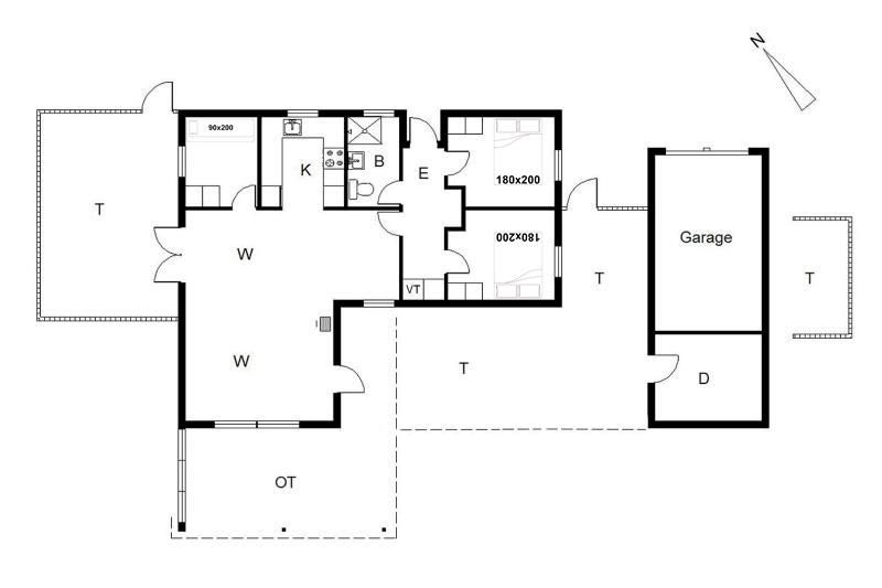 Sengestørrelser: 2 dobbeltsenge 180 x 200 cm + 1 køjeseng 90 x 200 cm.