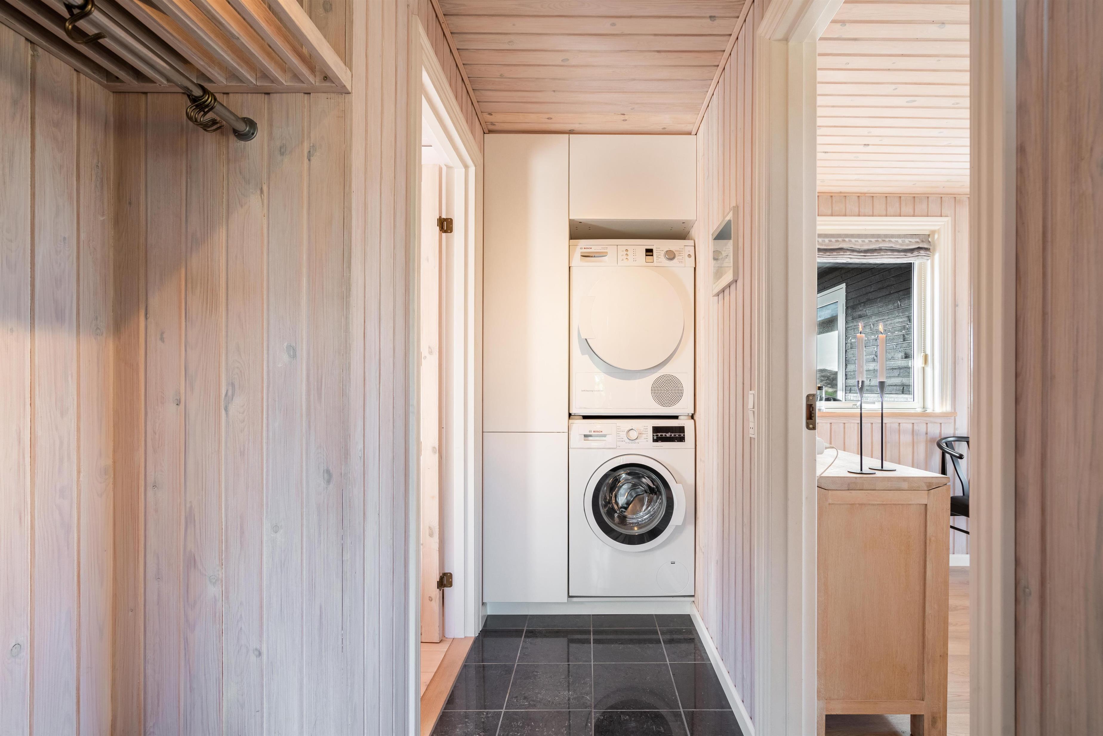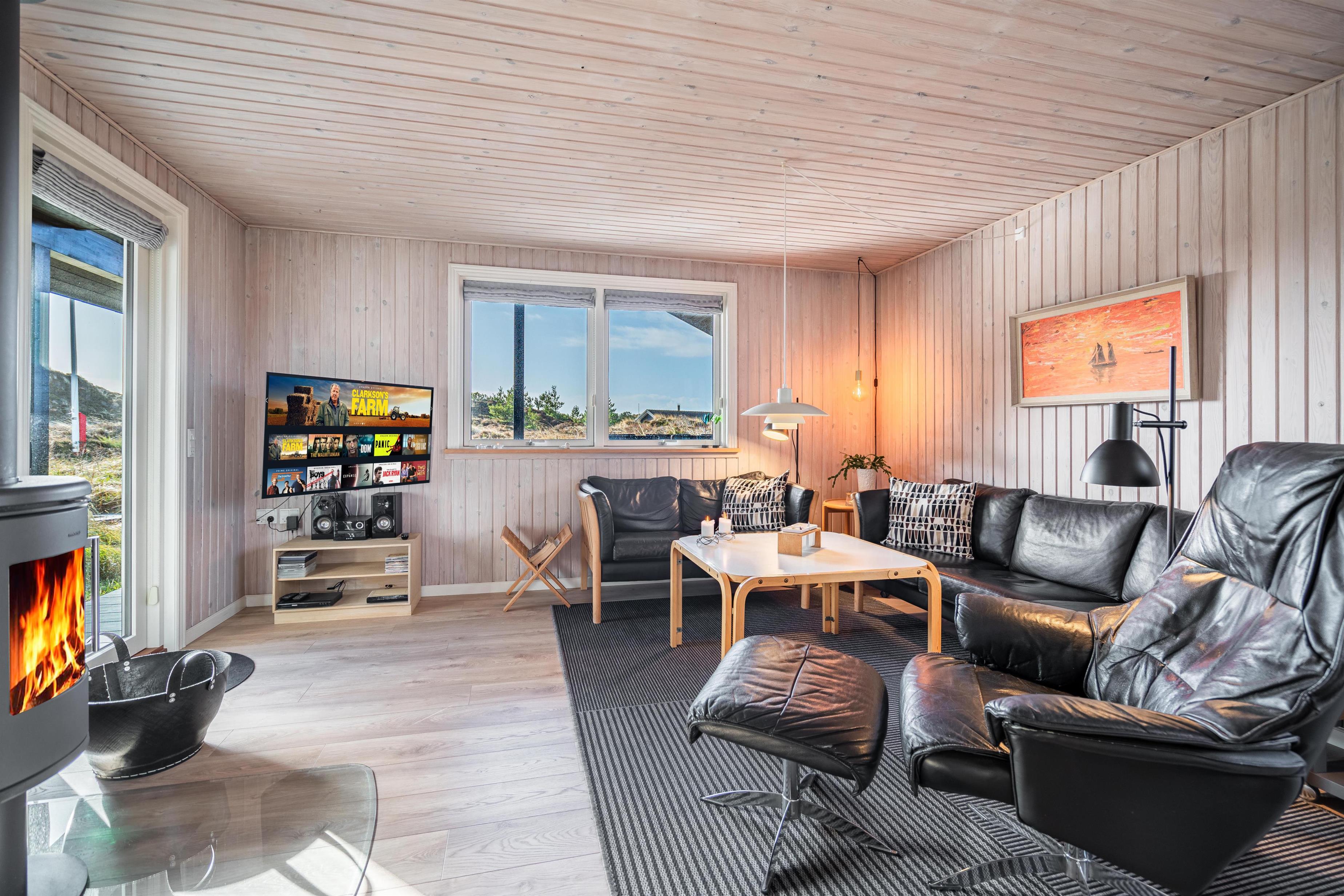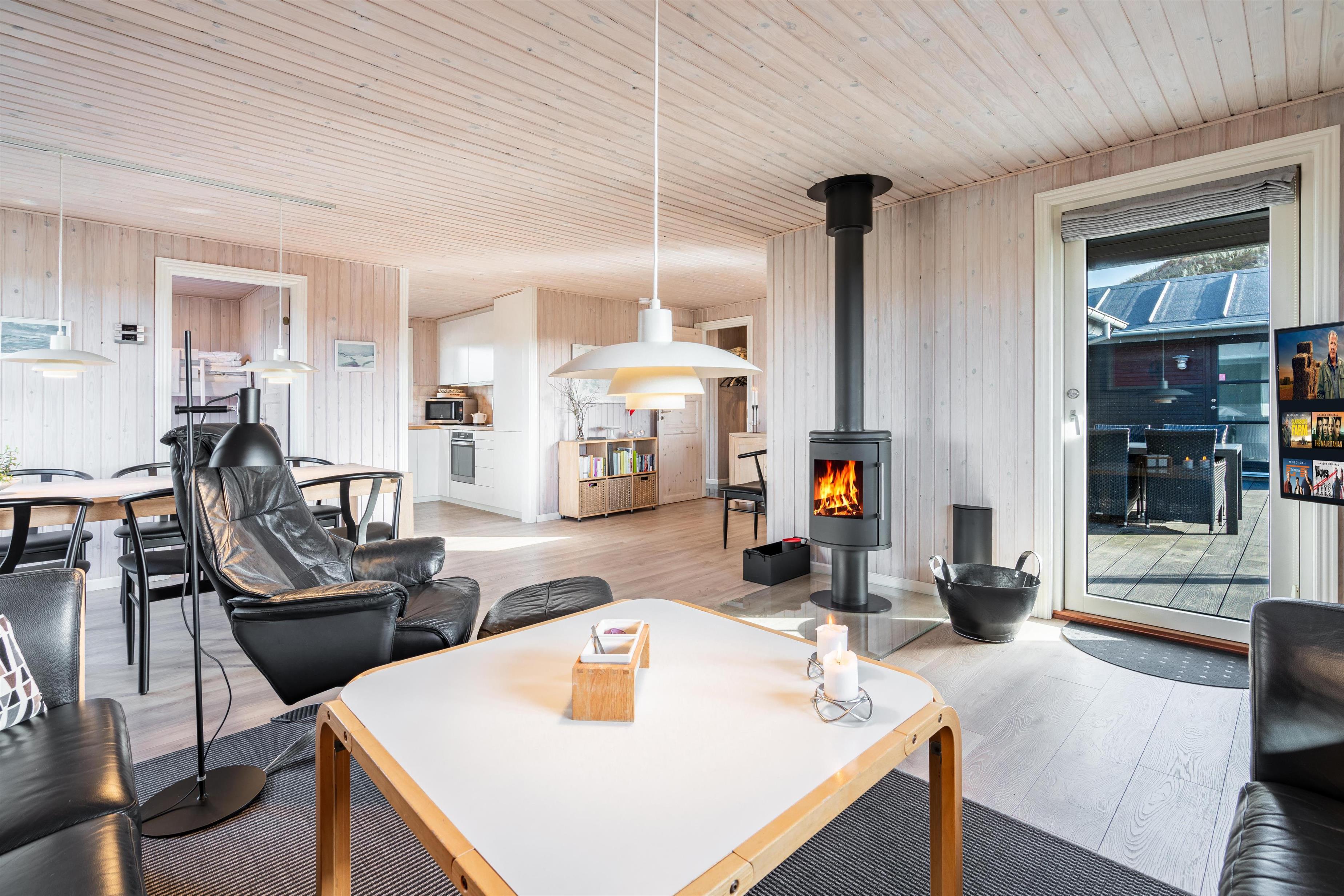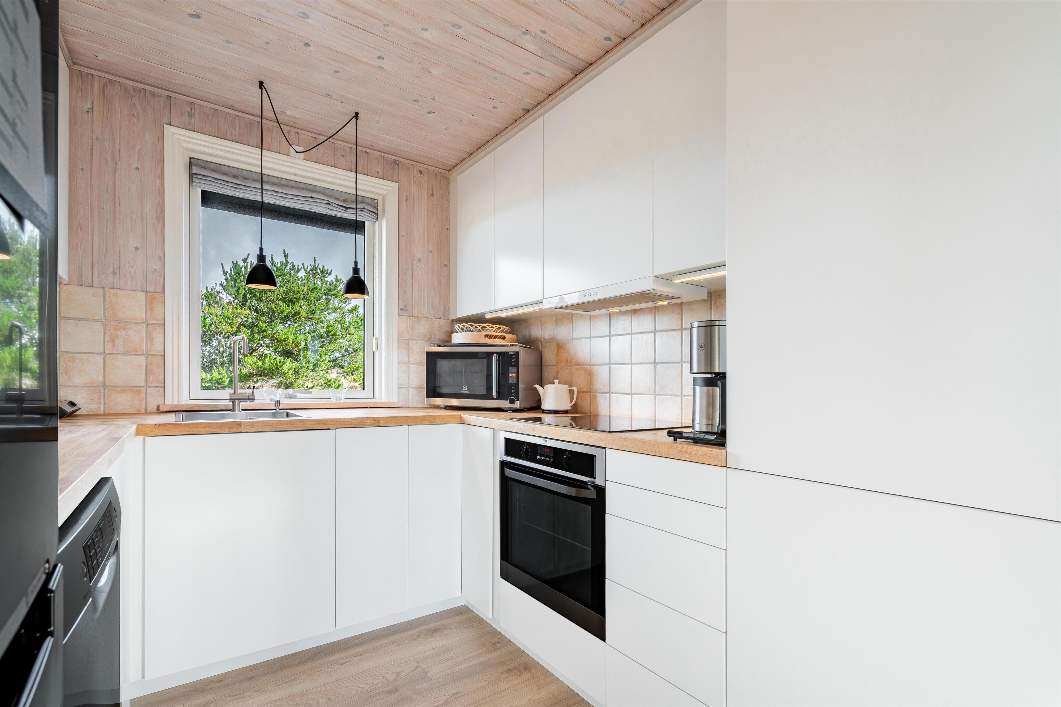 Velholdt, privat feriehus med garage beliggende på en kuperet naturgrund. Læfuld, ugeneret terrasse. Flot badeværelse med gulvvarme og bruseniche. Køkkenet er bl.a. udstyret med opvaskemaskine, mikrobølgeovn. Hyggelig stue som er indrettet med gode møbler. Ikke ryger hus.