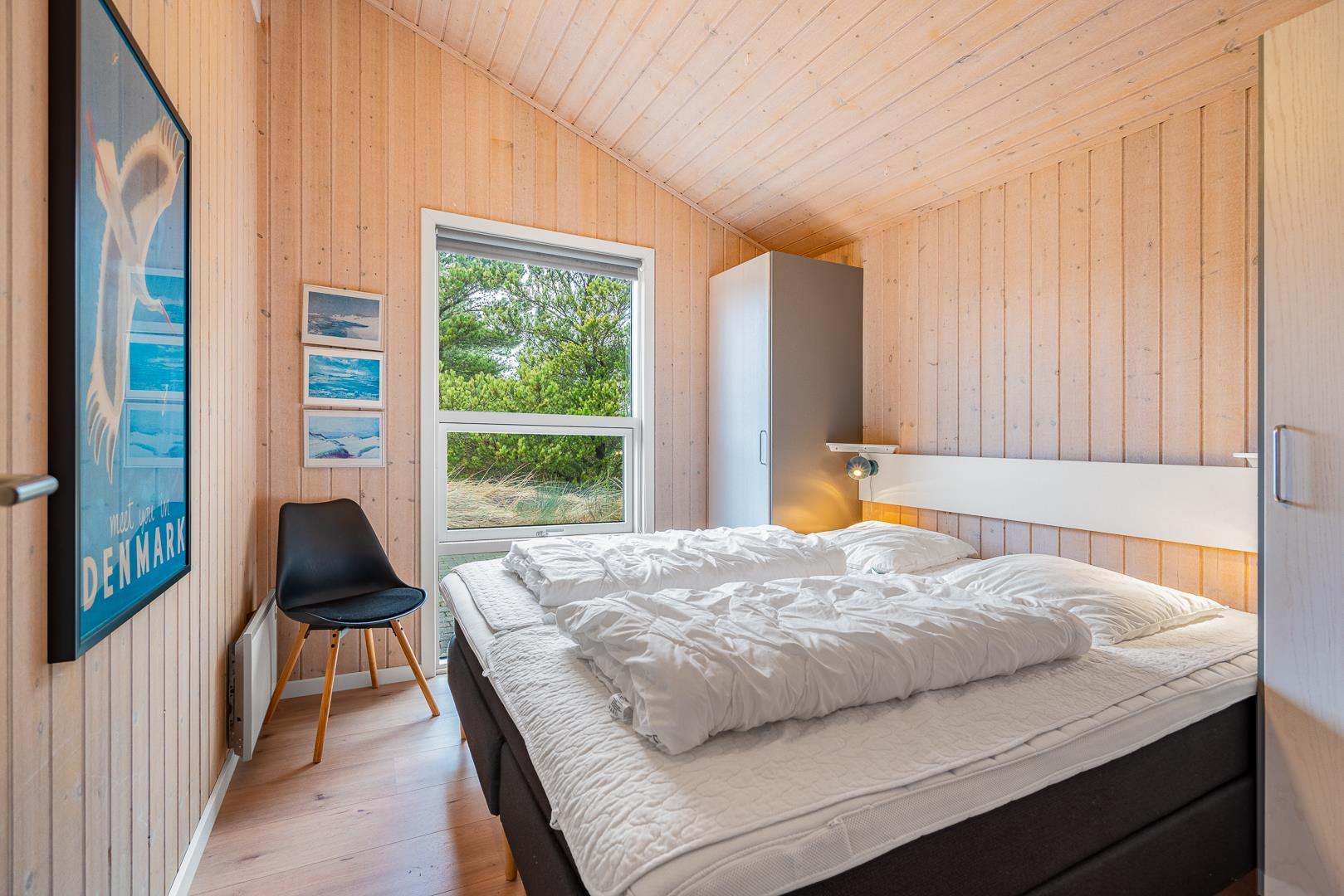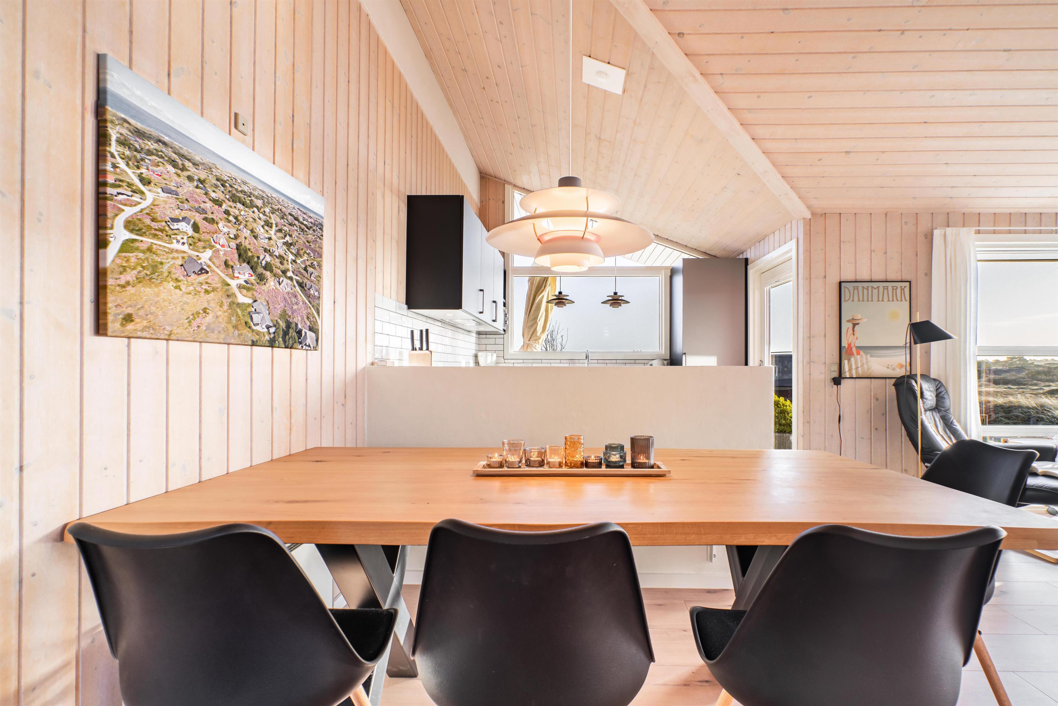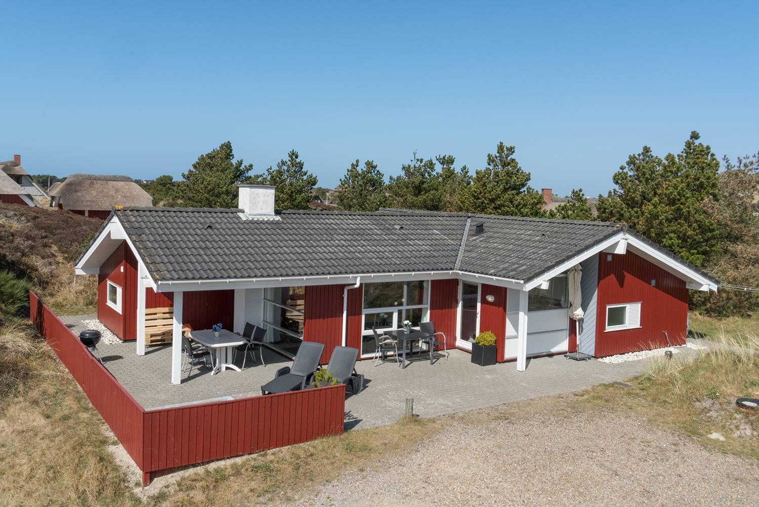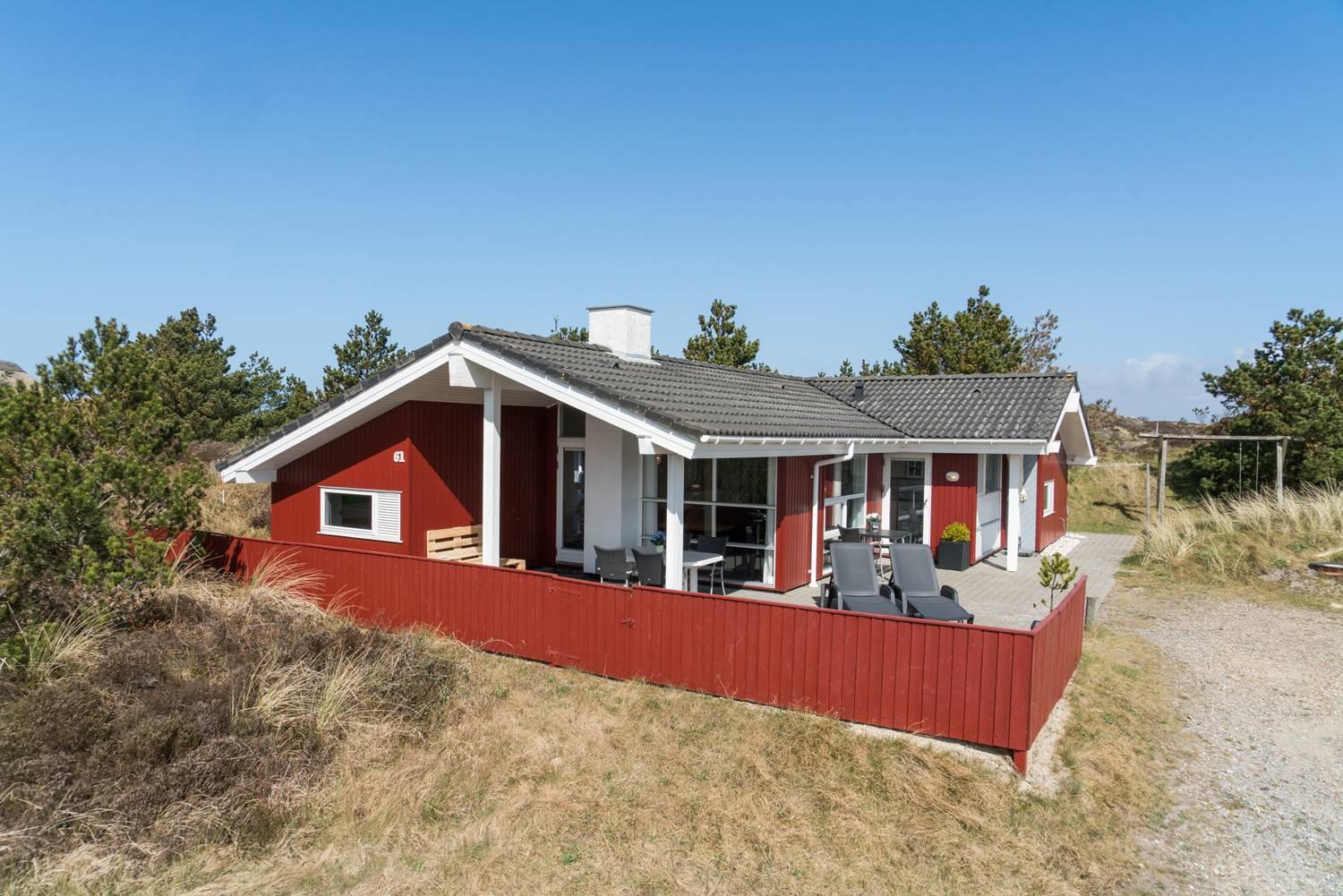 På en dejlig og ugenert naturgrund med gåafstand til Henne Strand by samt Vesterhavets bølger, ligger dette meget velholdte og virkelig godt indrettede feriehus. Der er i 2021 kommet nyt lækkert køkken og nye trægulve. Huset har et stort vinduesparti som giver et godt lys ind i stuen, som er indrettet med gode og flotte møbler samt brændeovn. Stort veludstyret køkken kombineret med opholdsstuen (tv med chromecast), hvorfra der er udgang til stort delvis overdækket terrasse område. Flot badeværelse med spa og adgang til feriehusets sauna. Tøv ikke med at booke dette stilfuld indrettede feriehus.