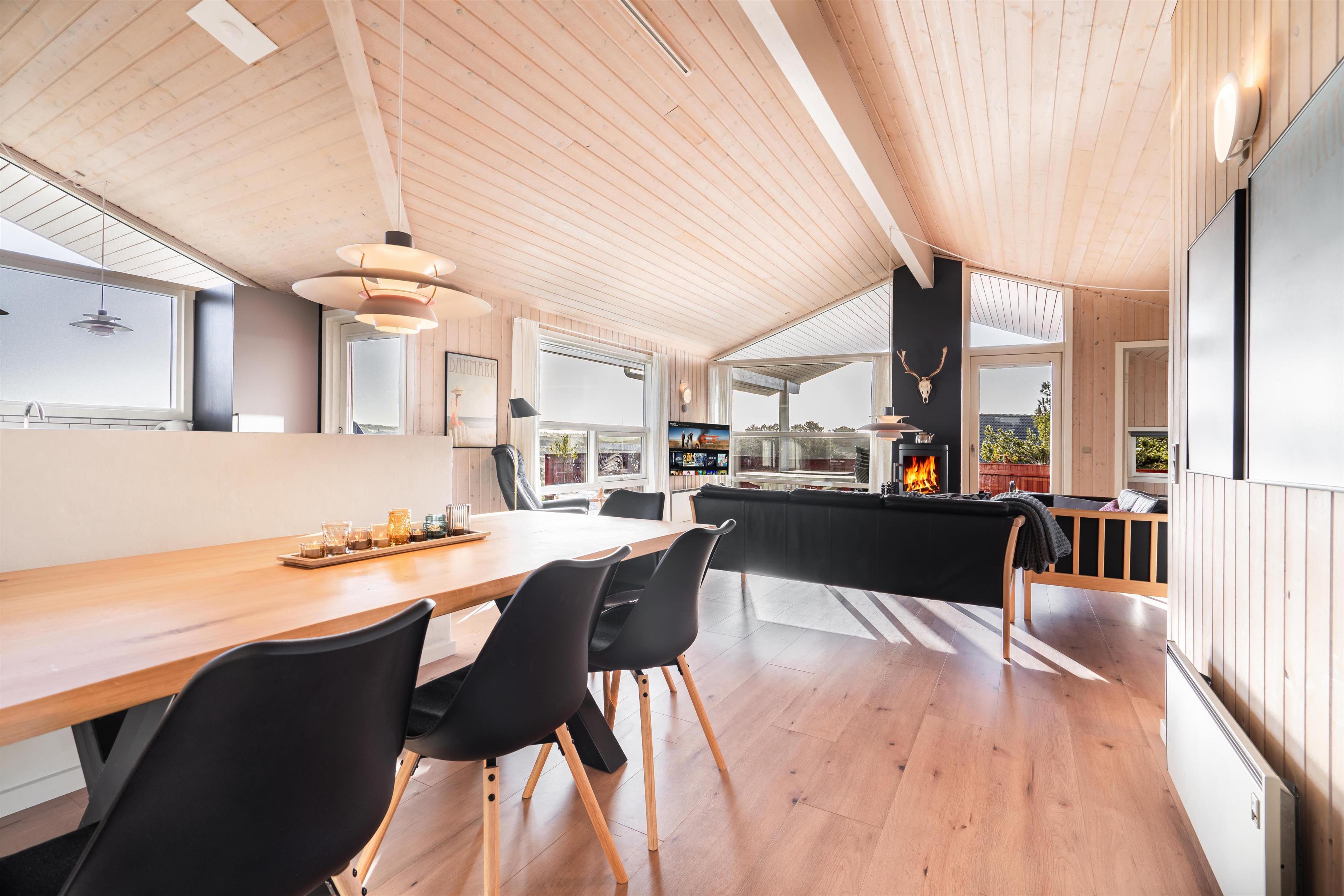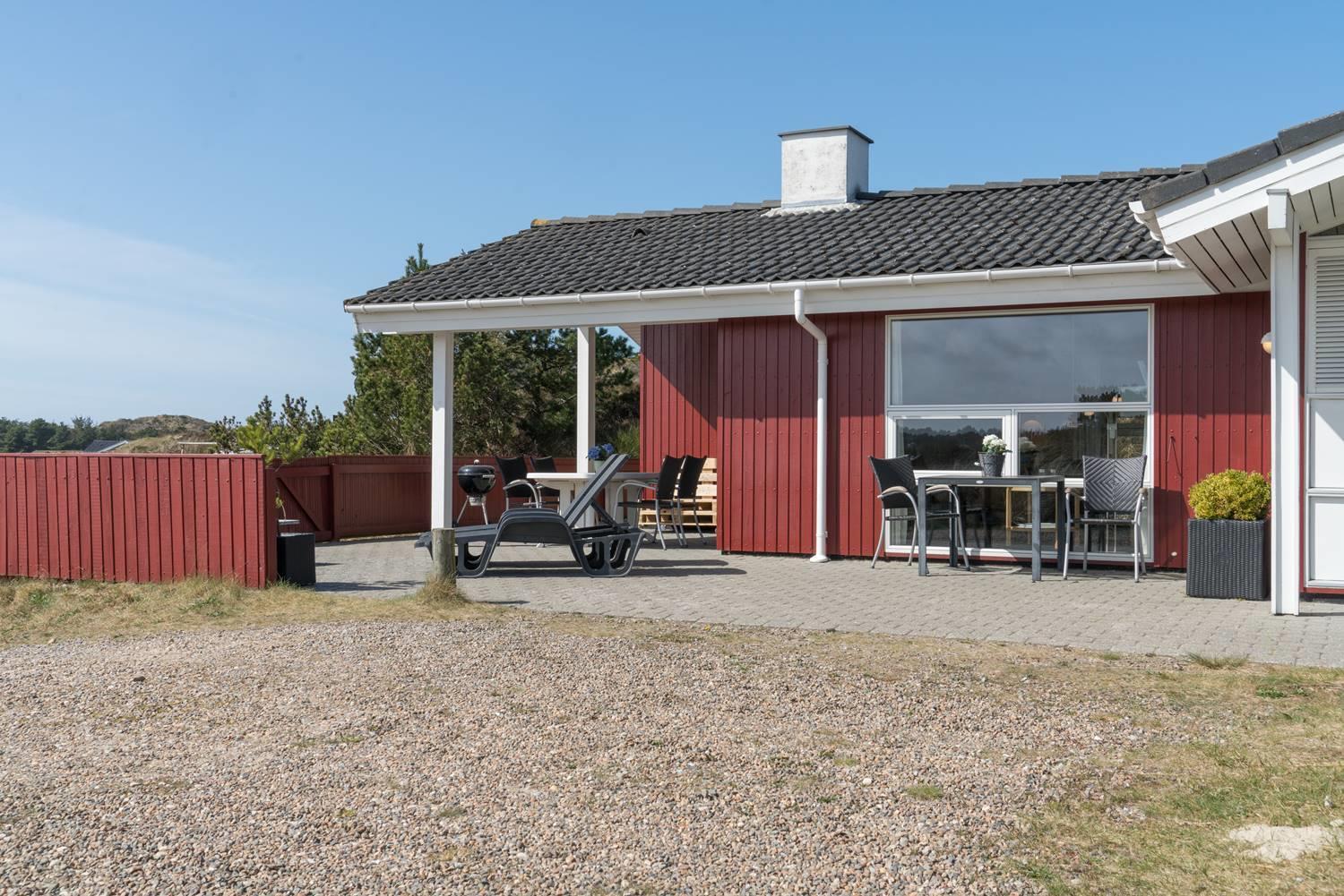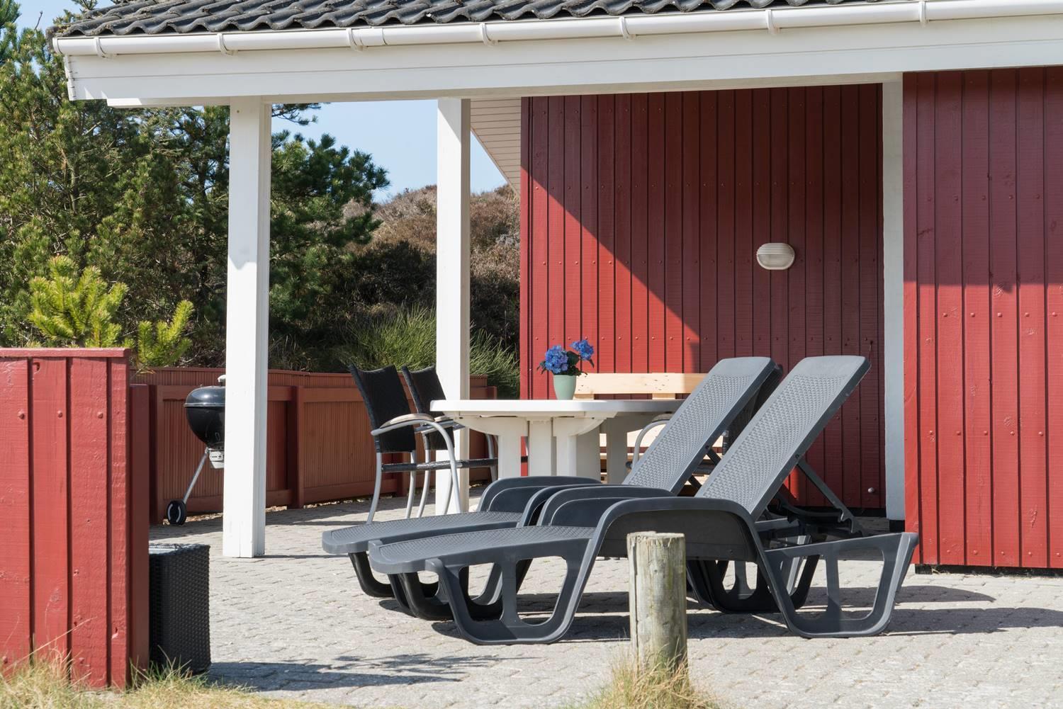 På en dejlig og ugenert naturgrund med gåafstand til Henne Strand by samt Vesterhavets bølger, ligger dette meget velholdte og virkelig godt indrettede feriehus. Der er i 2021 kommet nyt lækkert køkken og nye trægulve. Huset har et stort vinduesparti som giver et godt lys ind i stuen, som er indrettet med gode og flotte møbler samt brændeovn. Stort veludstyret køkken kombineret med opholdsstuen (tv med chromecast), hvorfra der er udgang til stort delvis overdækket terrasse område. Flot badeværelse med spa og adgang til feriehusets sauna. Tøv ikke med at booke dette stilfuld indrettede feriehus.
