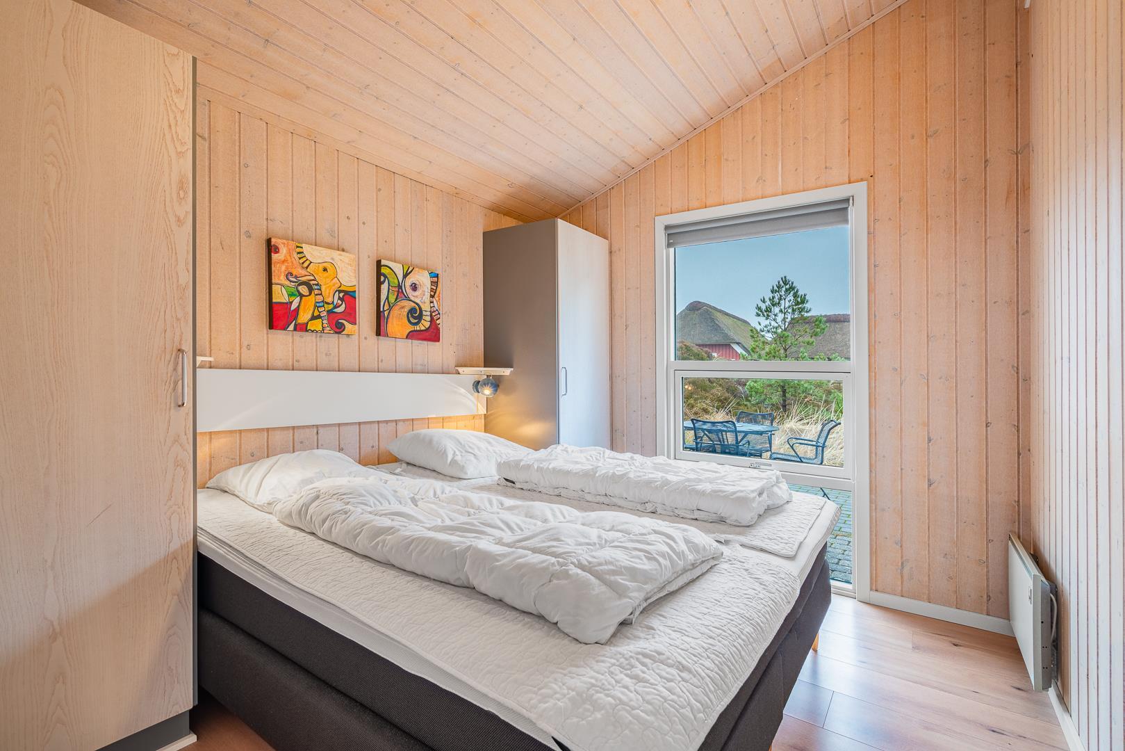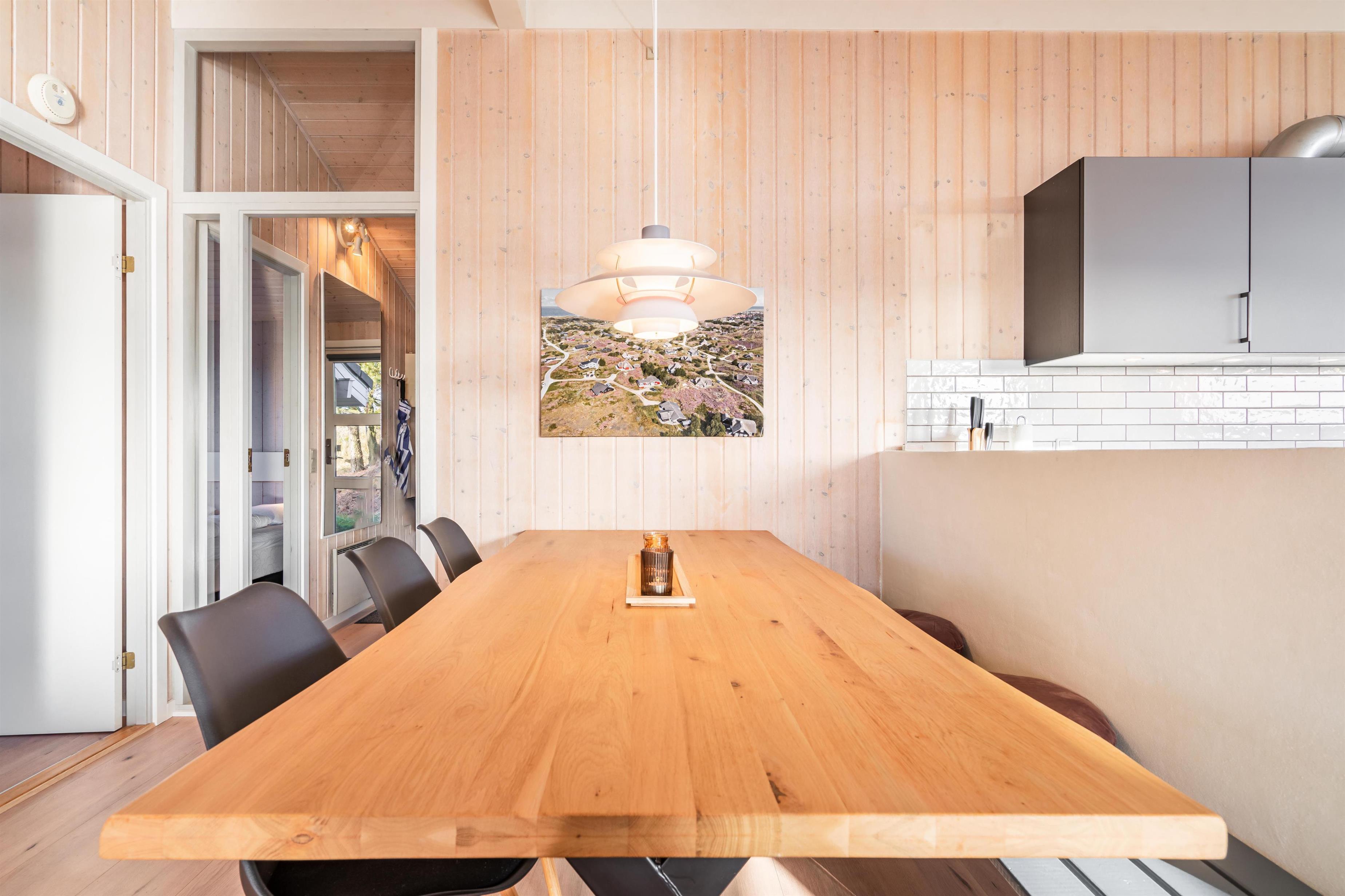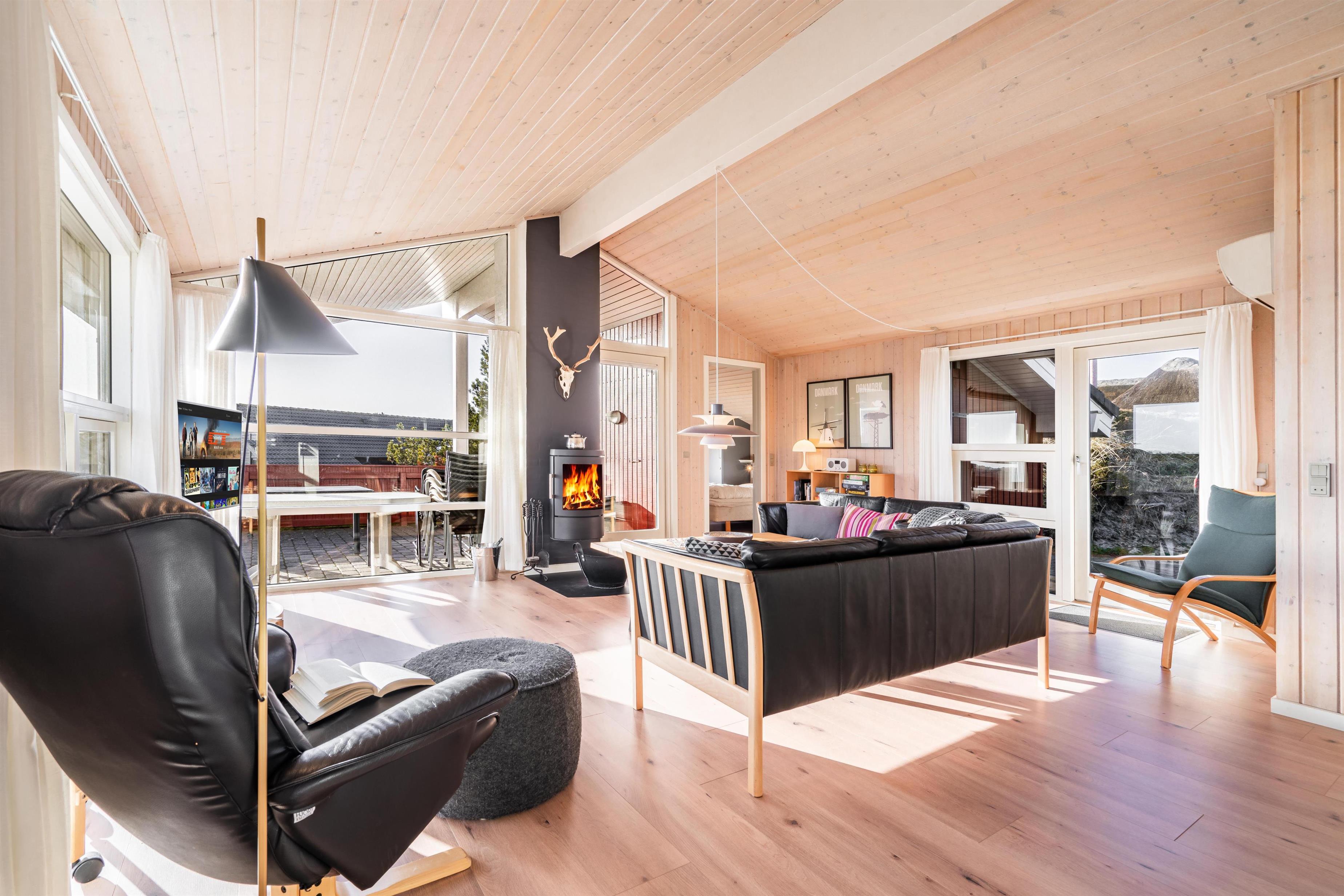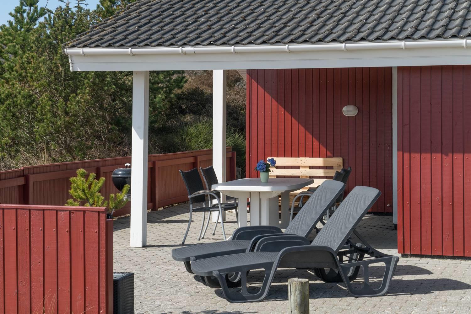 På en dejlig og ugenert naturgrund med gåafstand til Henne Strand by samt Vesterhavets bølger, ligger dette meget velholdte og virkelig godt indrettede feriehus. Der er i 2021 kommet nyt lækkert køkken og nye trægulve. Huset har et stort vinduesparti som giver et godt lys ind i stuen, som er indrettet med gode og flotte møbler samt brændeovn. Stort veludstyret køkken kombineret med opholdsstuen (tv med chromecast), hvorfra der er udgang til stort delvis overdækket terrasse område. Flot badeværelse med spa og adgang til feriehusets sauna. Tøv ikke med at booke dette stilfuld indrettede feriehus.
