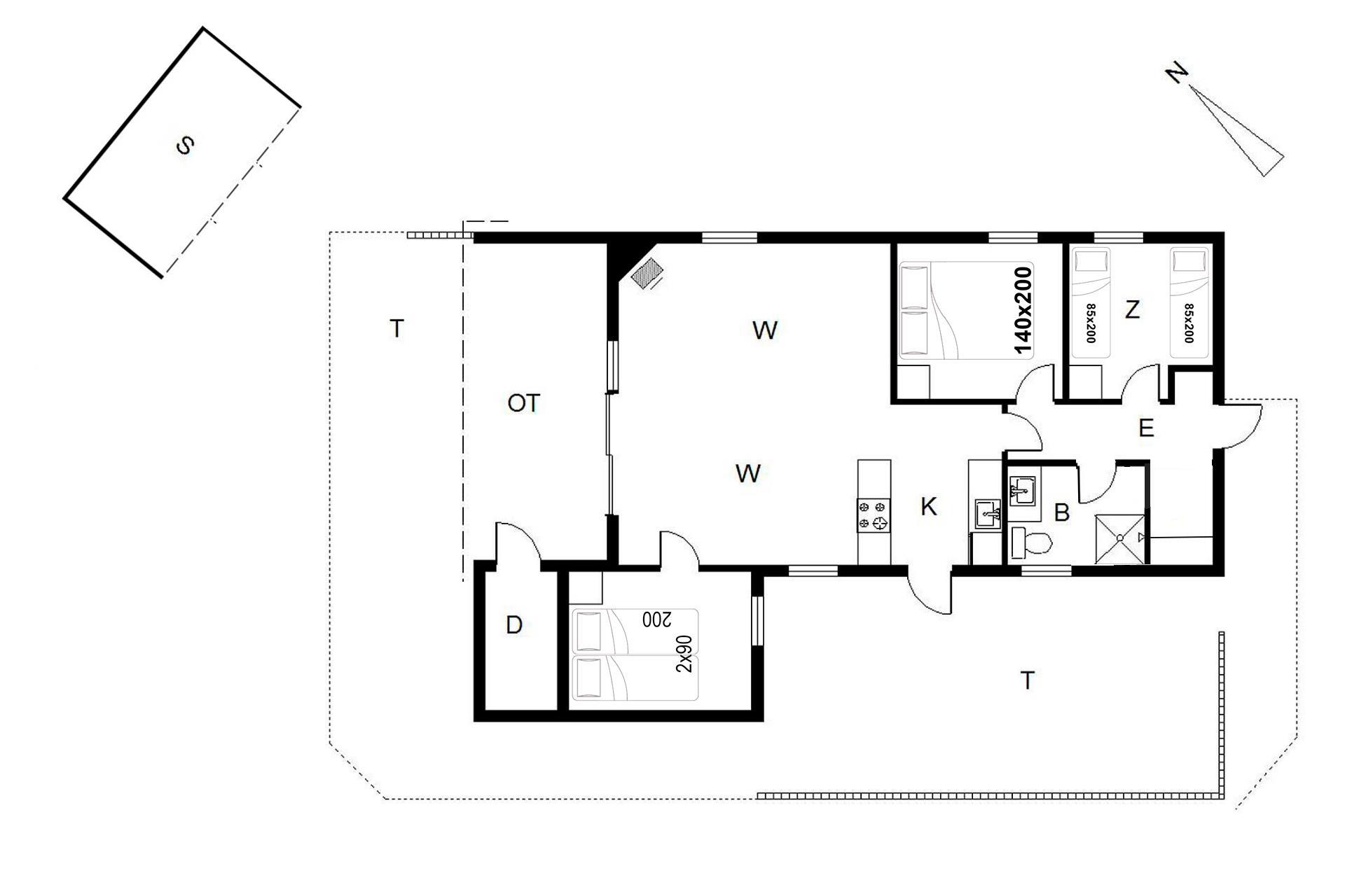 Sengestørrelse: 1 dobbeltsenge 140 x 200 cm + 1 dobbeltseng med 2 madrasser 90 x 200 cm + 2 enkeltsenge 85 x 200 cm