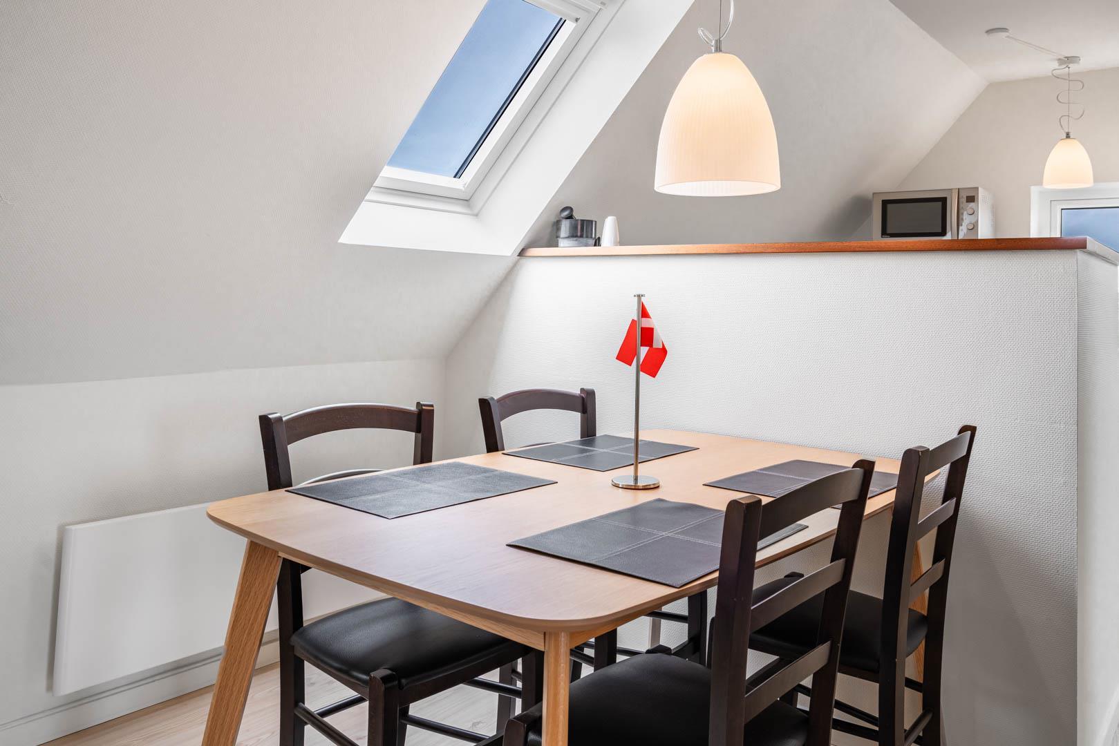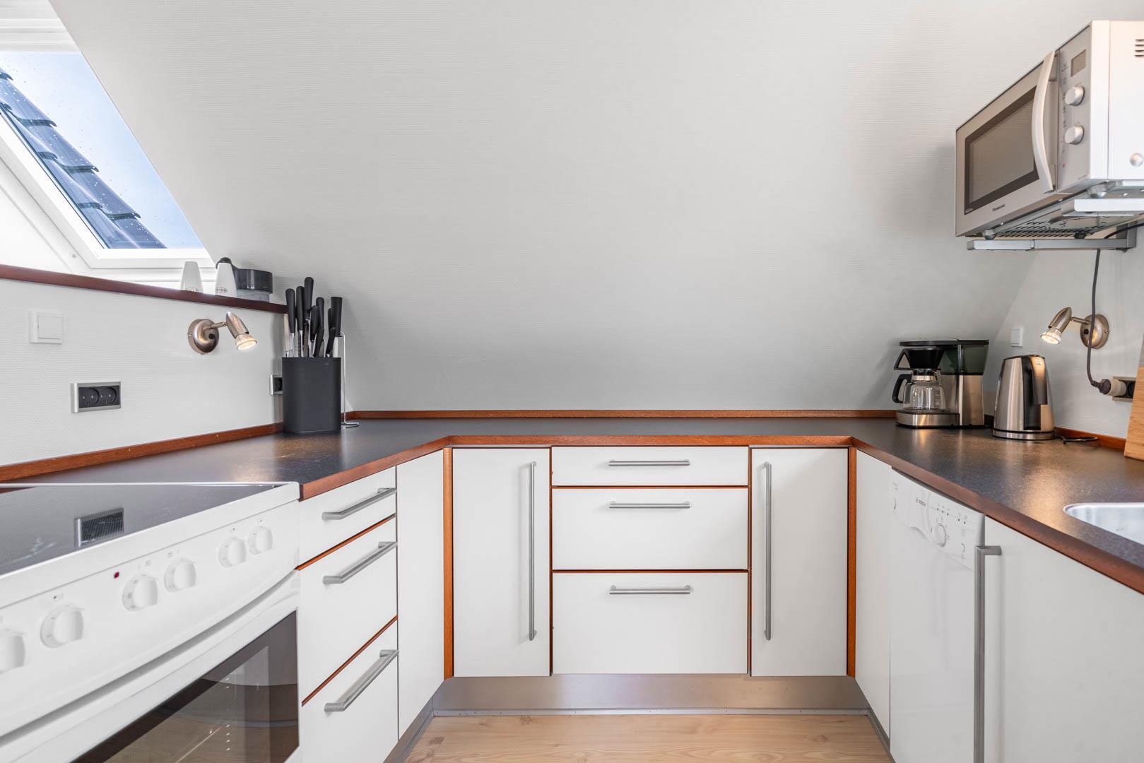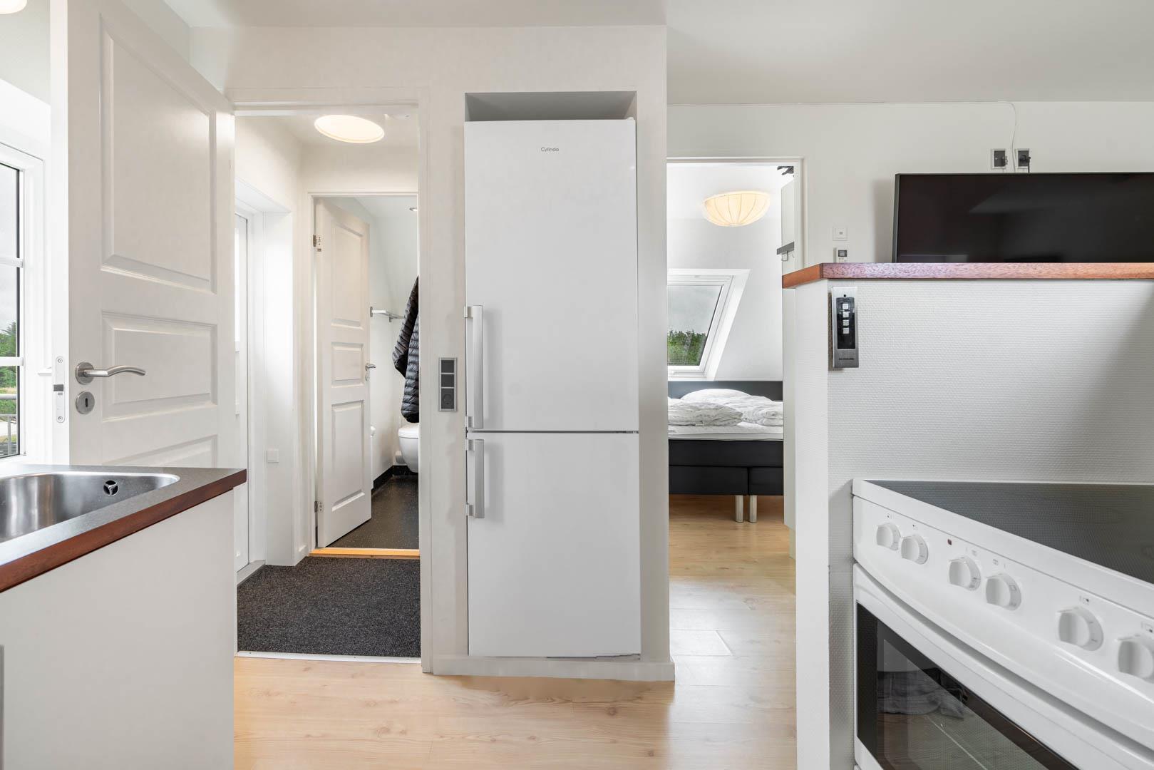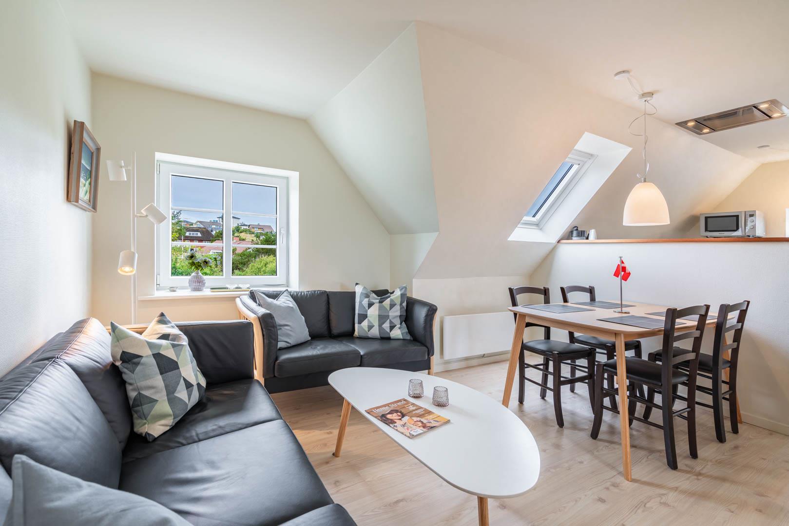 Lys kvalitetslejlighed med stor terrasse ved strand