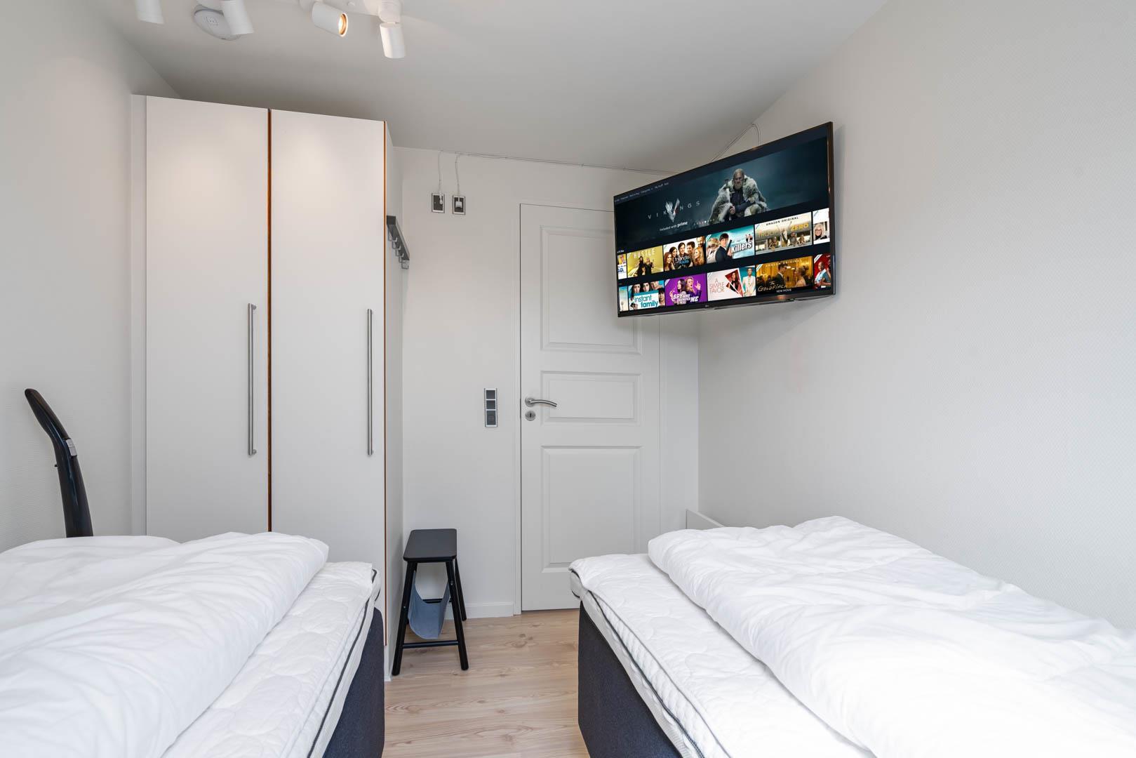Sengestørrelse: 1 dobbeltseng 180 x 200 cm + 2 enkeltsenge 90 x 200 cm.
