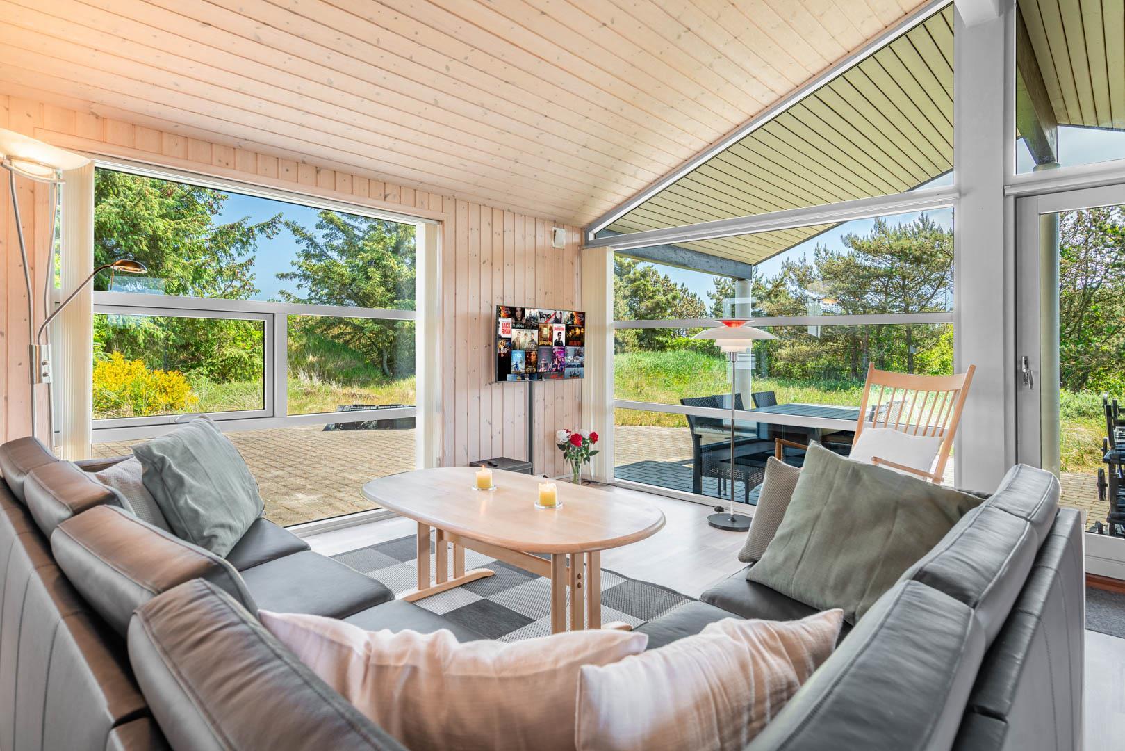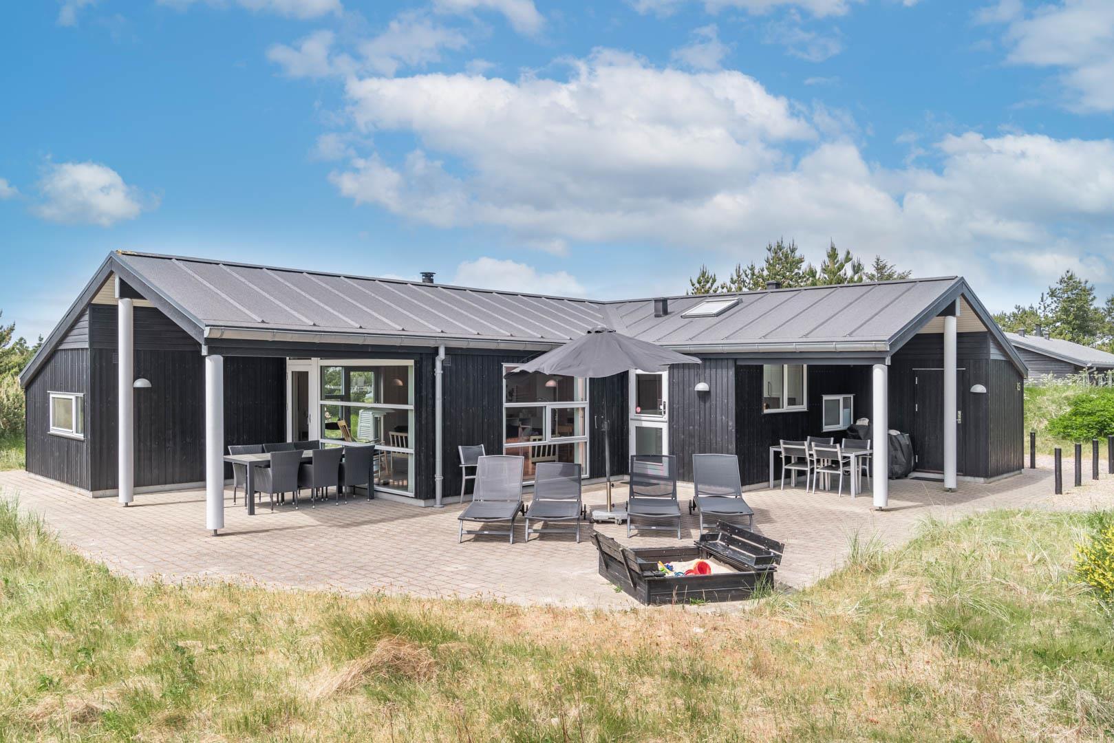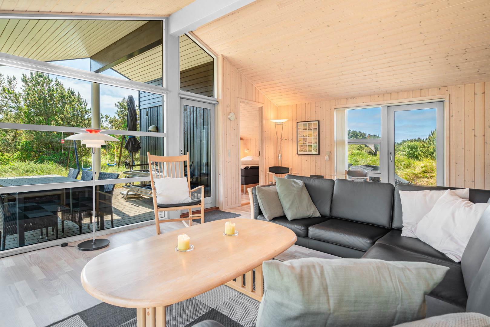 Flot sommerhus i Henne Strand på ugeneret klitgrund med sauna og spabad, tæt på strand og indkøb.
