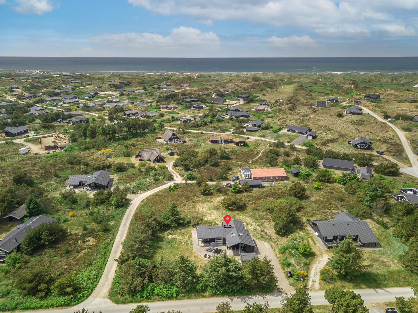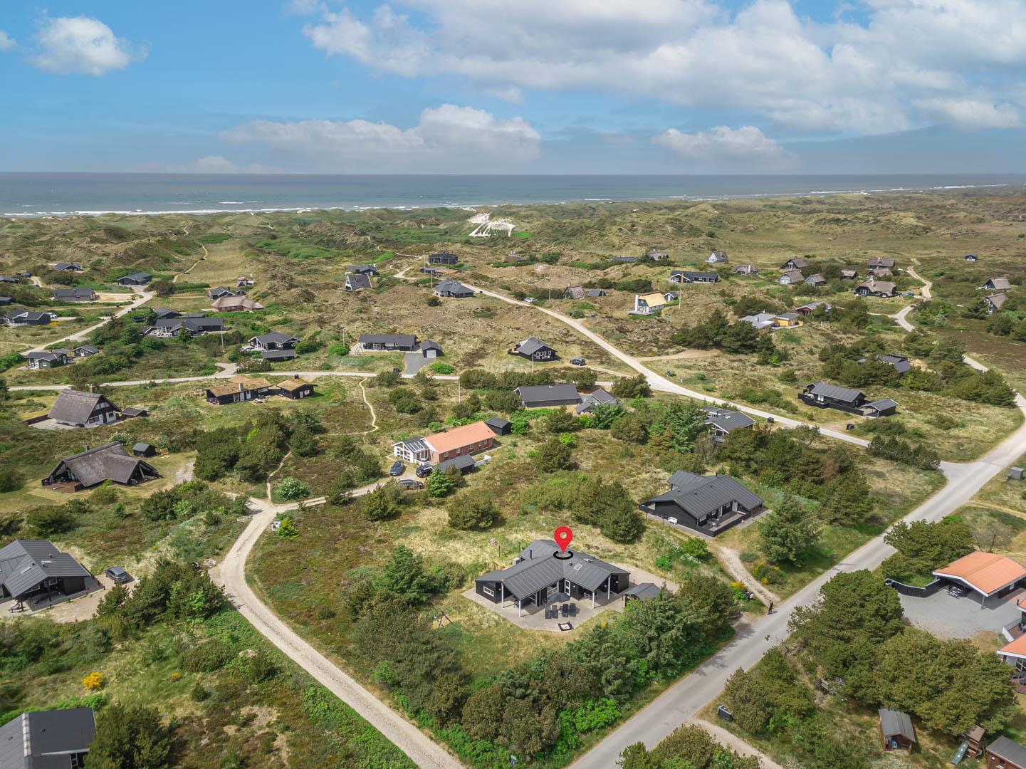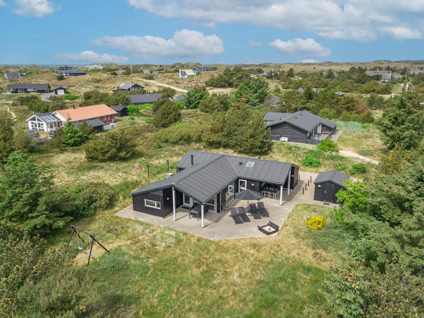 Flot sommerhus i Henne Strand på ugeneret klitgrund med sauna og spabad, tæt på strand og indkøb.