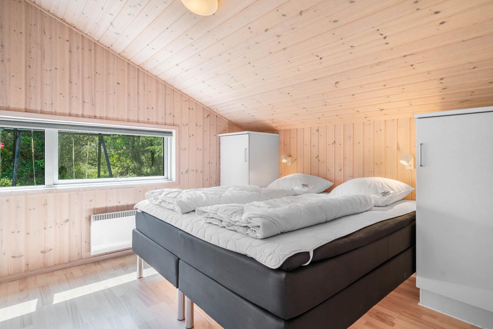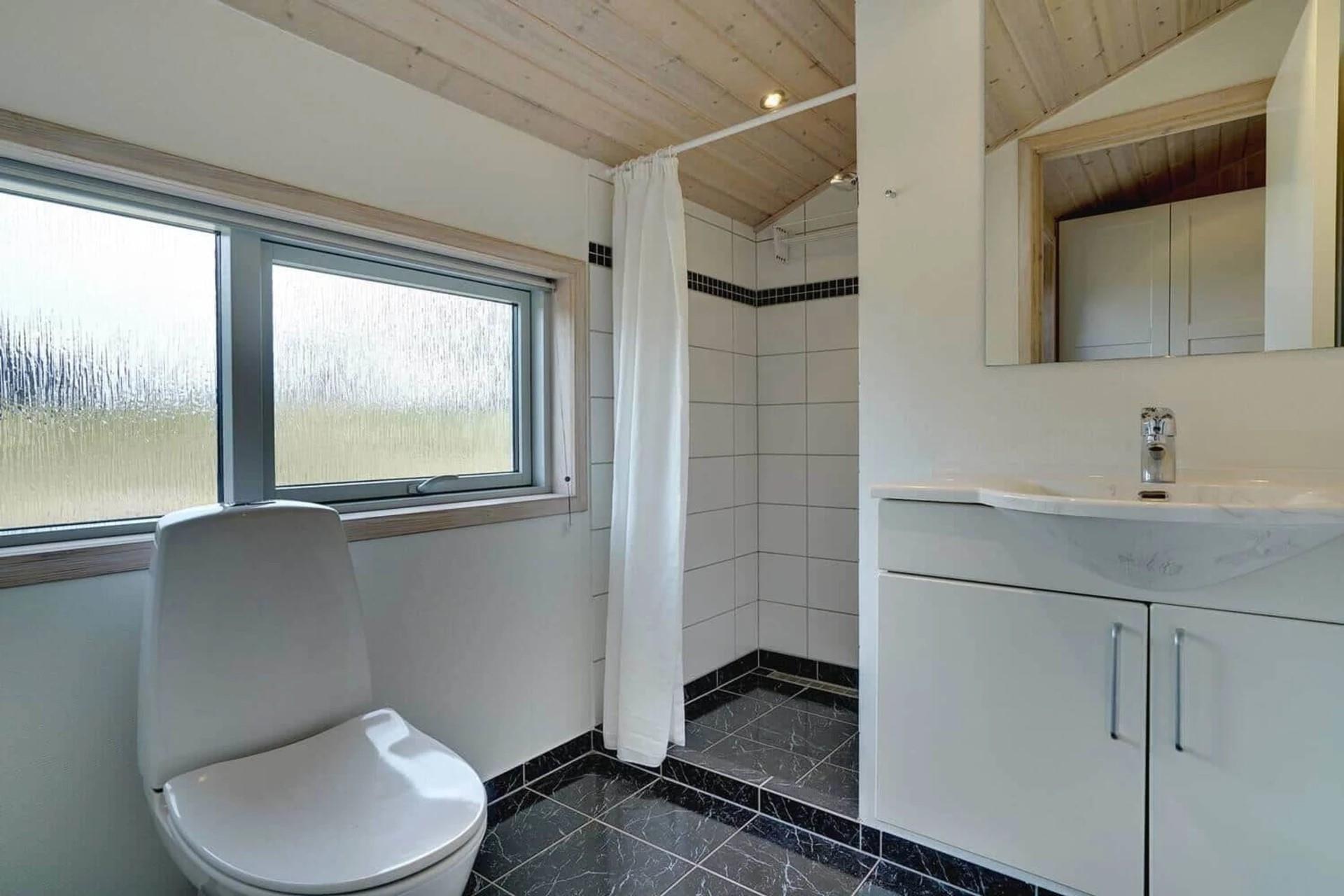 Udover badeværelset er der ekstra toilet og bruser. Alle soveværelse er udstyret med gode komfortable boxmadrasser.