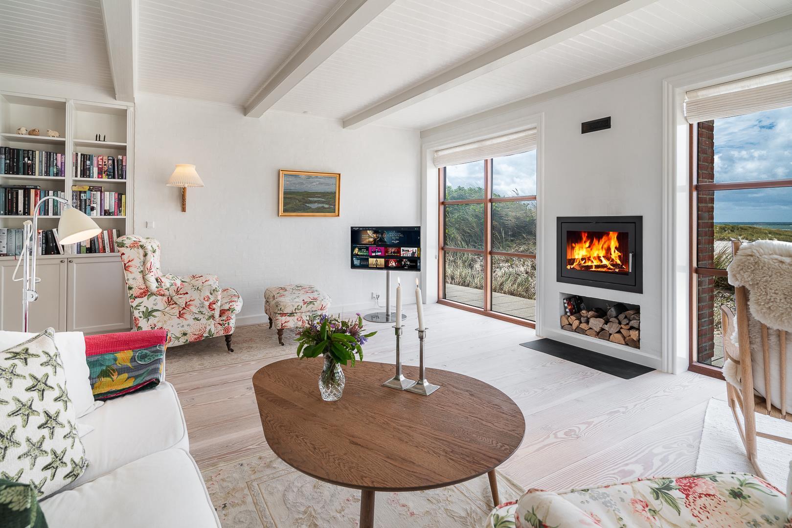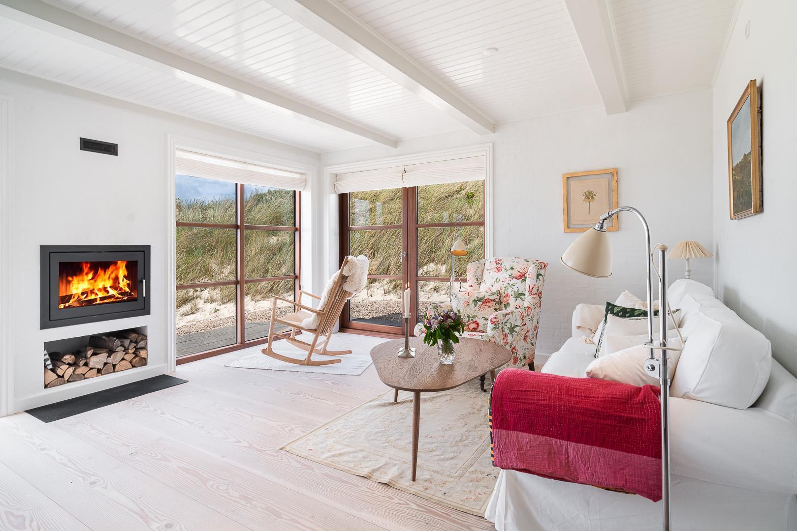 Her på Fasanvej 1 kan man sidde i stuen eller på terrassen og nyde solnedgangen i fulde drag eller slappe af foran den lukkede pejs.