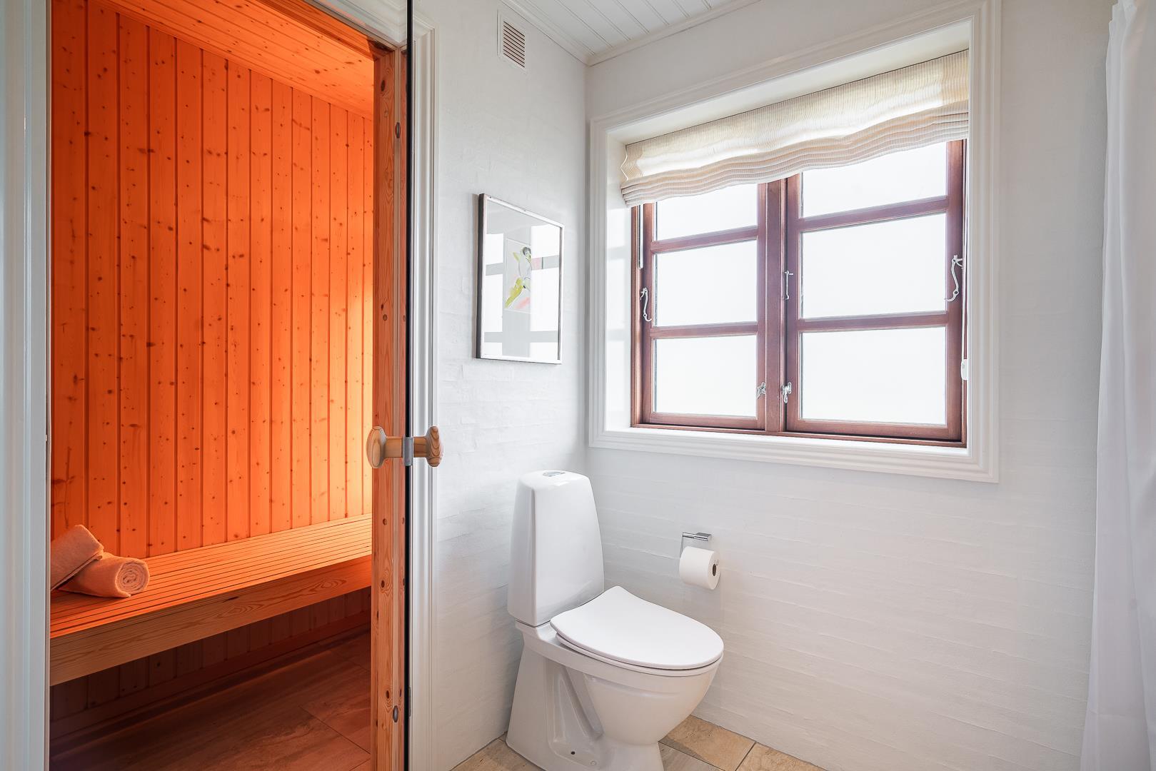 Herudover er der 2 badeværelser, hvor af den ene også har en sauna.