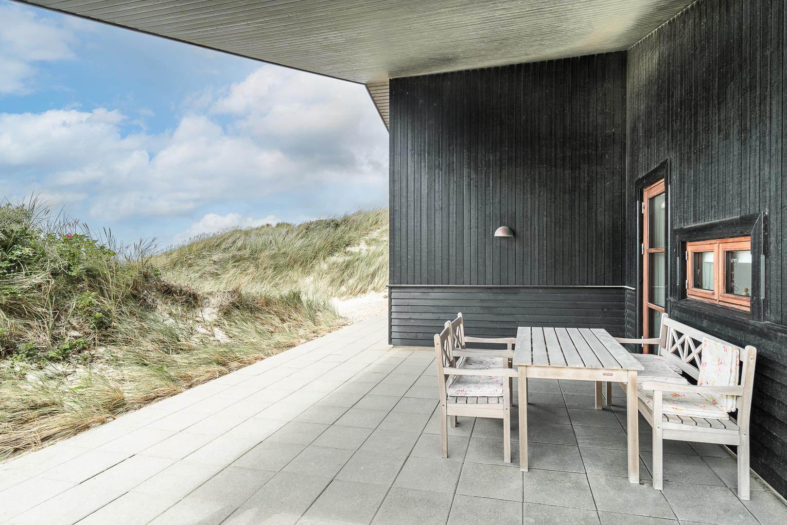 Der er fra huset også udgang til morgen terrassen hvor fra udsigten over klitlandskabet er enestående.