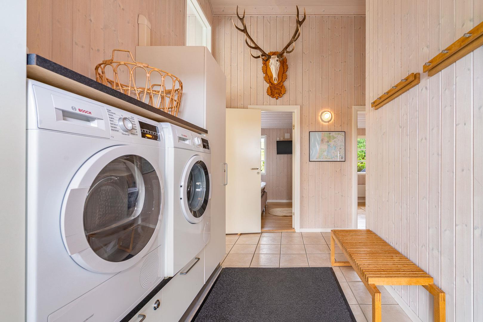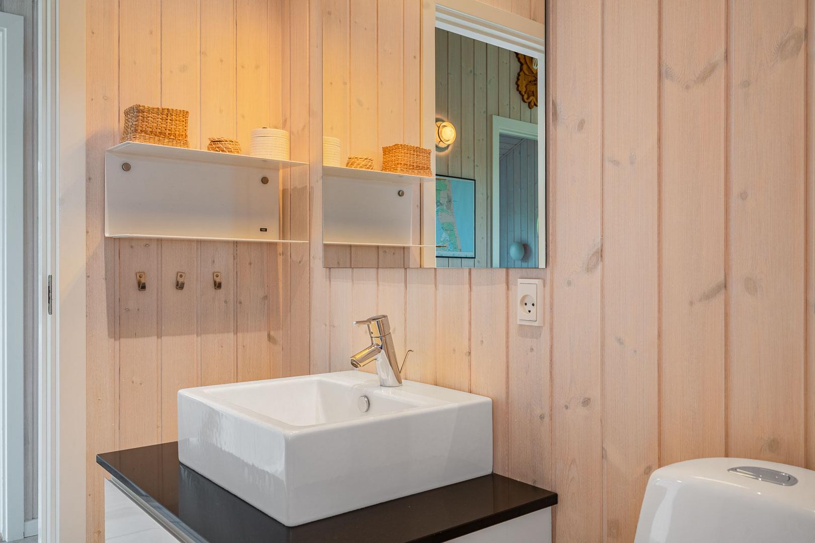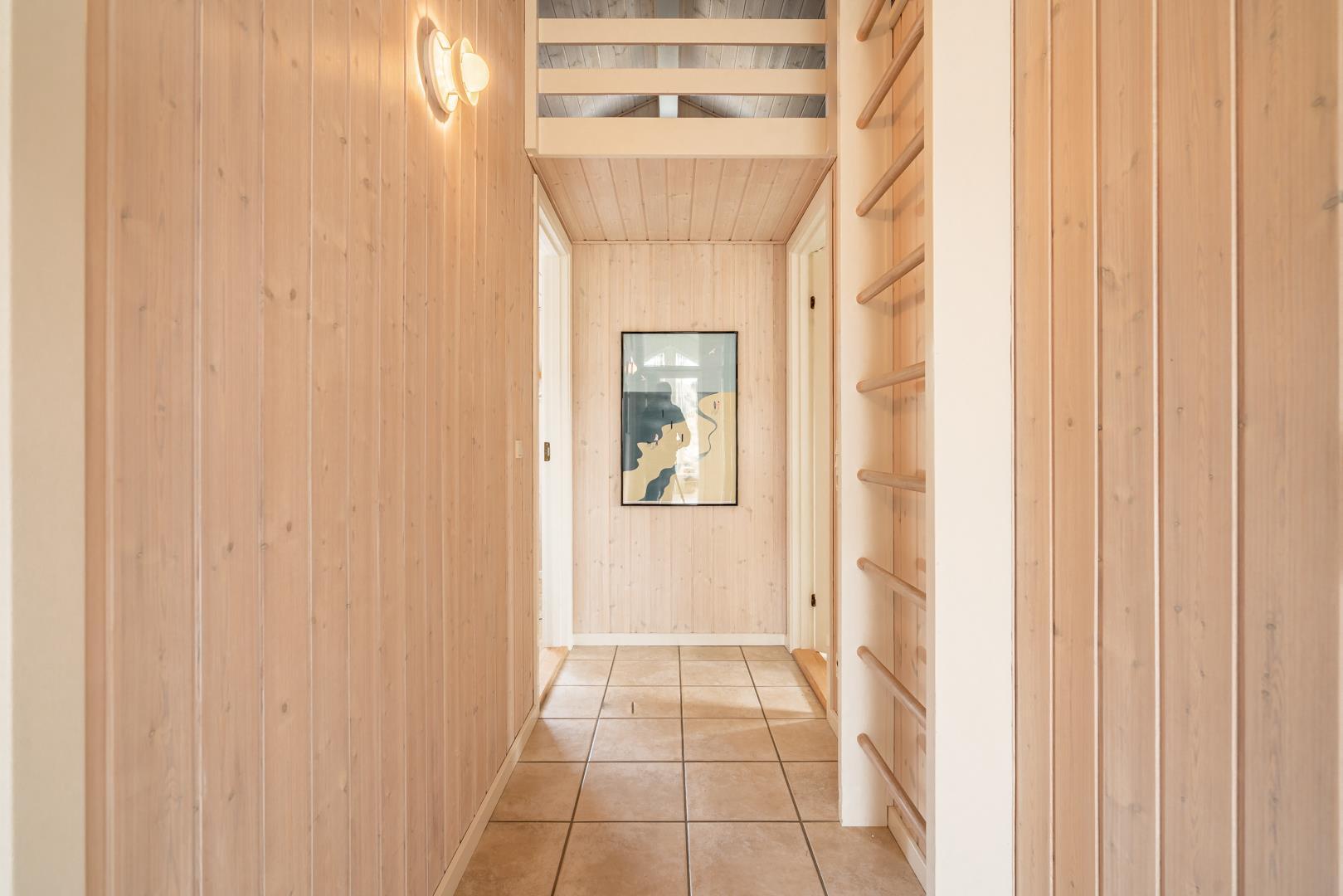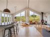 Når du træder gennem entreen og helt ind i sommerhuset, bydes du velkommen i en helt fantastisk lys og rummelig stue. Naturens farver danner et smukt bagtæppe i det flotte rum, som er indrettet med møbler og interiør i afdæmpede nuancer og personlige kunstgenstande på væggene.