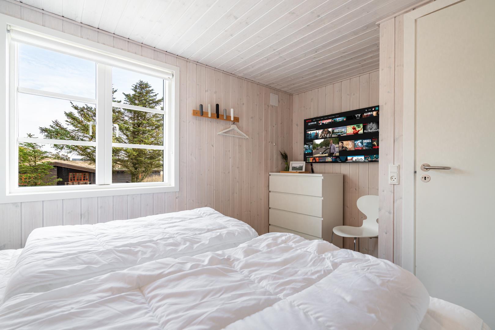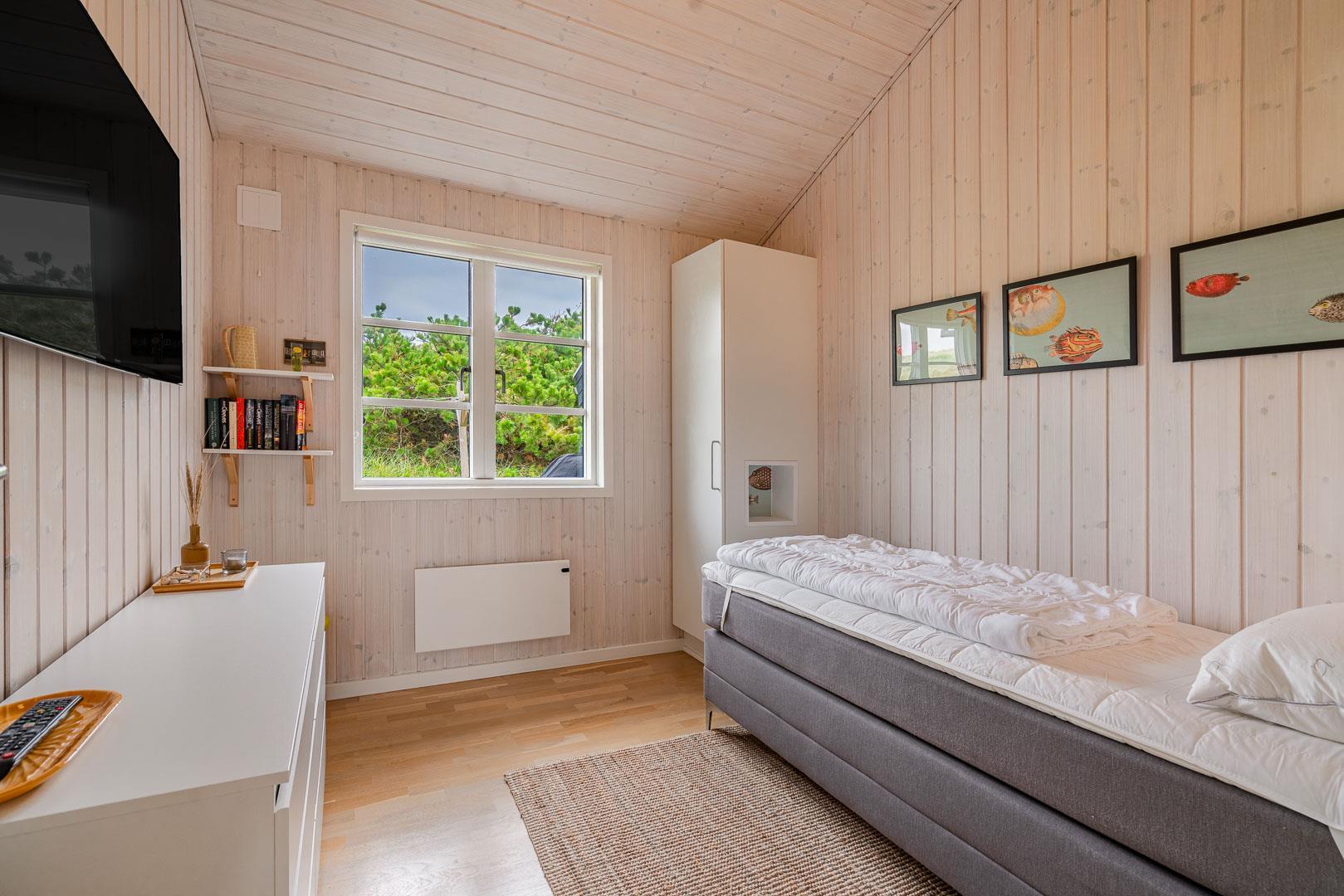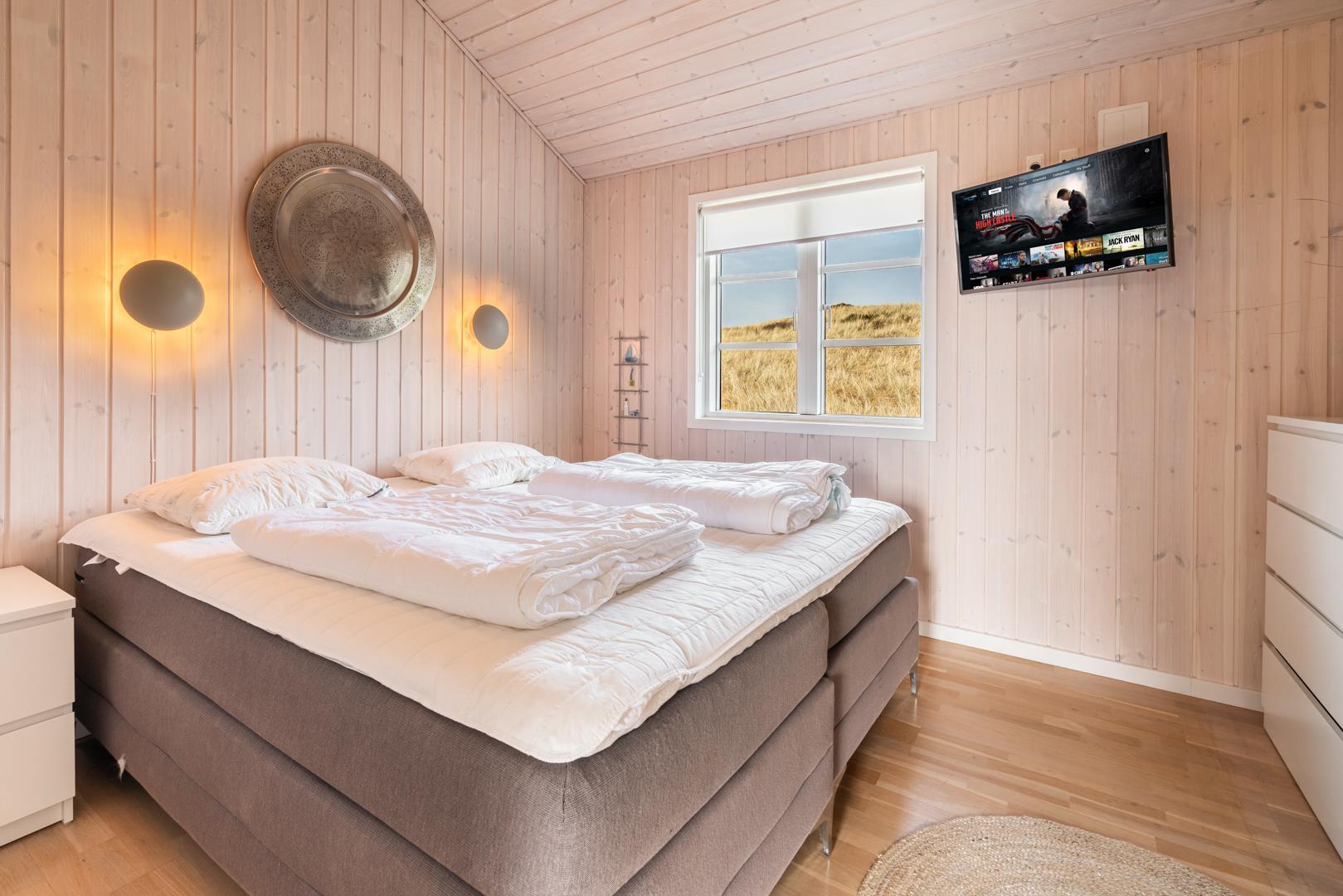 Lyset strømmer ubesværet ind i det skønne feriehus, der ligger i første række til det bølgende klitlandskab ved Henne Strand. Feriehuset fremstår lækkert med moderne faciliteter som spa og sauna samt komfortable senge og TV i alle soveværelser.