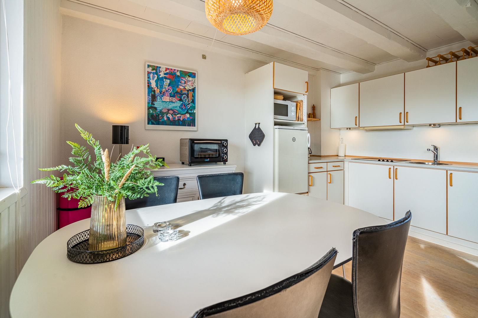 Lejligheden er indrettet i en lys og imødekommende stil med komfortable møbler og alle nødvendige faciliteter til en god ferie – uanset årstid.