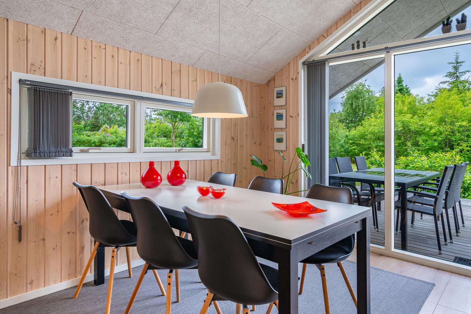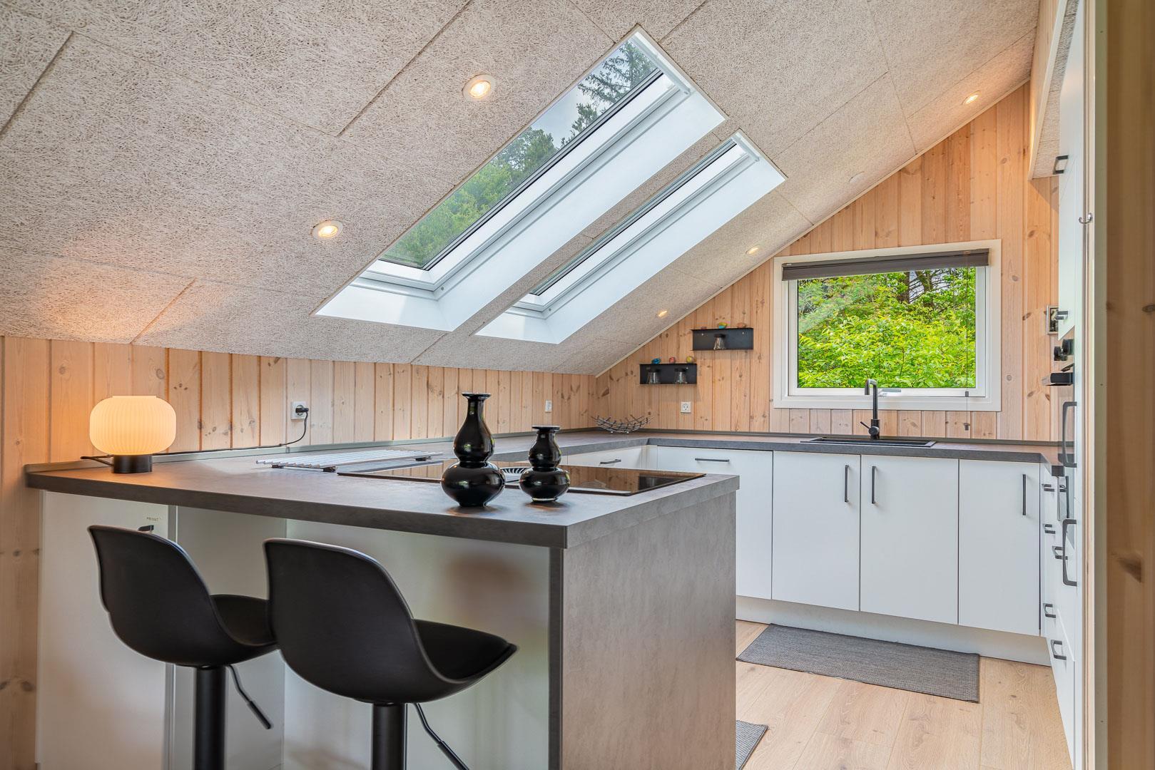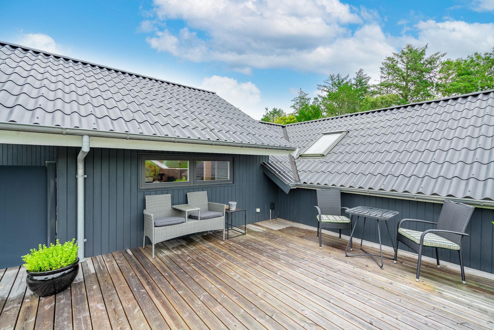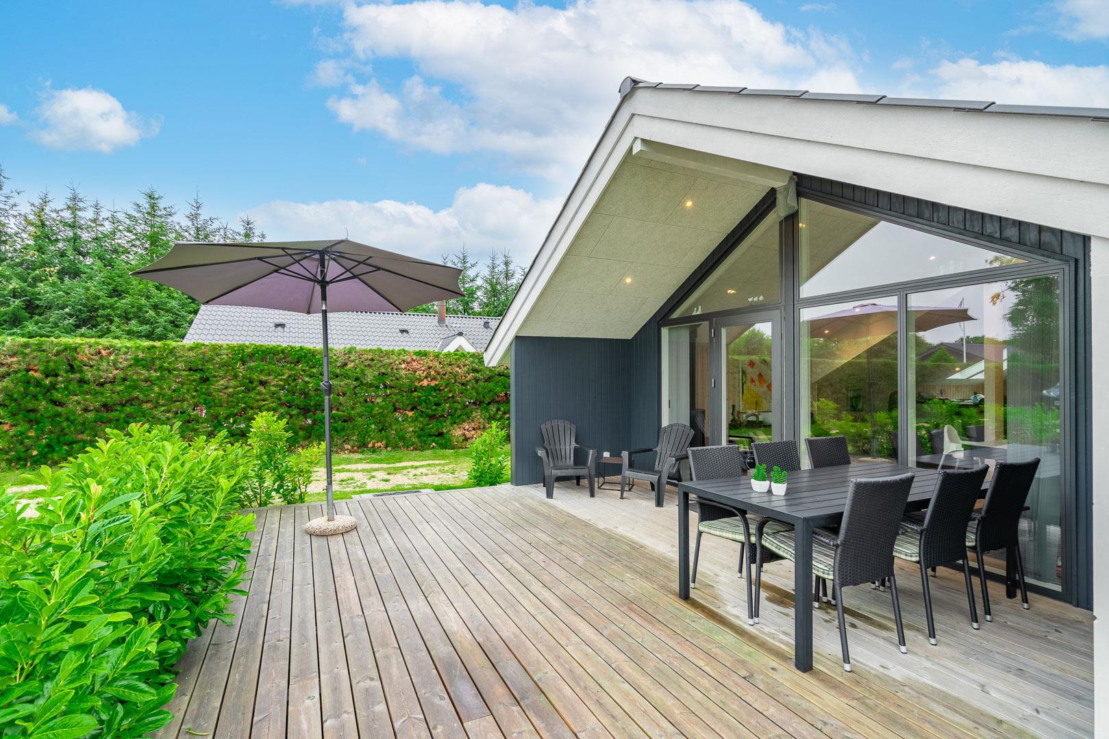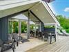 Direkte udgang fra sommerhusets køkken/alrum til overdækket terrasse.