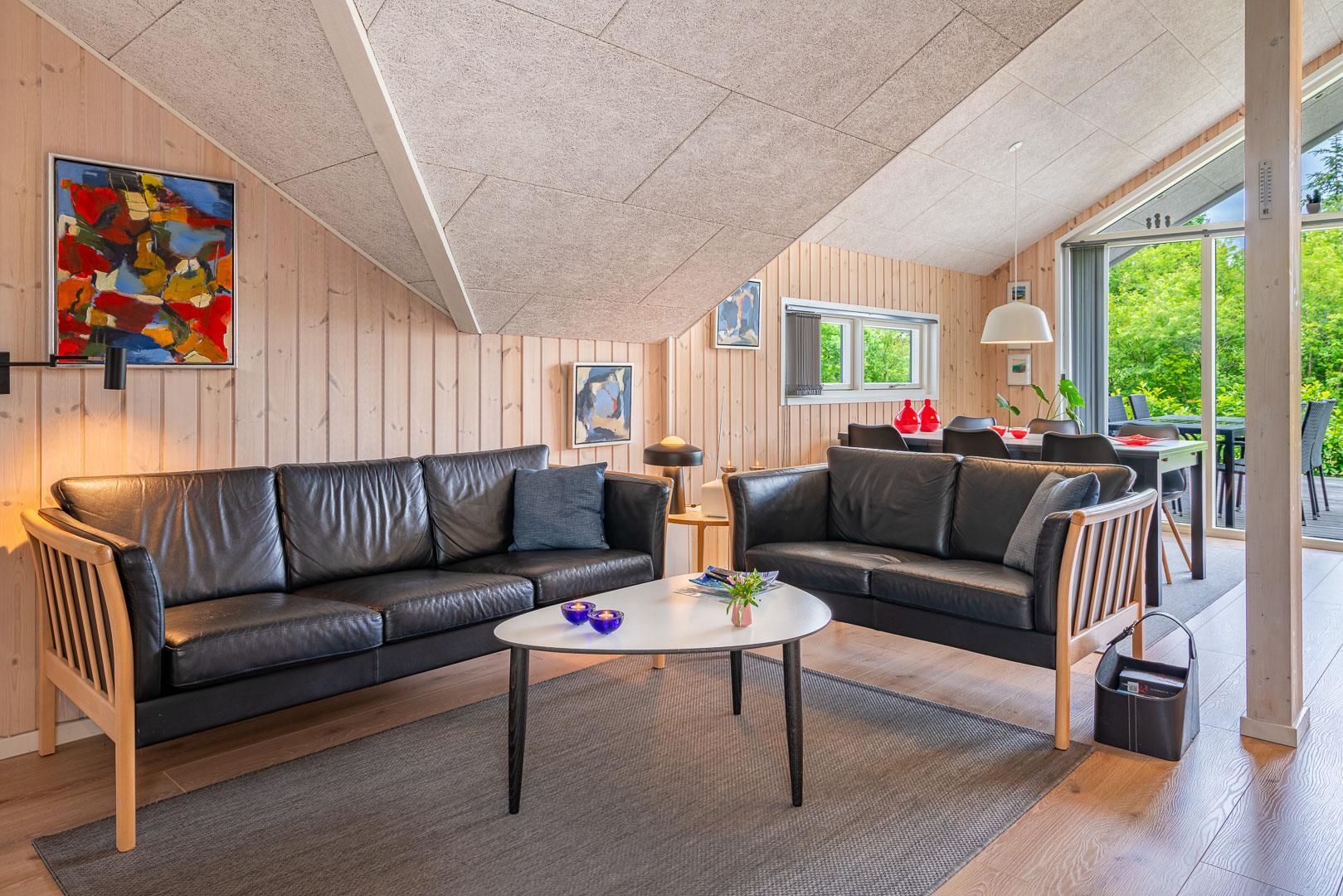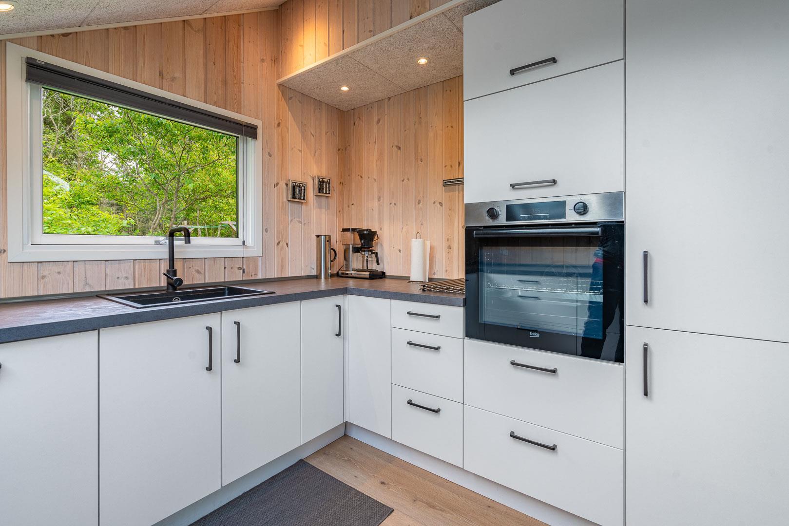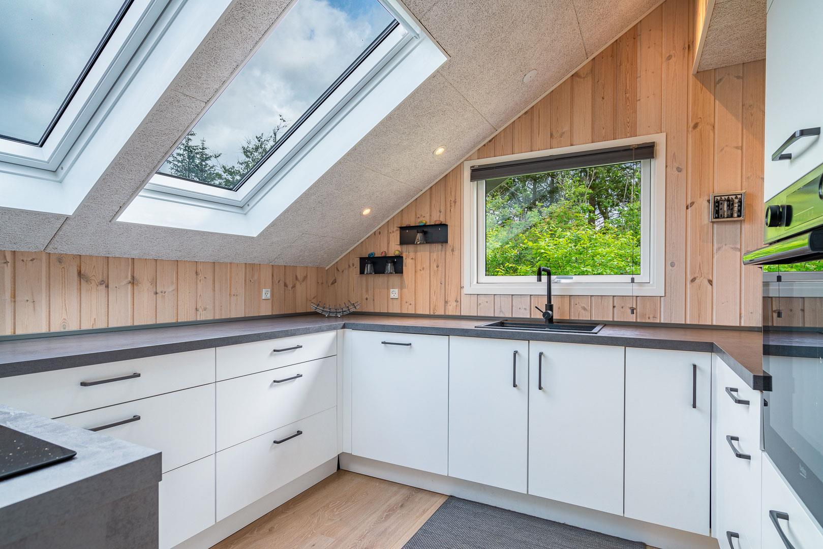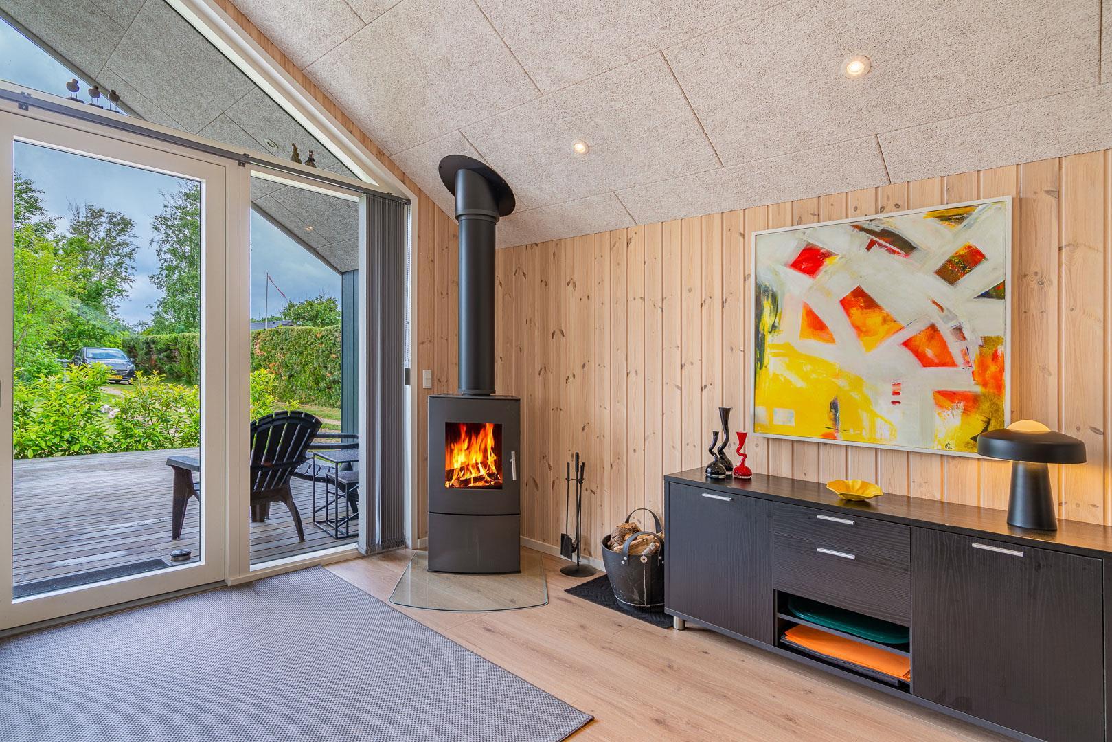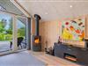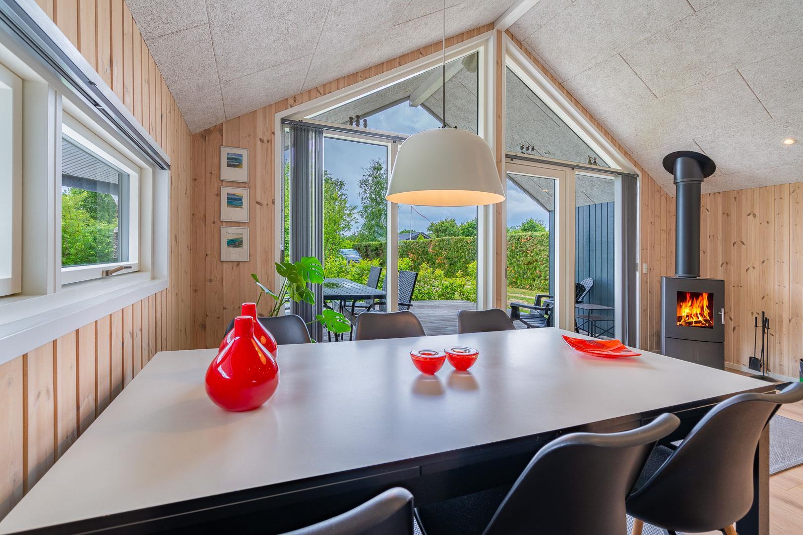 Direkte udgang fra sommerhusets køkken/alrum til overdækket terrasse.