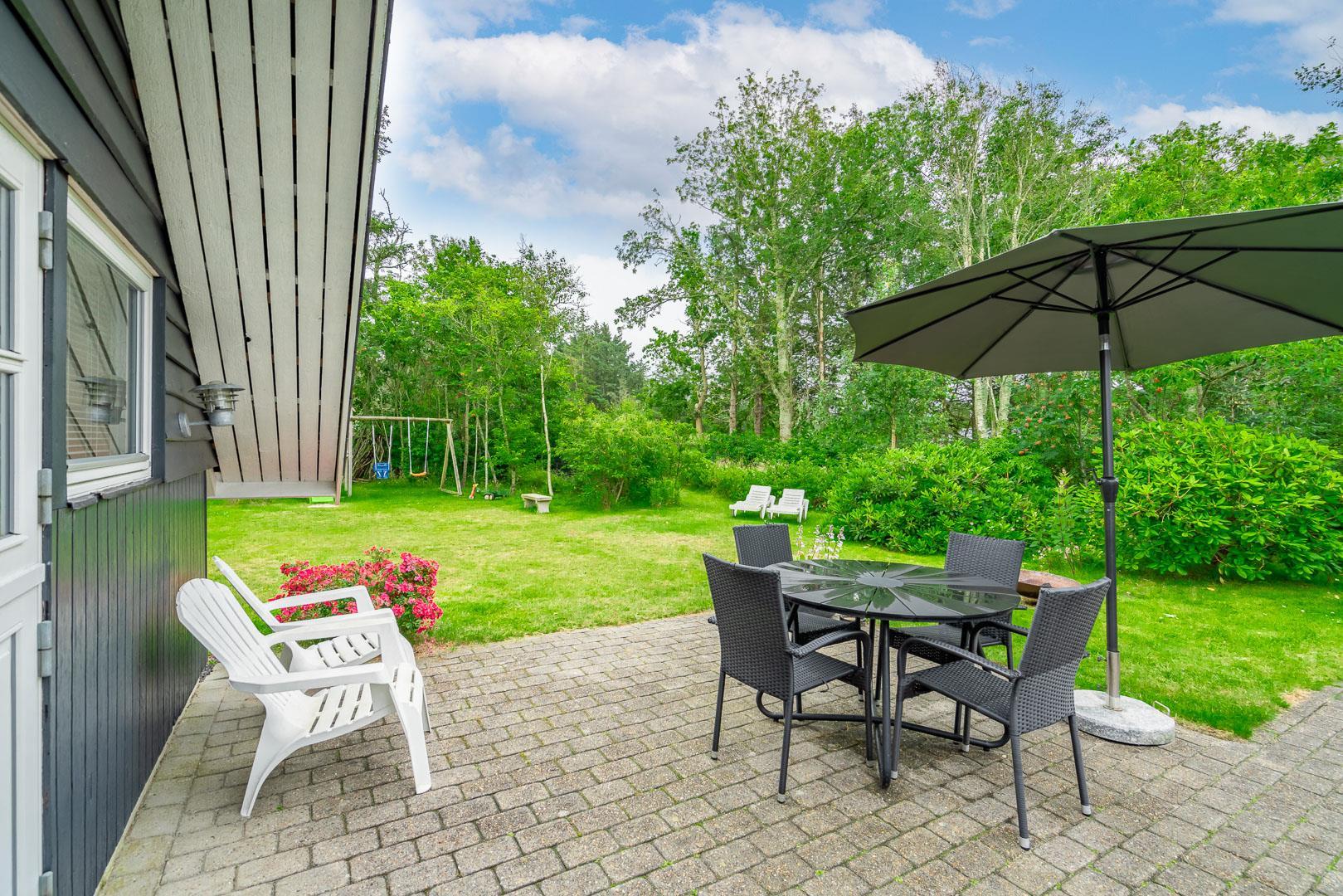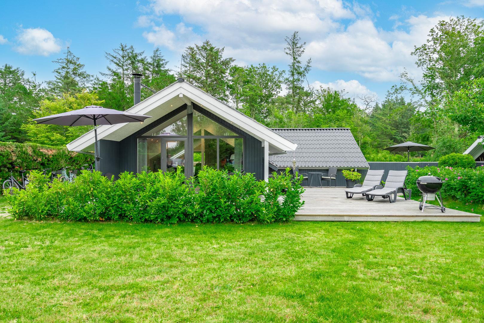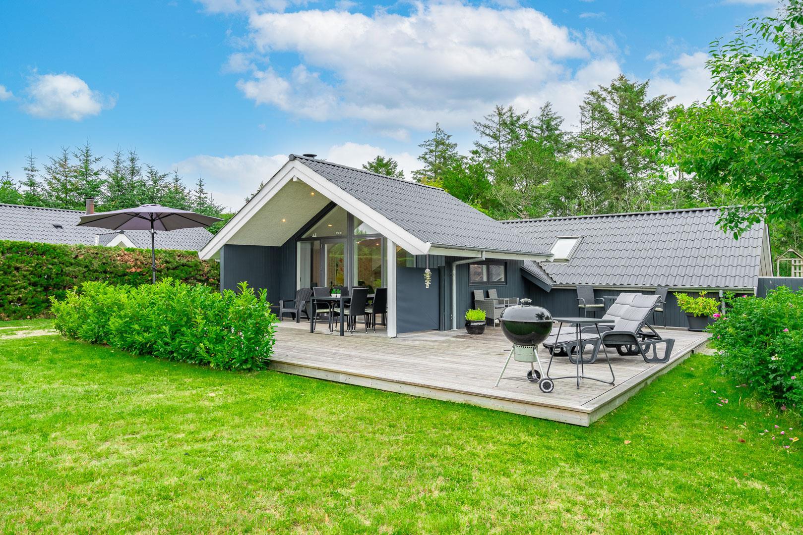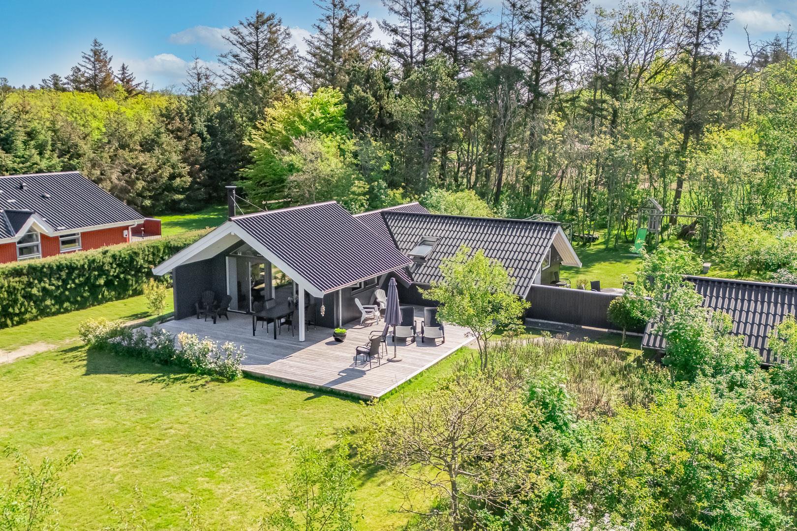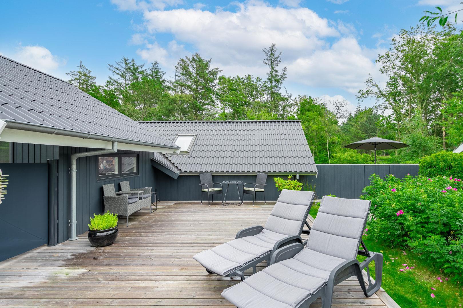Veludstyret feriehus med solrige terrasser på ugenert naturgrund nær skov og golf i Henne Strand.