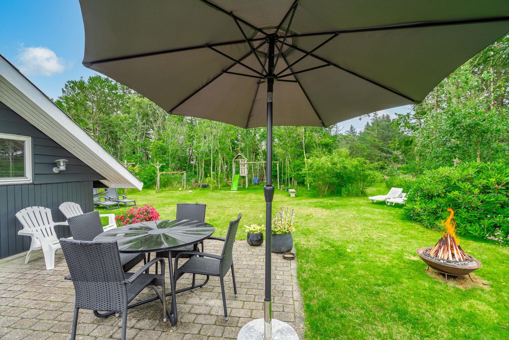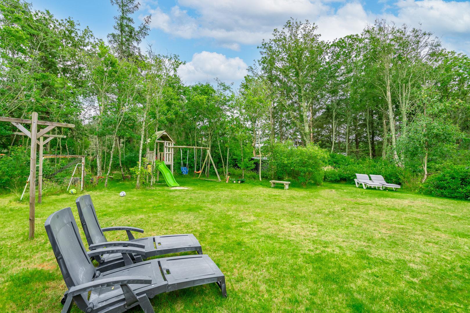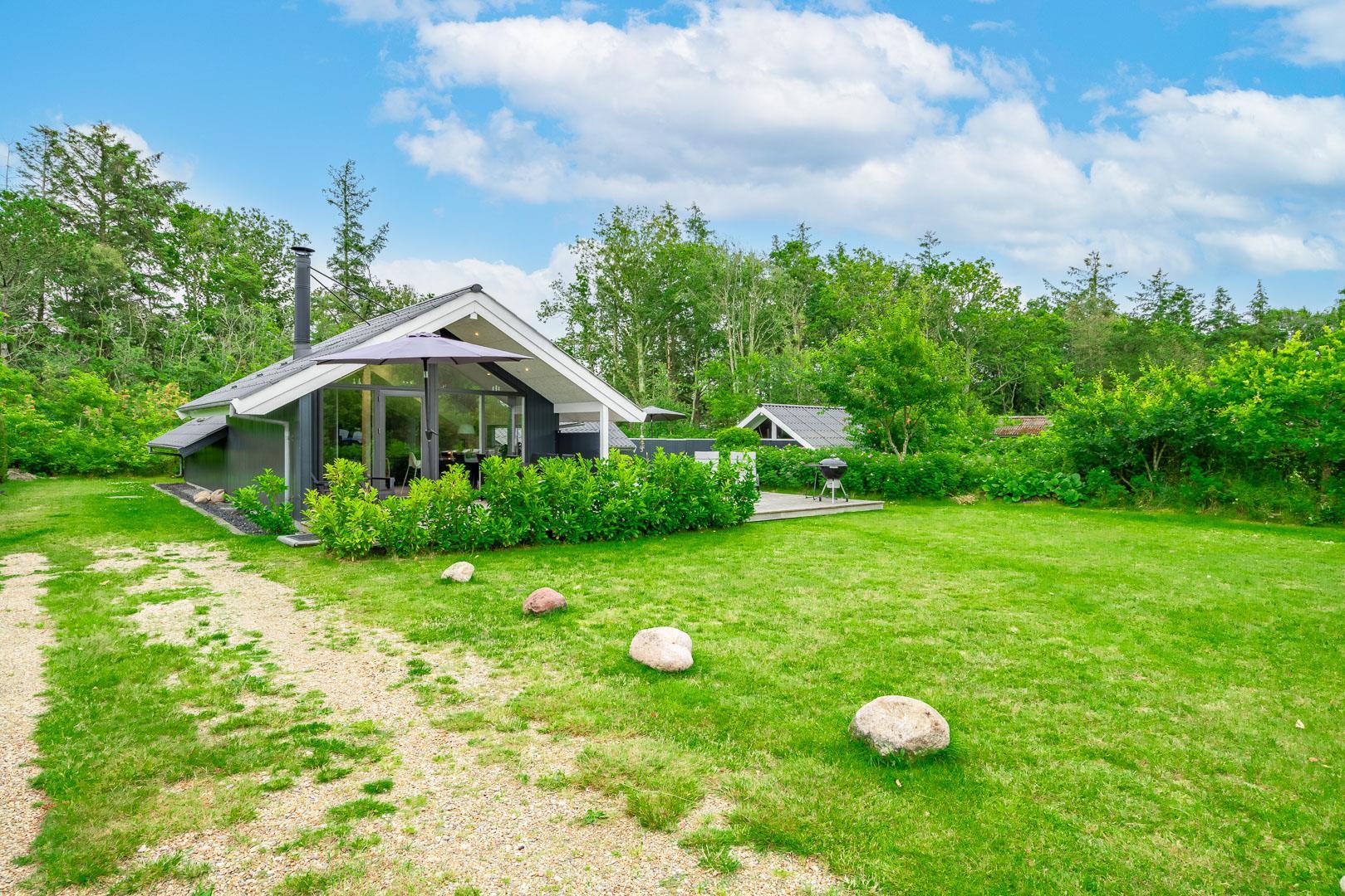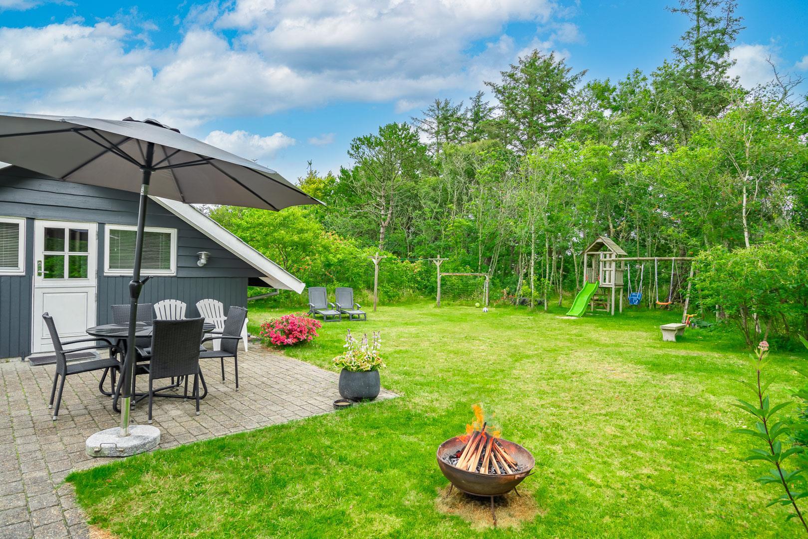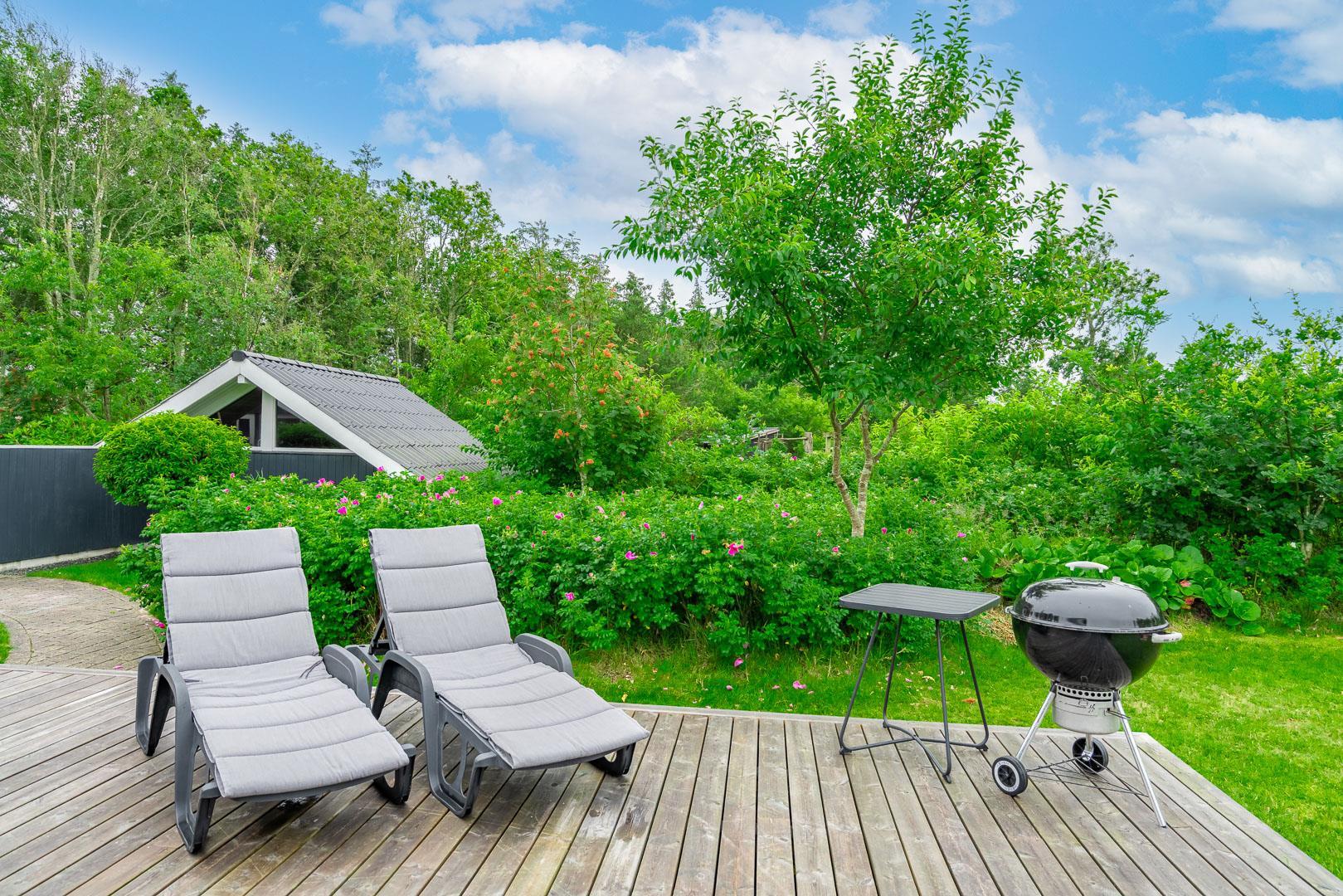 Veludstyret feriehus med solrige terrasser på ugenert naturgrund nær skov og golf i Henne Strand.