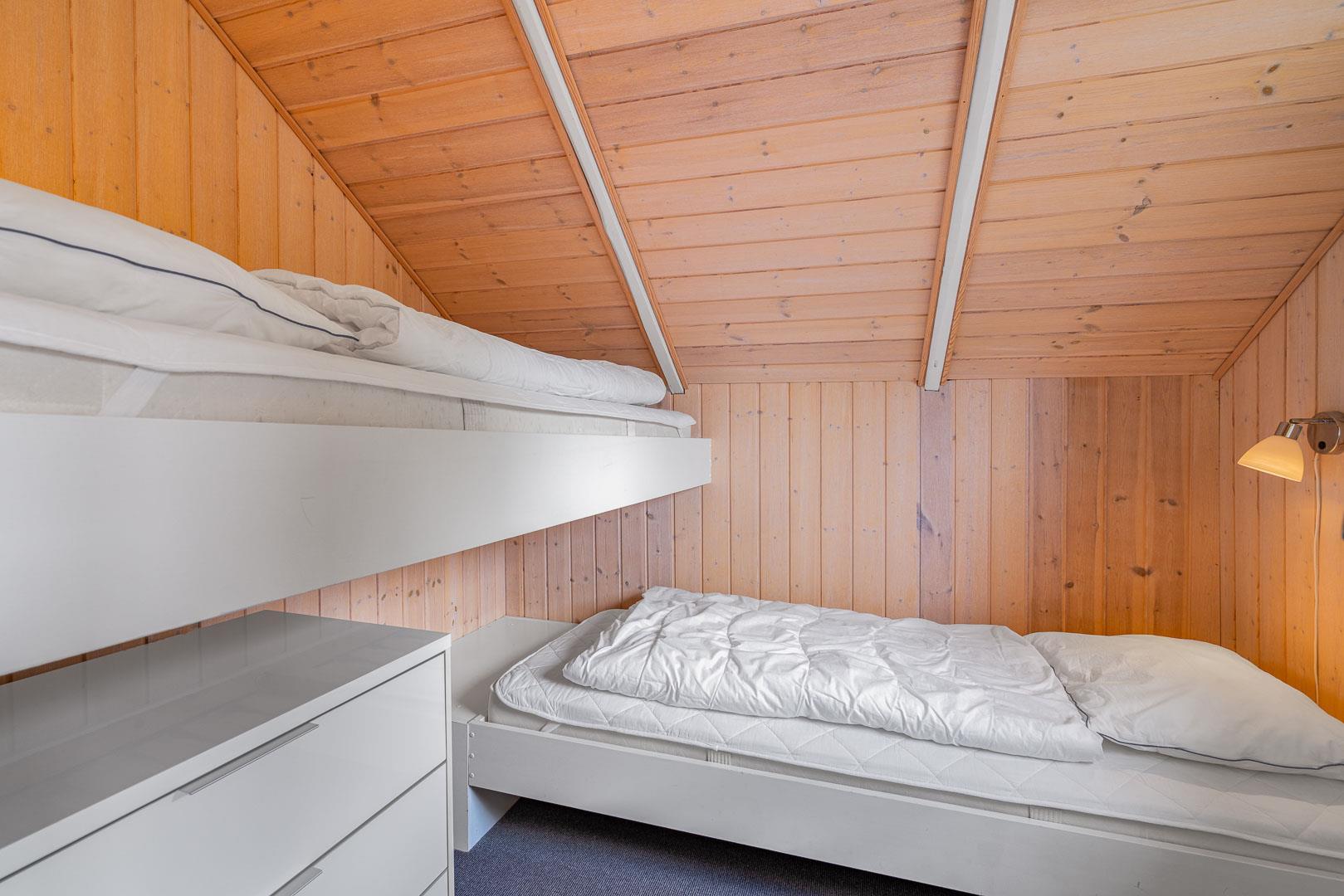 Separat redskabsrum. Sengestørrelse: 1 dobbeltseng 140 x 200 cm + 2 enkeltsenge 90 x 200 cm + 2 enkeltsenge 80 x 200 cm.