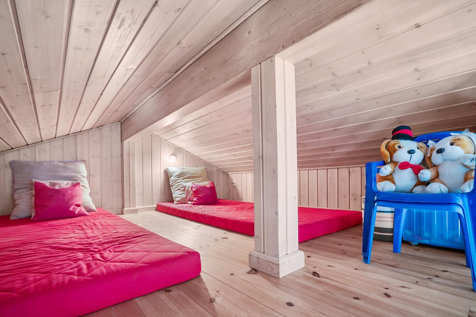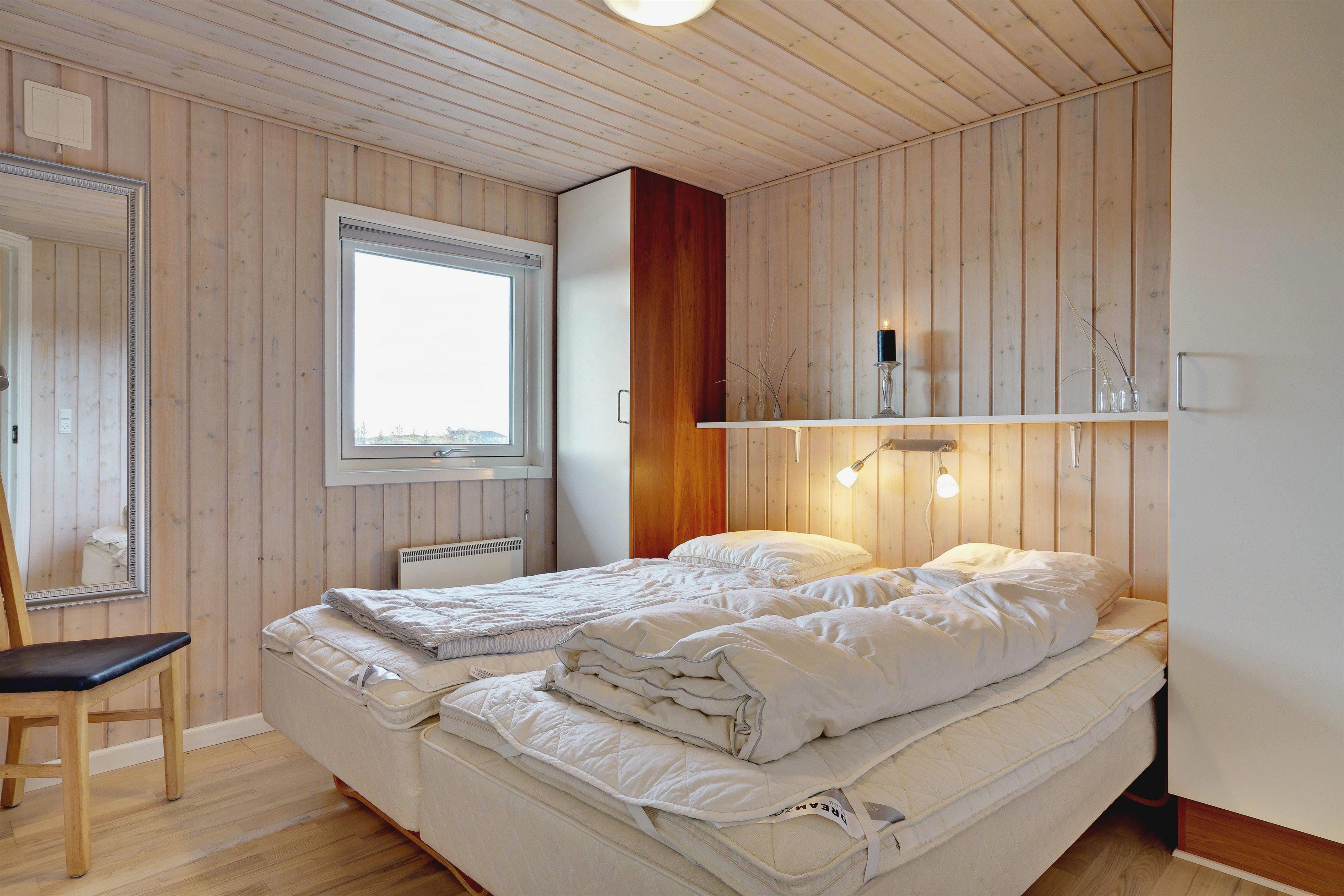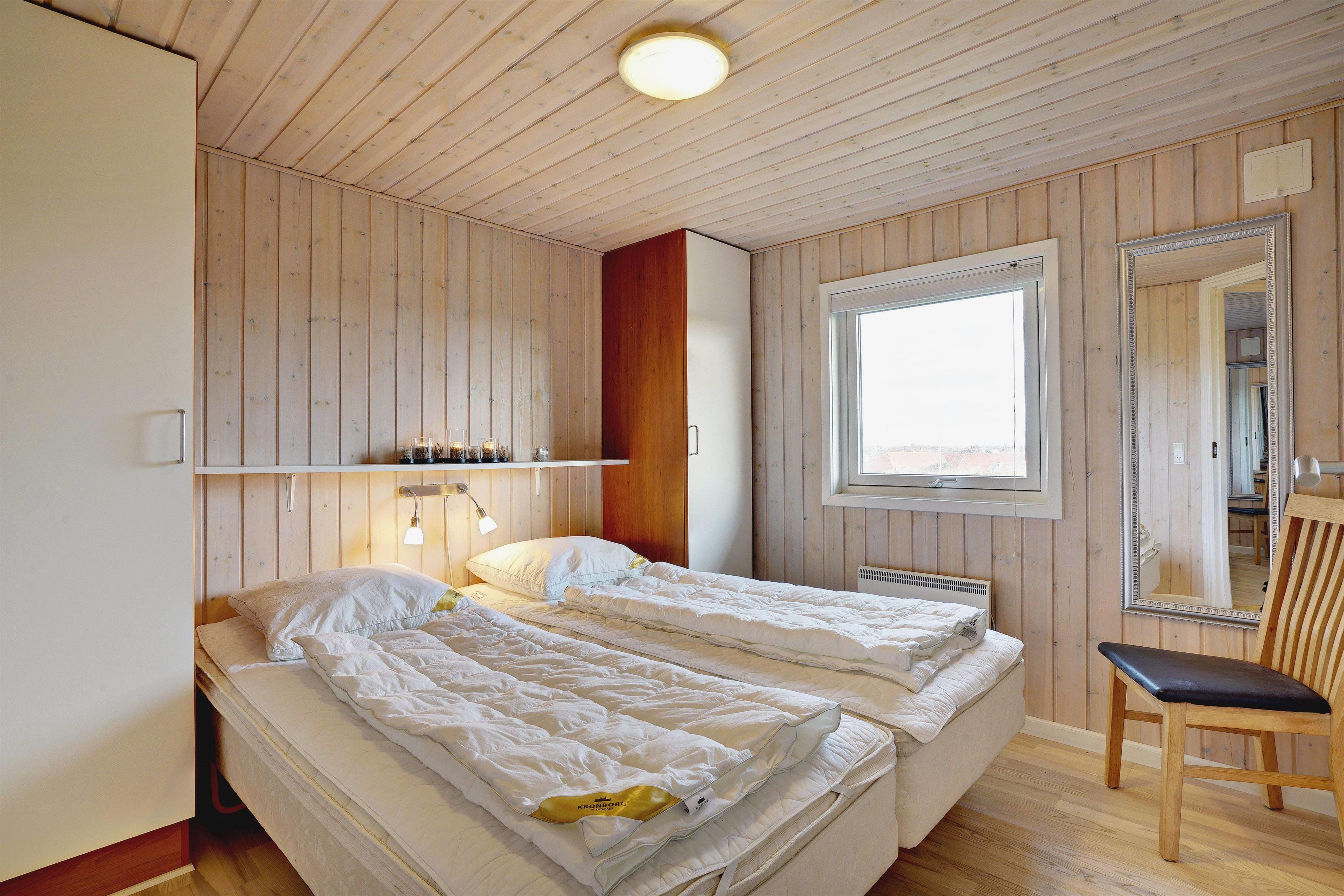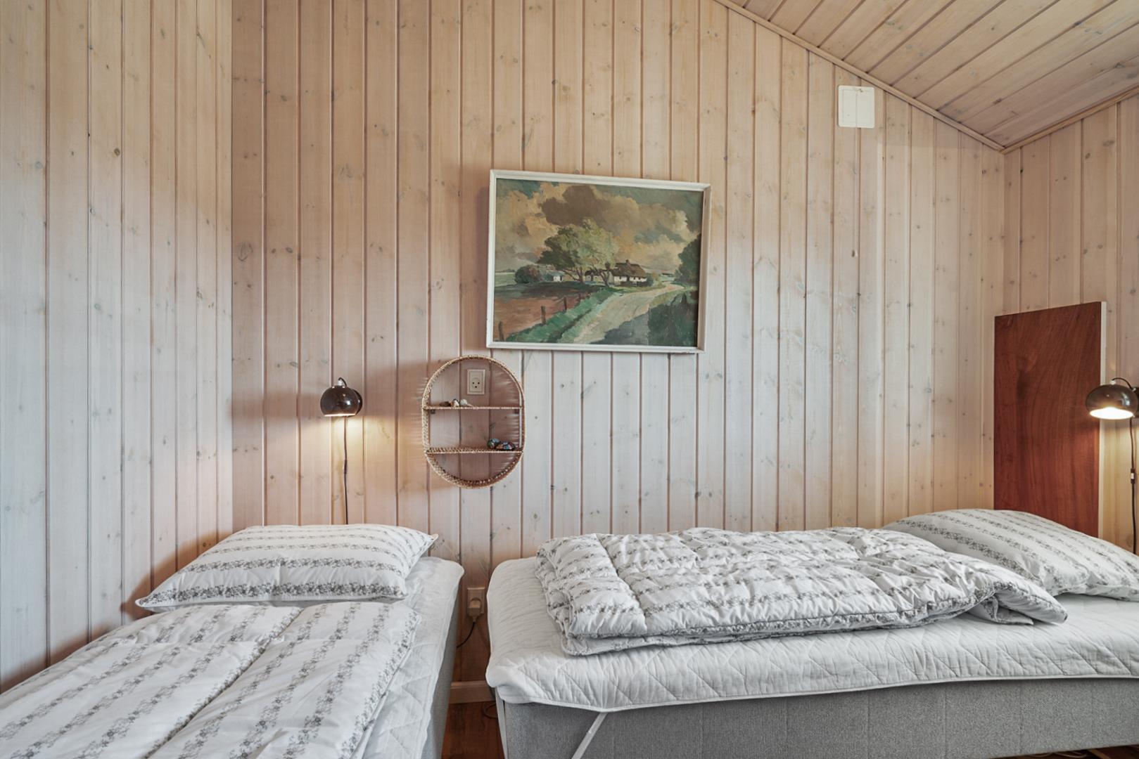 Sengestørrelse: 2 dobbeltsenge med 2 madrasser 90 x 200 cm + 2 enkeltsenge 80 x 200 cm.