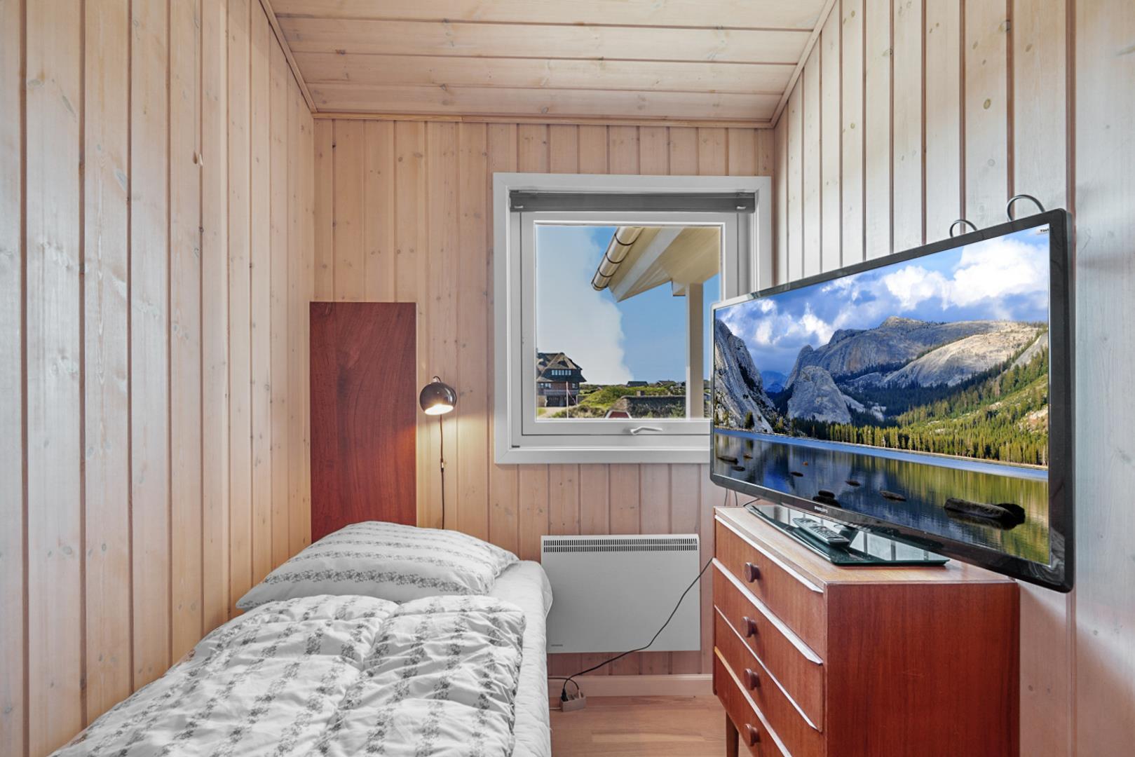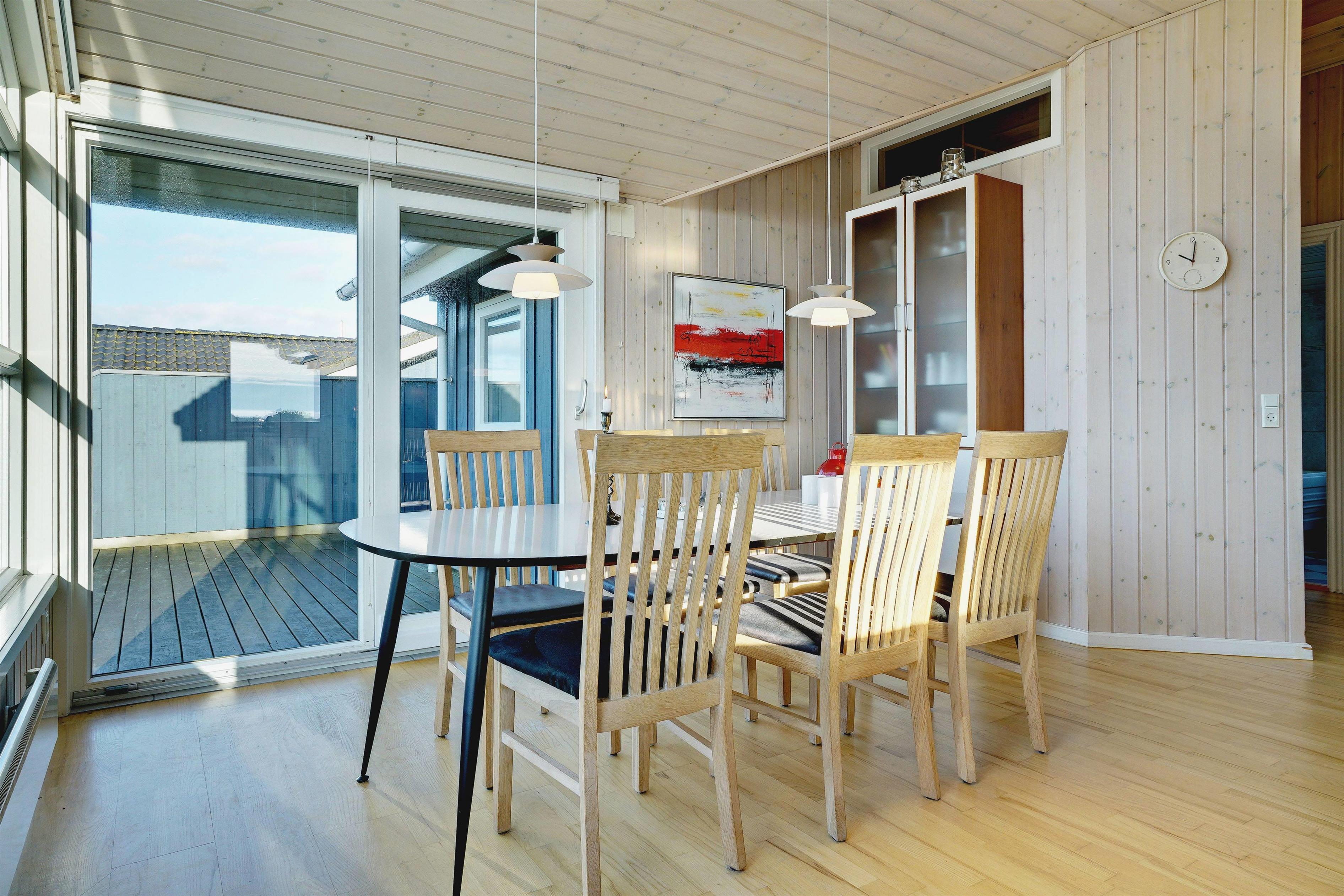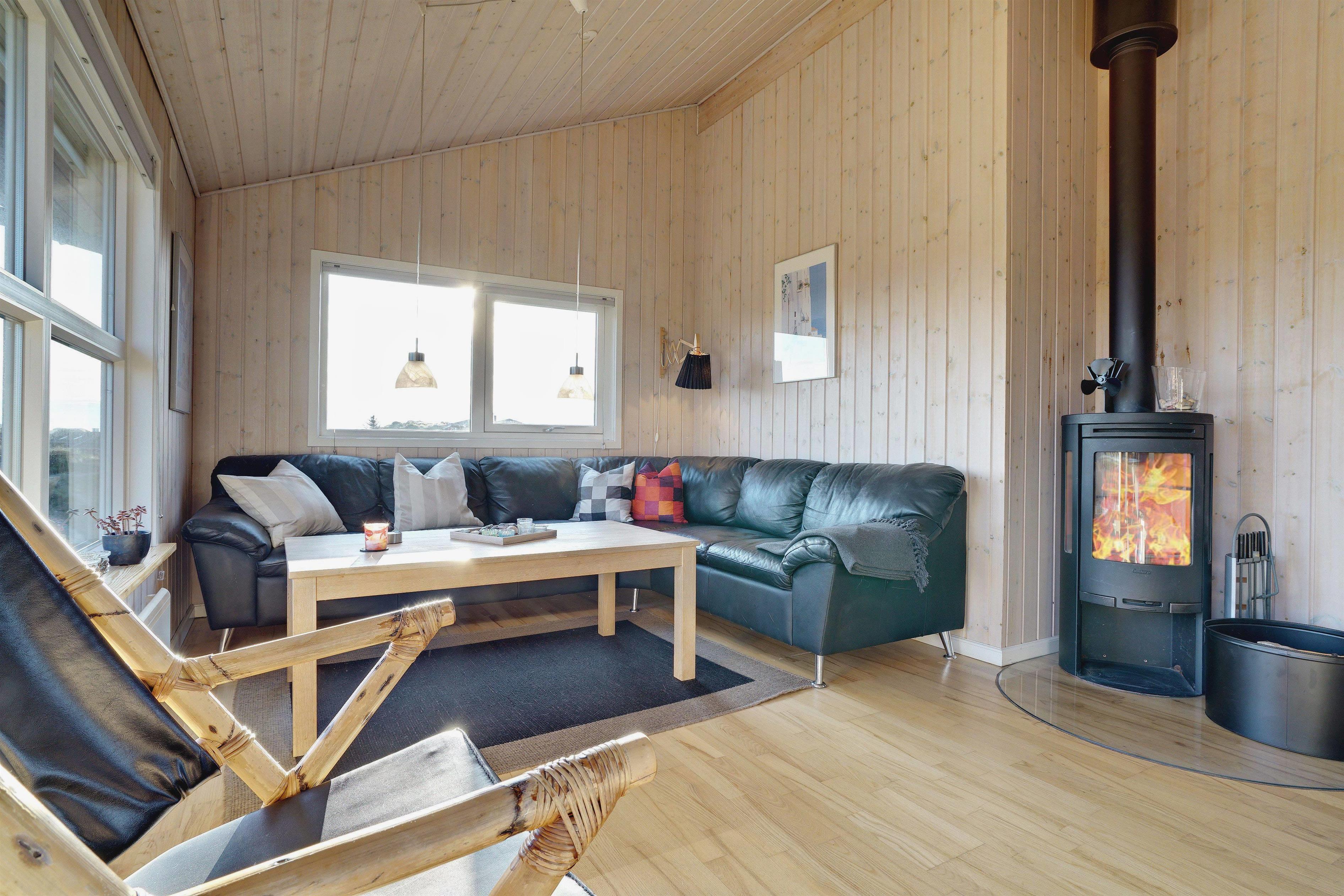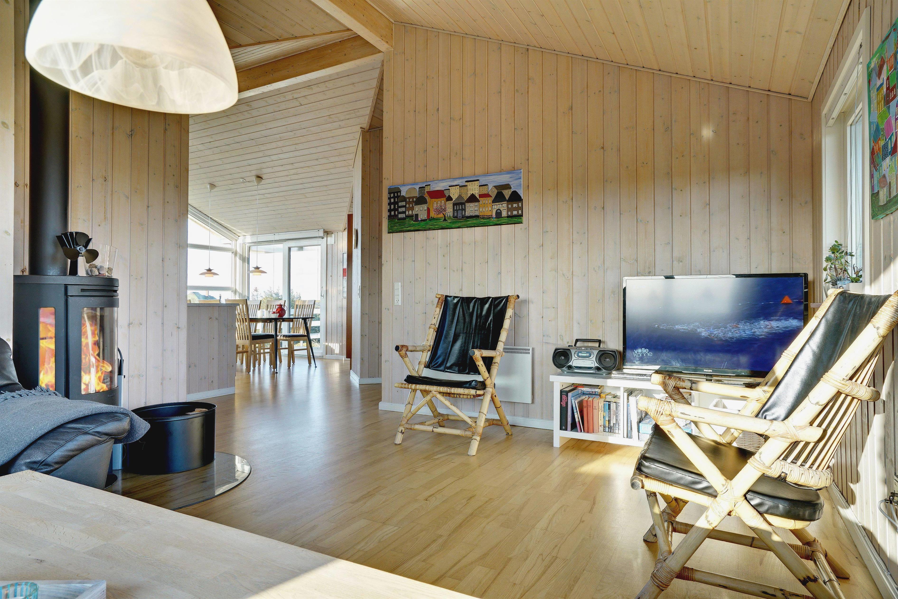 På toppen af en klit, med en pragtfuld udsigt over området, ligger dette skønne og velpassede feriehus. Det veludstyrede køkken ligger i åben forbindelse med stuen, som er indrettet med gode og moderne møbler. Dejligt badeværelse med badekar. Stor hems. På den store træterrasse der omkranser huset kan solen og den flotte udsigt nydes i alle døgnets lyse timer.