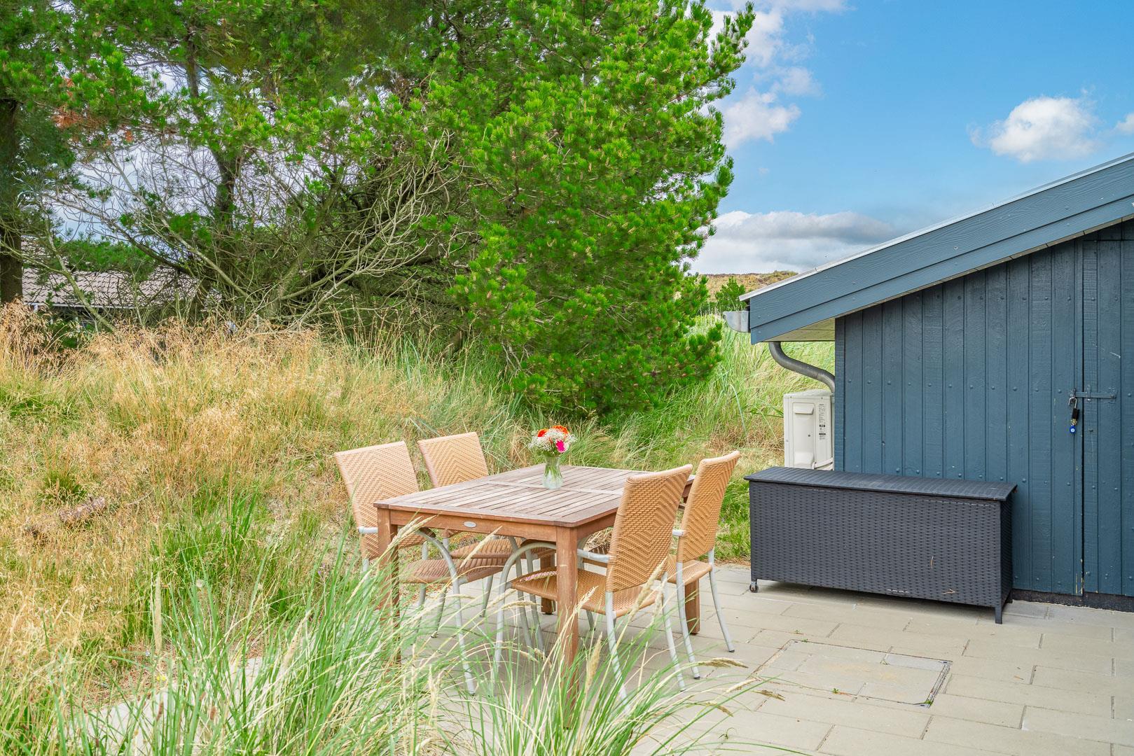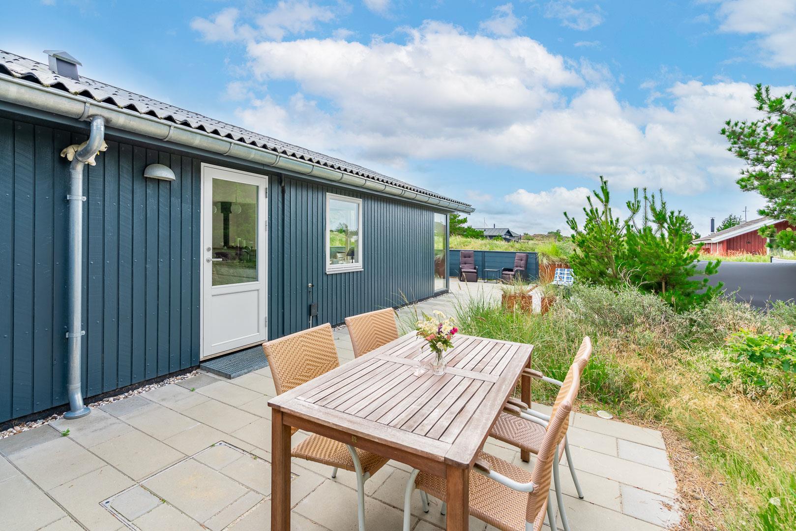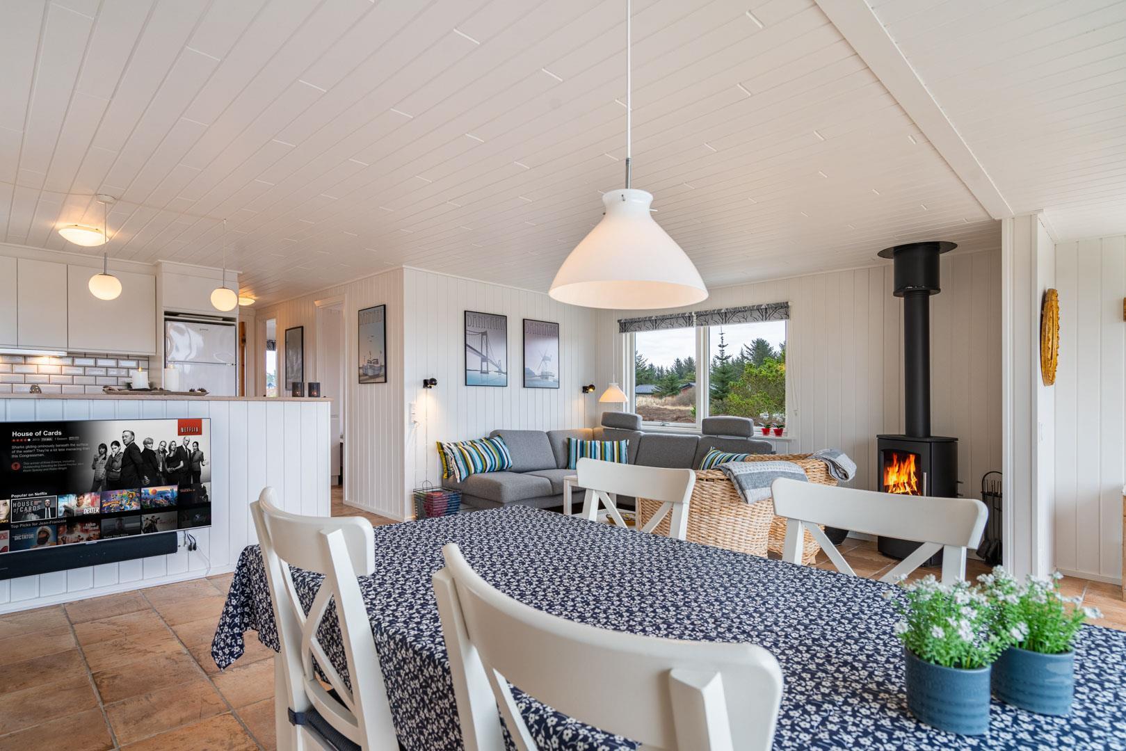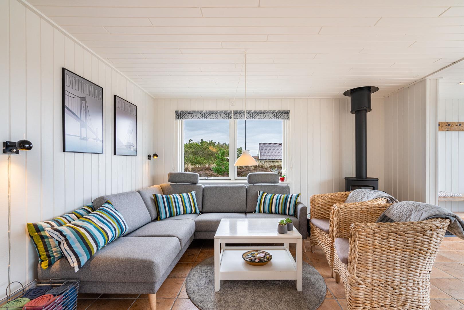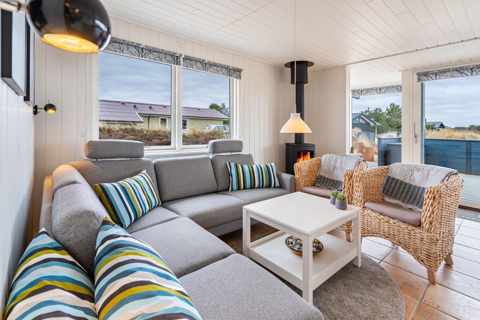Dette dejlige, lyse sommerhus i Henne Strand byder på en skøn beliggenhed på en stor naturgrund. Indvendigt finder du et åbent køkken, der smelter sammen med den hyggelige stue med brændeovn – perfekt til at sprede varme og ekstra hygge på de kolde dage. Fra stuen kan du åbne skydedøren helt op og træde ud på den fantastiske terrasse, der indbyder til ren afslapning og hygge. Med flere havemøbler og et lækkert loungesæt er dette stedet, hvor solens stråler kan nydes med et køligt glas vin eller dyste i diverse familiespil. Her er en indbydende atmosfære, der skaber den perfekte ramme for kvalitetstid med familien, hvor I kan tilbringe mange timer sammen, omgivet af naturen og roen fra Henne Strand.