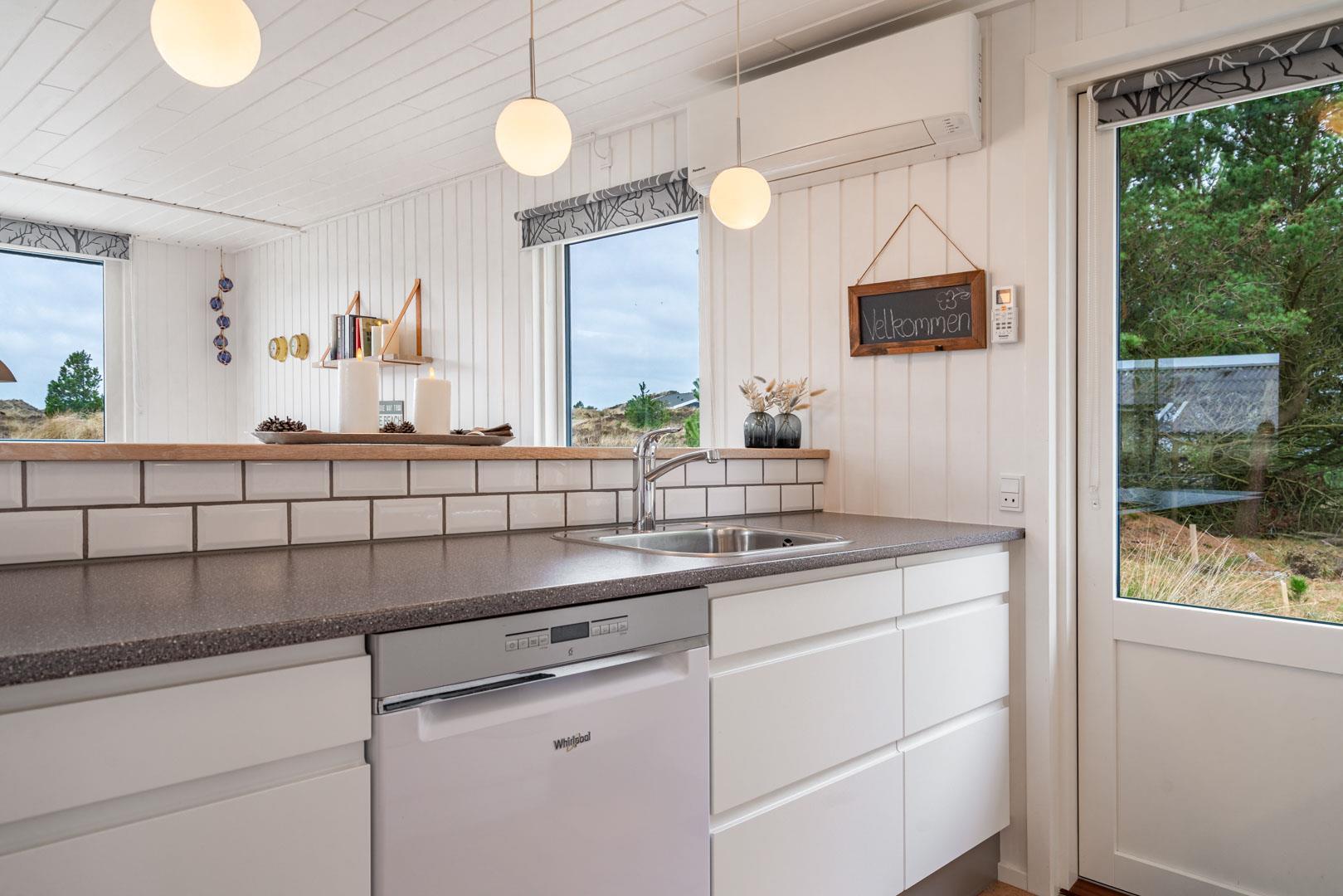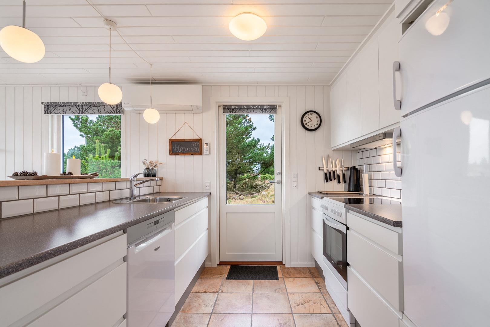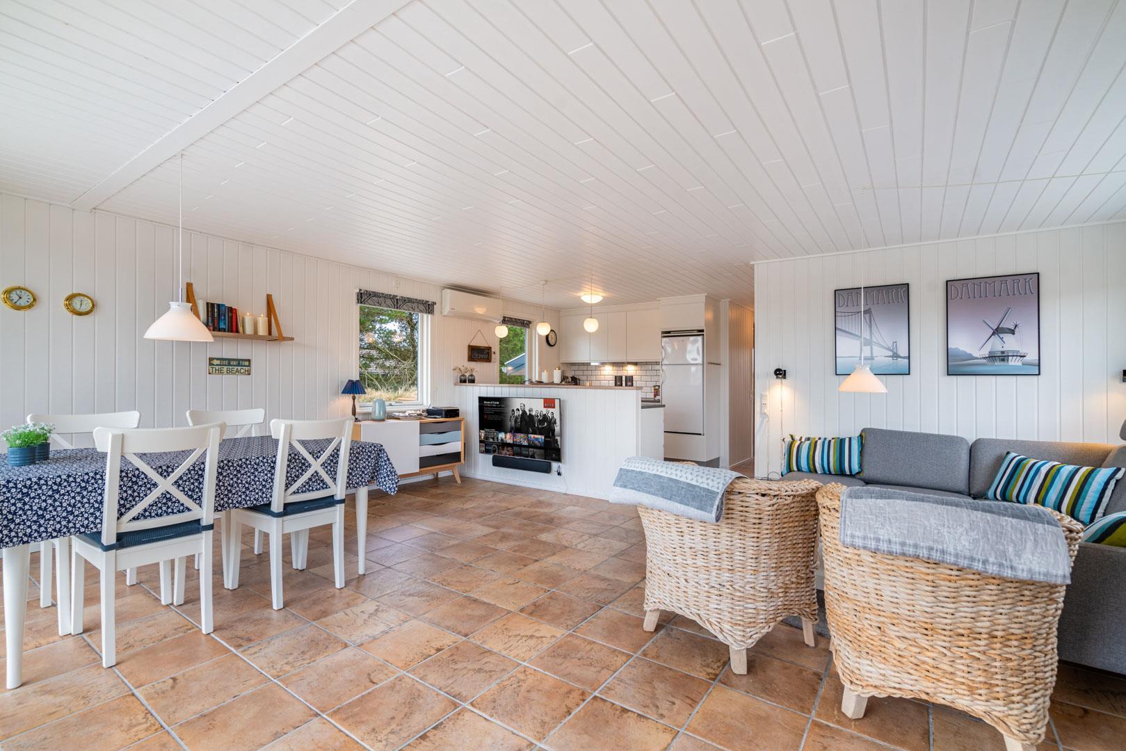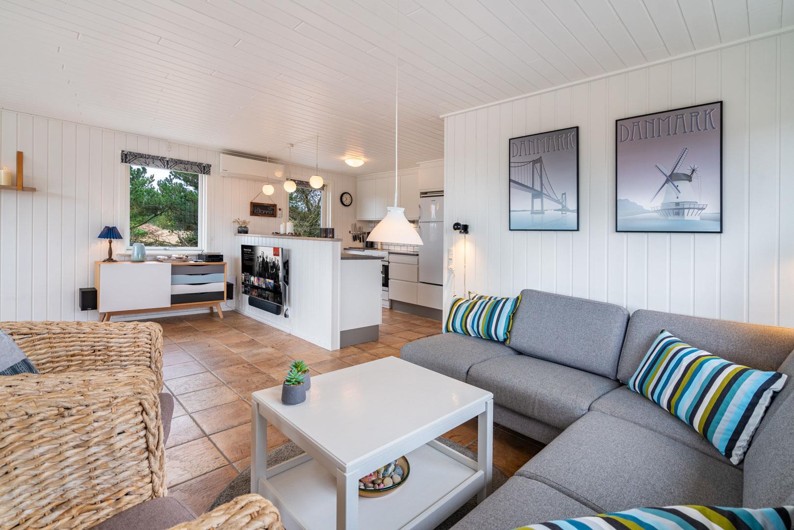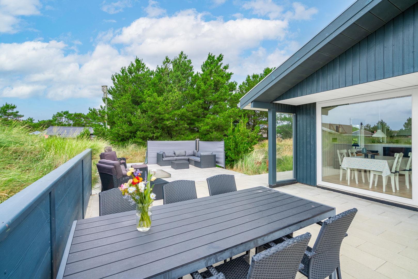 Dette dejlige, lyse sommerhus i Henne Strand byder på en skøn beliggenhed på en stor naturgrund. Indvendigt finder du et åbent køkken, der smelter sammen med den hyggelige stue med brændeovn – perfekt til at sprede varme og ekstra hygge på de kolde dage. Fra stuen kan du åbne skydedøren helt op og træde ud på den fantastiske terrasse, der indbyder til ren afslapning og hygge. Med flere havemøbler og et lækkert loungesæt er dette stedet, hvor solens stråler kan nydes med et køligt glas vin eller dyste i diverse familiespil. Her er en indbydende atmosfære, der skaber den perfekte ramme for kvalitetstid med familien, hvor I kan tilbringe mange timer sammen, omgivet af naturen og roen fra Henne Strand.