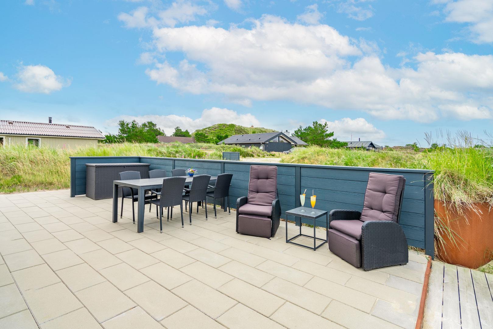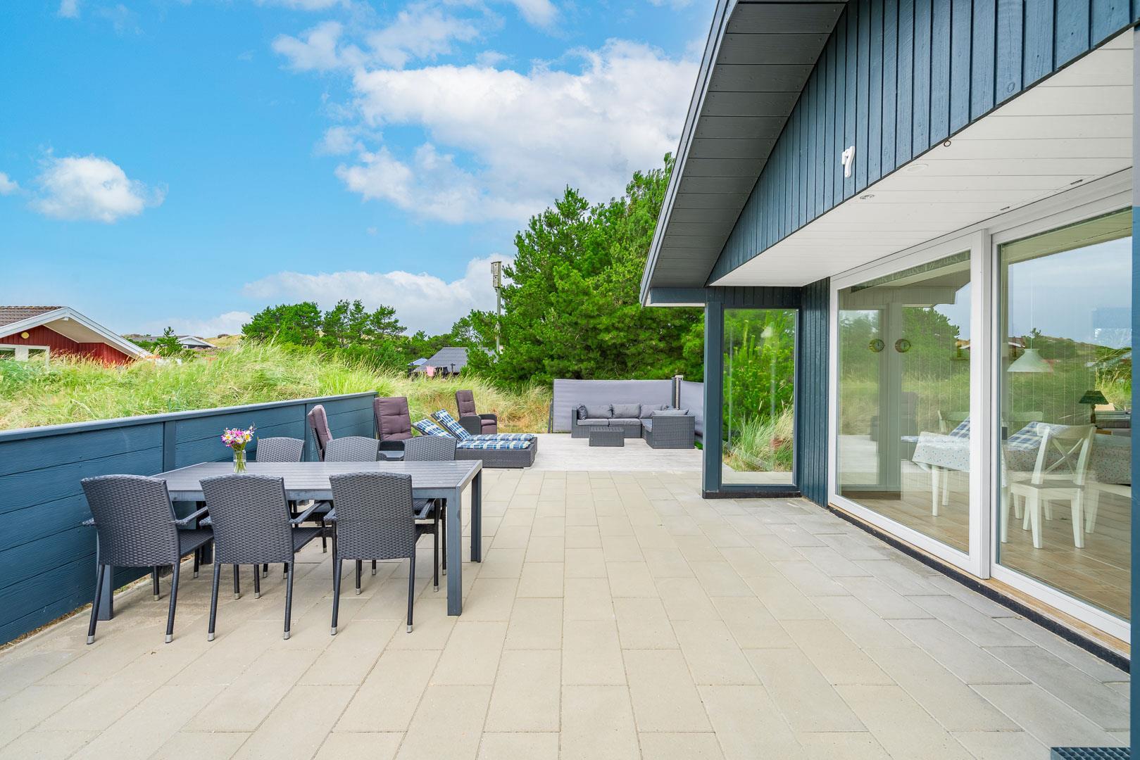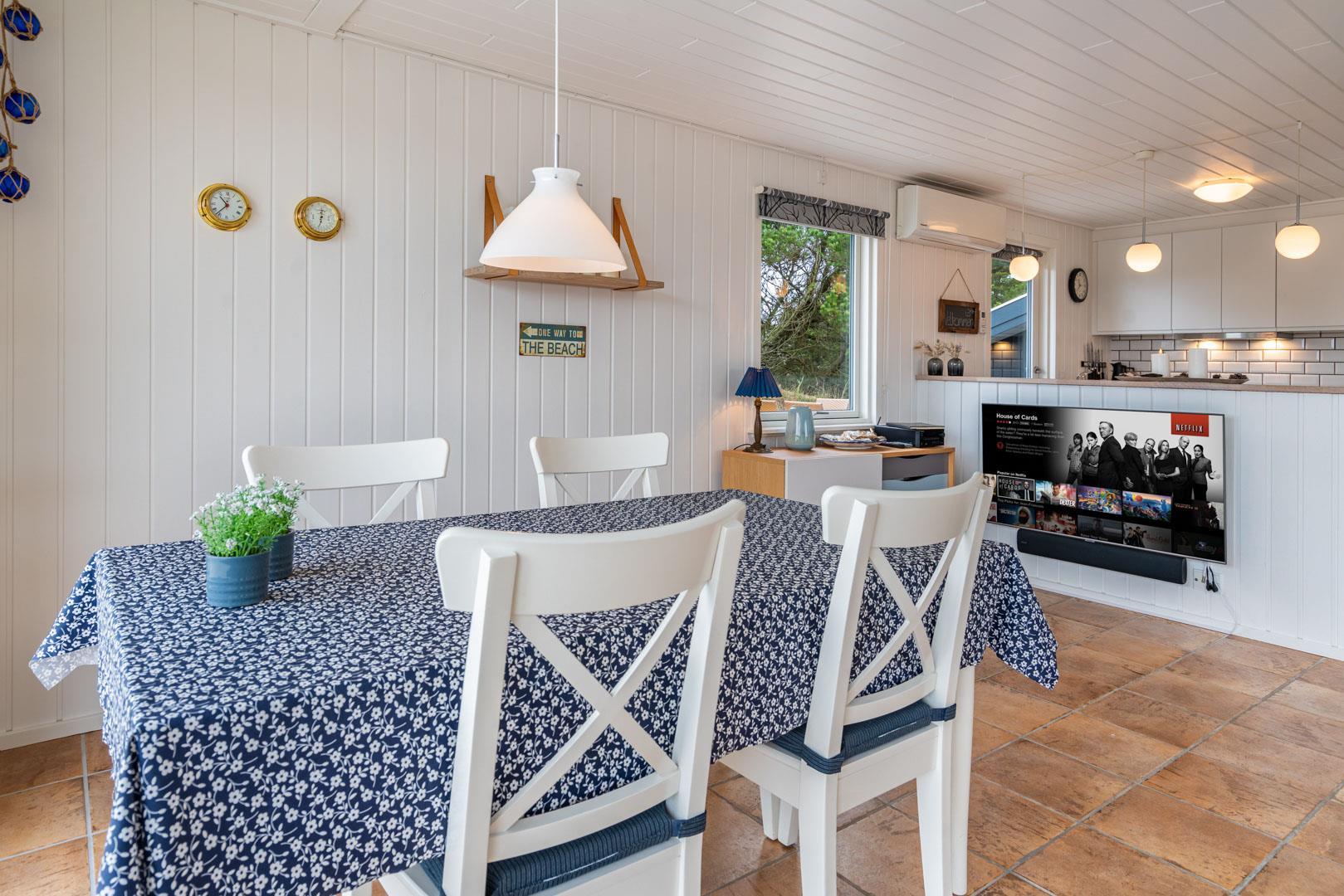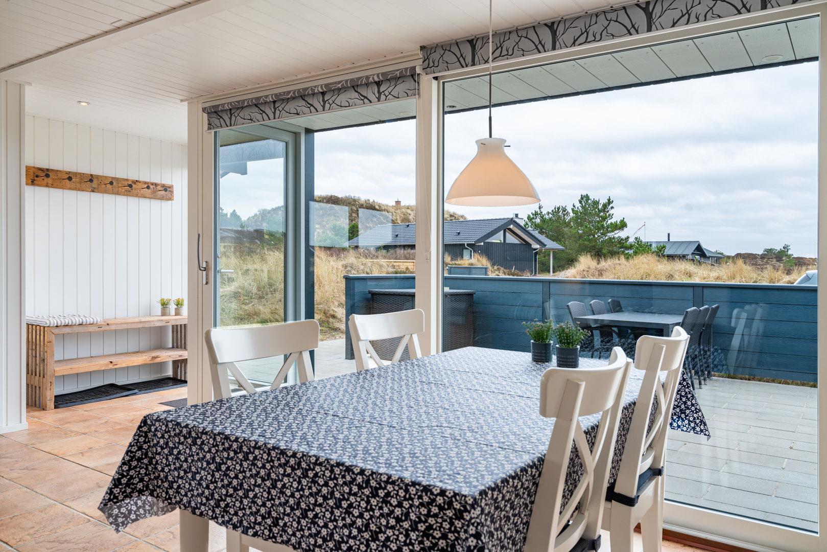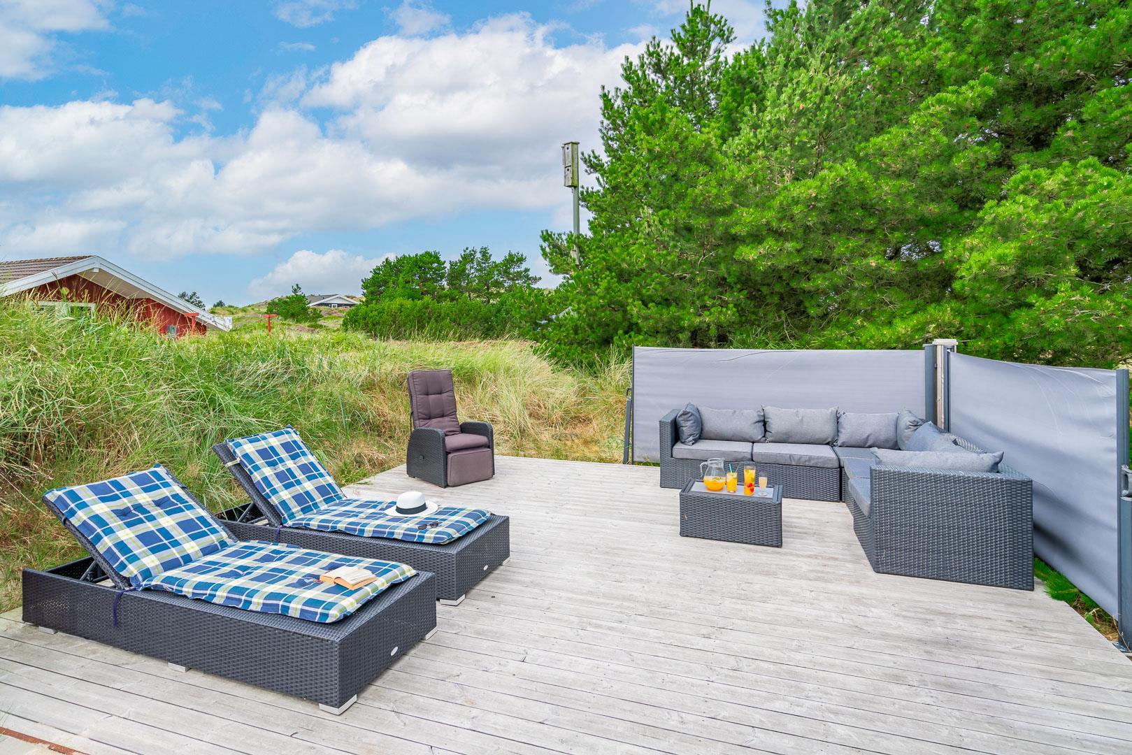 Dette dejlige, lyse sommerhus i Henne Strand byder på en skøn beliggenhed på en stor naturgrund. Indvendigt finder du et åbent køkken, der smelter sammen med den hyggelige stue med brændeovn – perfekt til at sprede varme og ekstra hygge på de kolde dage. Fra stuen kan du åbne skydedøren helt op og træde ud på den fantastiske terrasse, der indbyder til ren afslapning og hygge. Med flere havemøbler og et lækkert loungesæt er dette stedet, hvor solens stråler kan nydes med et køligt glas vin eller dyste i diverse familiespil. Her er en indbydende atmosfære, der skaber den perfekte ramme for kvalitetstid med familien, hvor I kan tilbringe mange timer sammen, omgivet af naturen og roen fra Henne Strand.