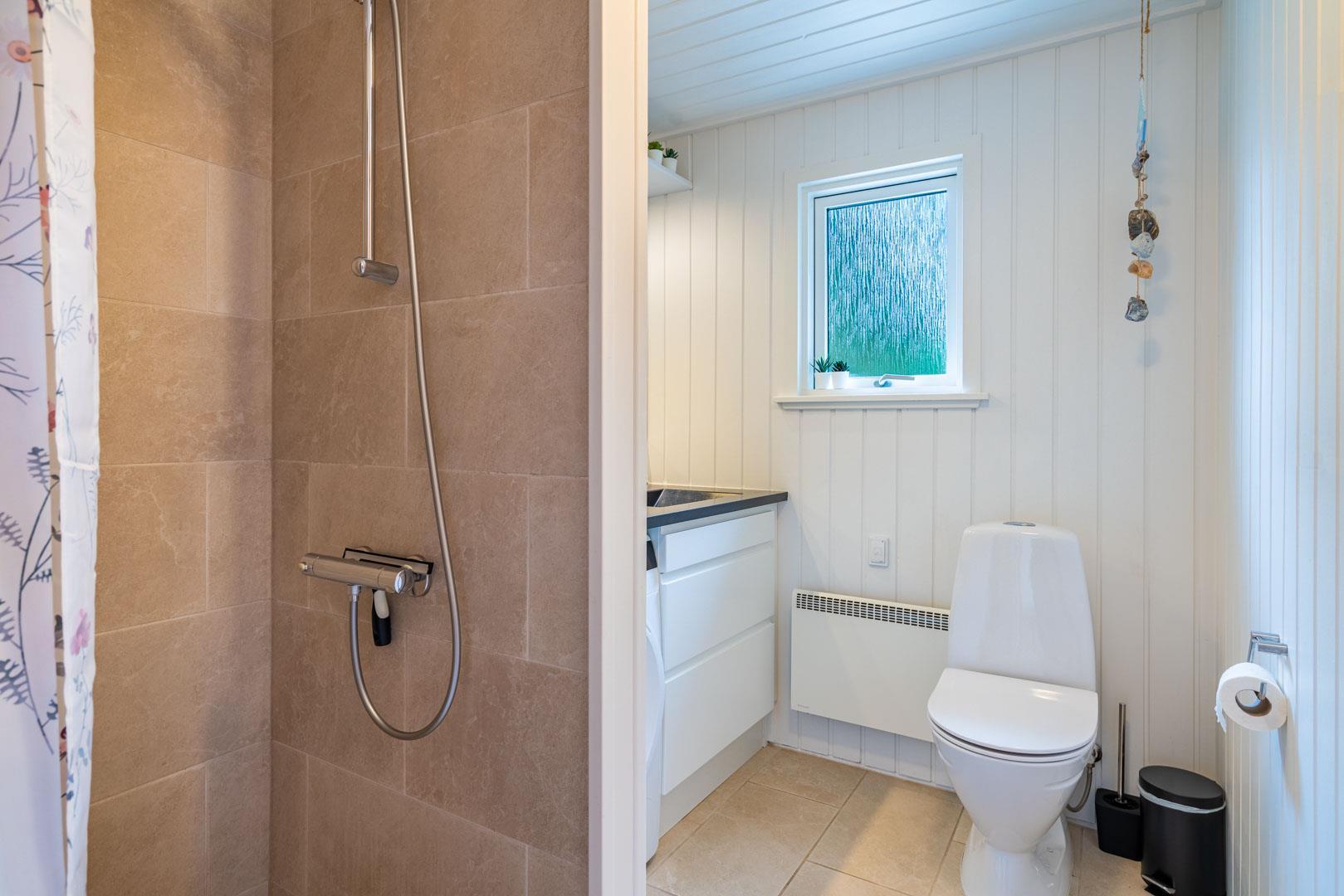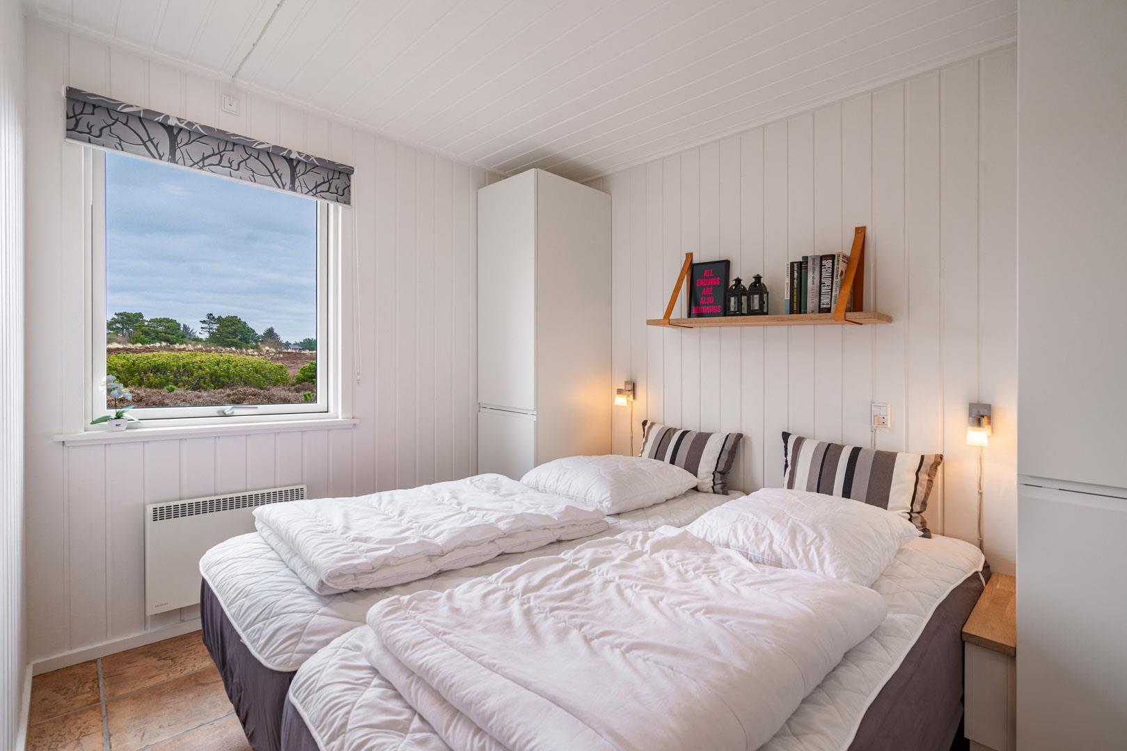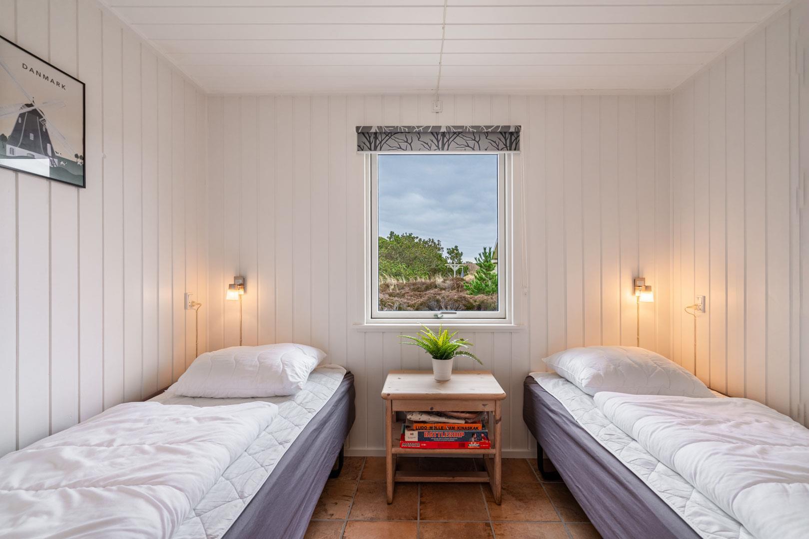 Sommerhuset har desuden tre værelser - to med dobbeltsenge og et med to enkeltsenge - samt et rigtig fint badeværelse.