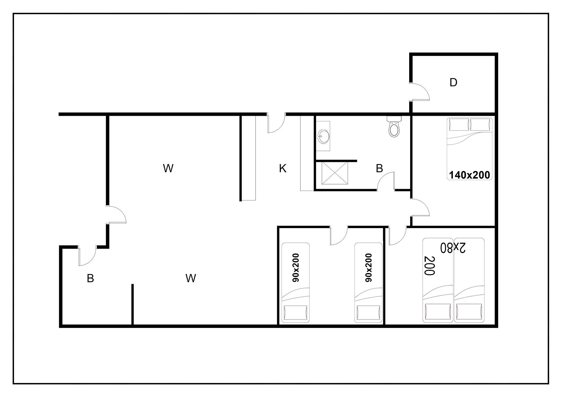 Sengestørrelse: 1 dobbeltseng 140 x 200 cm + 1 dobbeltseng med 2 madrasser 80 x 200 cm + 2 enkeltsenge 90 x 200 cm