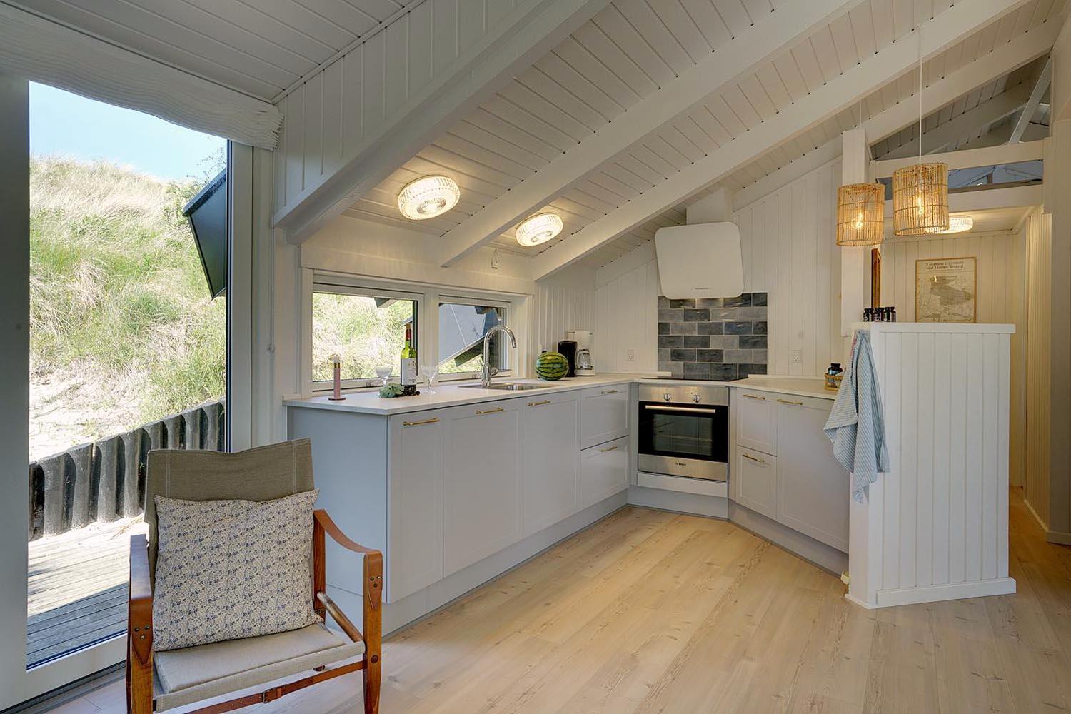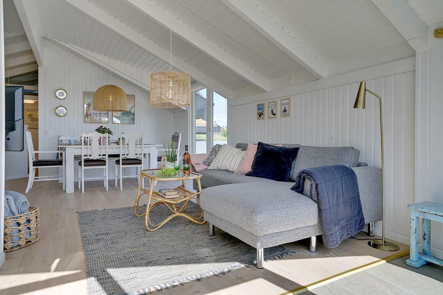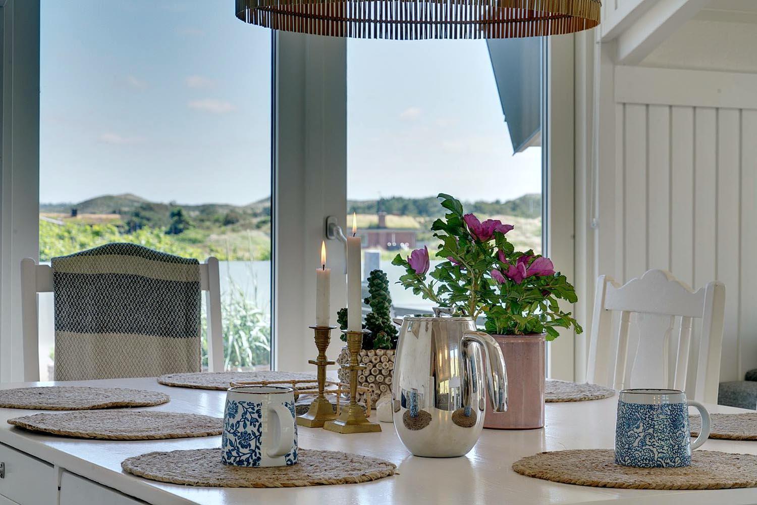 Indretningen er stilfuld med sans for detaljer, og samtidig præget af en varm og personlig atmosfære, hvor I straks føler jer hjemme. De store vinduer og lyse rum skaber en skøn ramme om afslapning og hyggelige timer, både sommer og vinter.