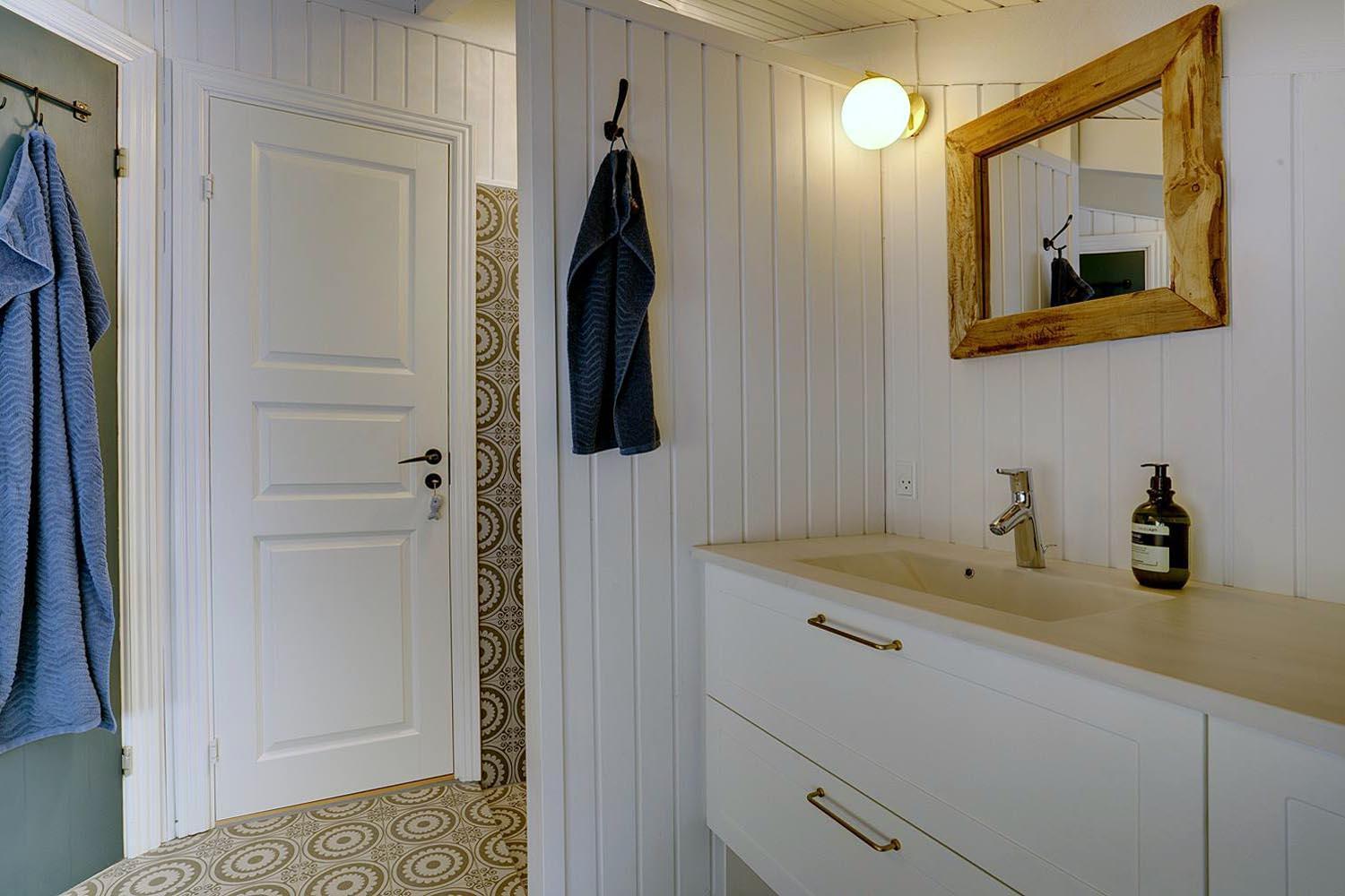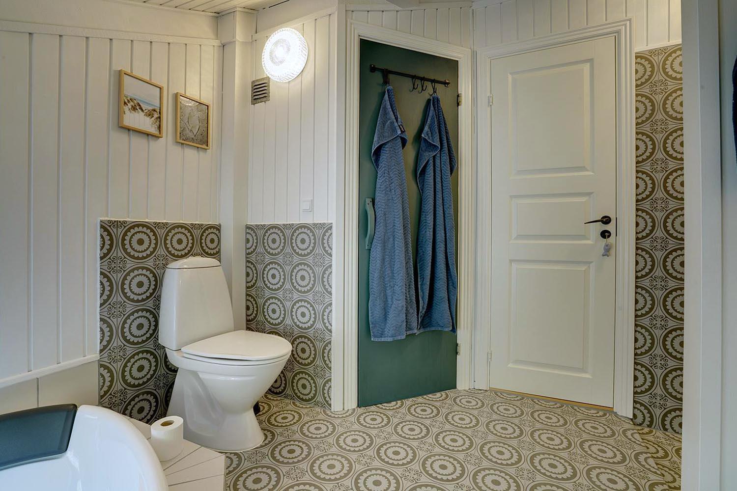 Huset rummer to moderne badeværelser, hvoraf det ene er udstyret med både spa og sauna – en luksus der gør ferien ekstra afslappende, især efter en lang dag i naturen eller ved havet.