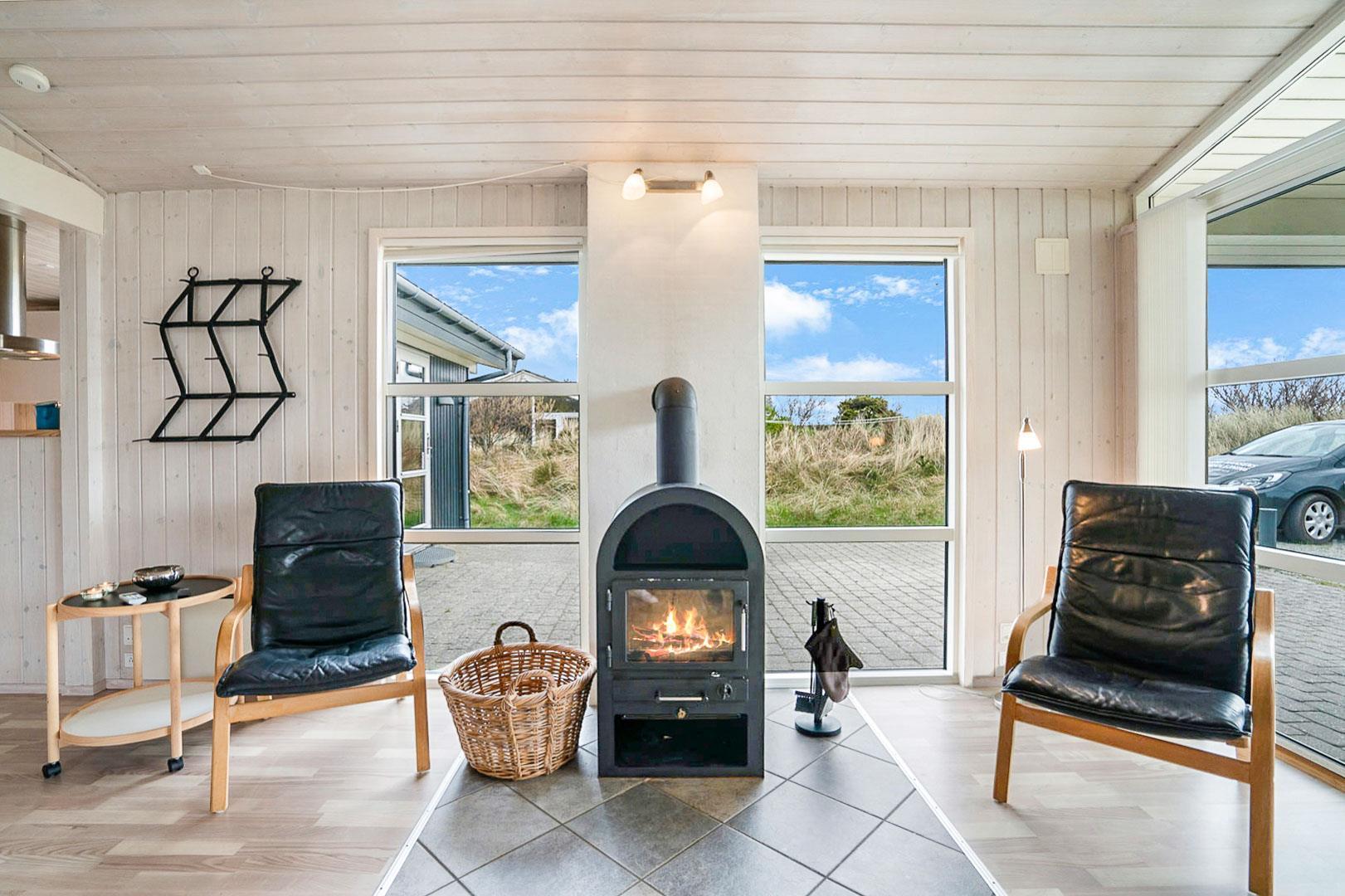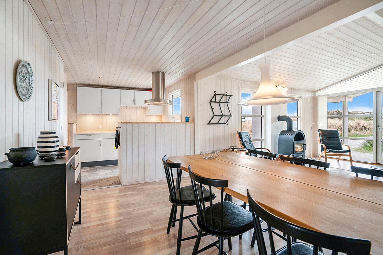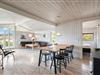 På en pragtfuld og ugeneret naturgrund ligger dette meget venlige og lyst indrettede feriehus. Huset har 2 badeværelser med gulvvarme. Lys stue med brændeovn og med direkte udgang til overdækket terrasse, samt udgang til ekstra ugenert mindre solterrasse.