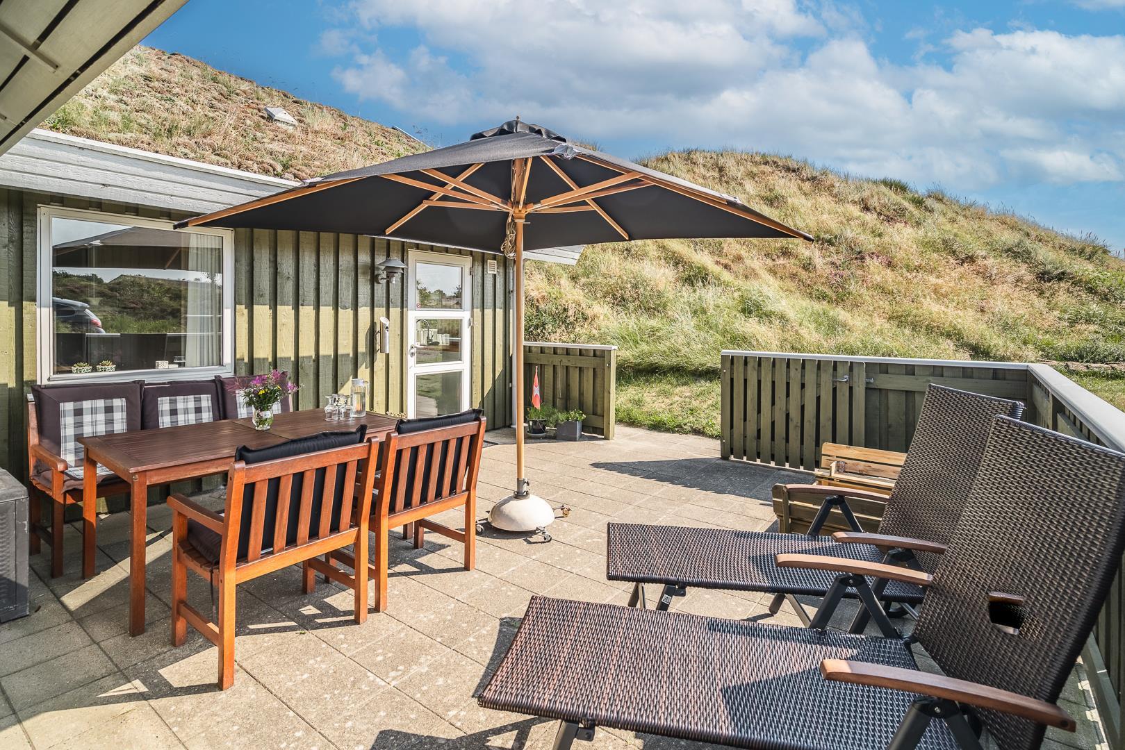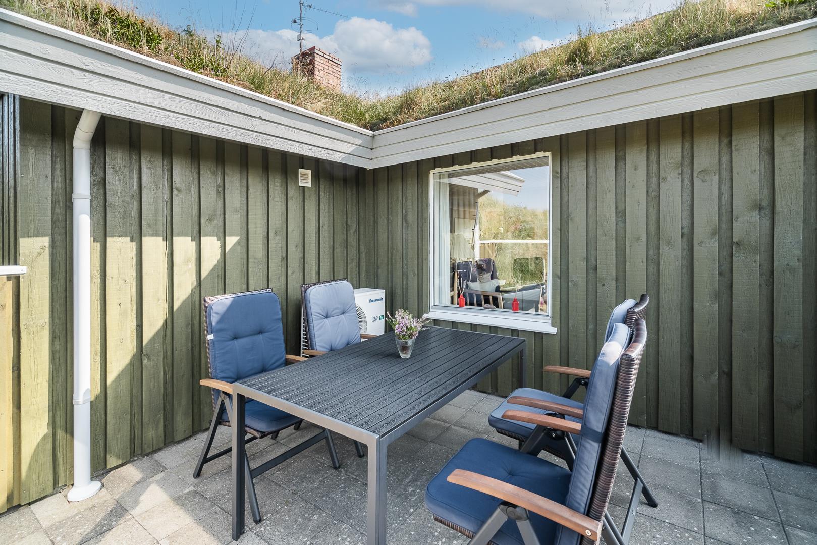 Lyst feriehus med sauna og lukket terrasse