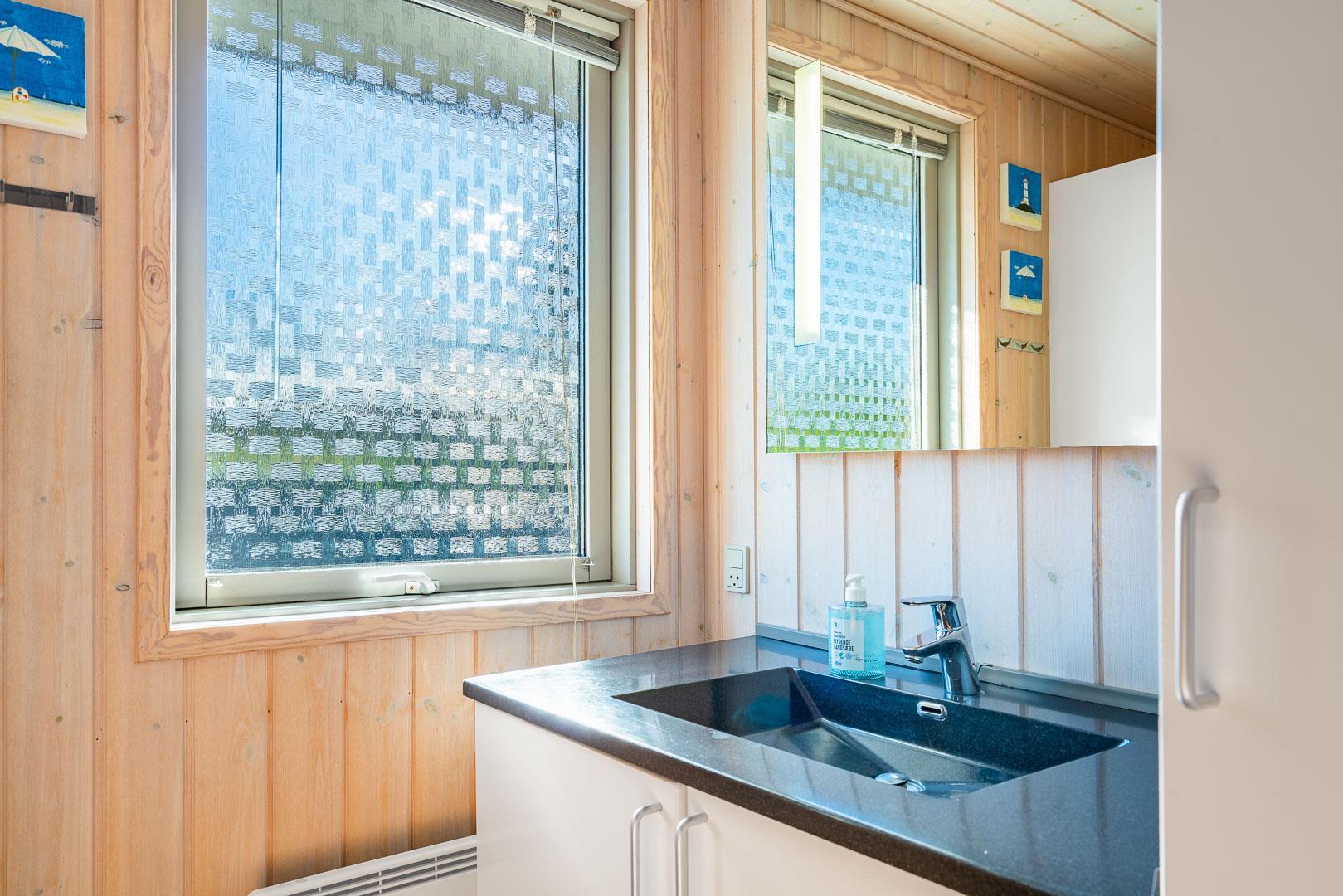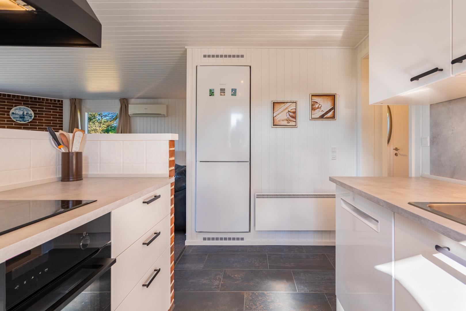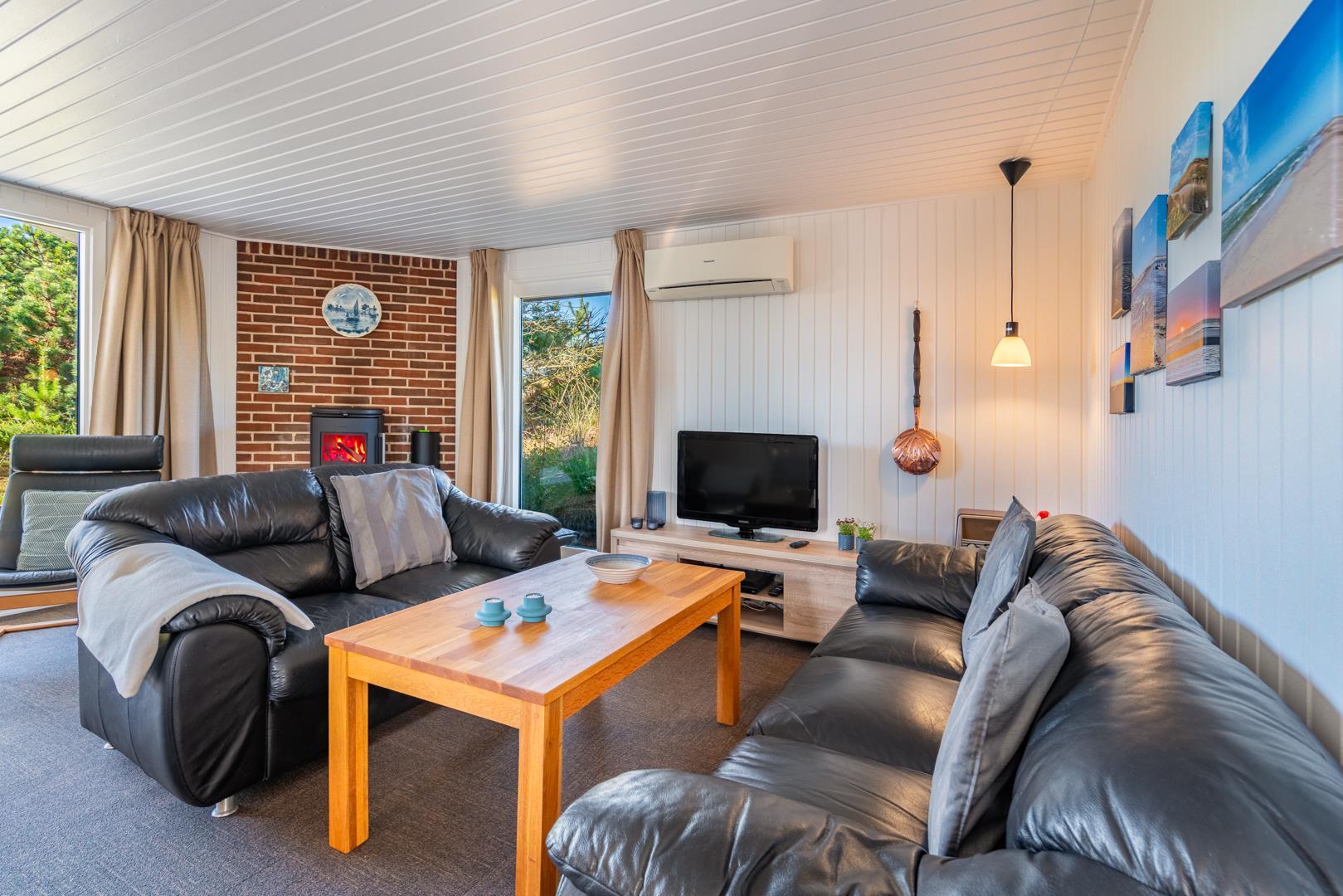 I rolige omgivelser på en flot og kuperet naturgrund ligger dette meget velholdte og løbende renoverede feriehus. Til huset hører stor, lukket samt en mindre overdækket terrasse. Flot nyere badeværelse. Det nye køkken (2025) er kombineret med stuen. Den hyggelige opholdsstue er indrettet med gode møbler. 3 værelser 2 med dobbeltseng og 1 med 2 enkeltsenge. Til børnene findes der barneseng og høj barnestol samt gynge på grunden. Skur til bl.a. cykler.