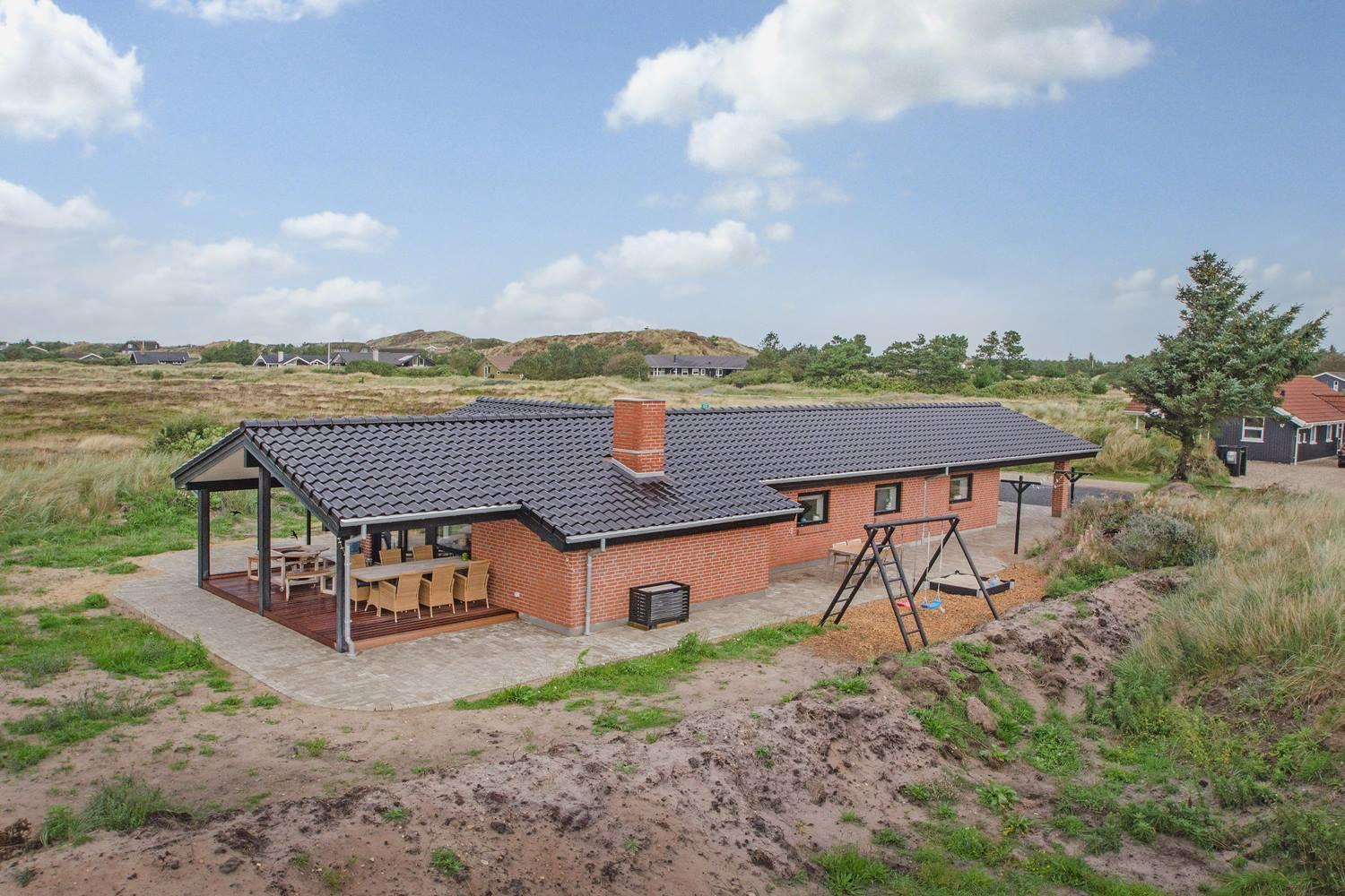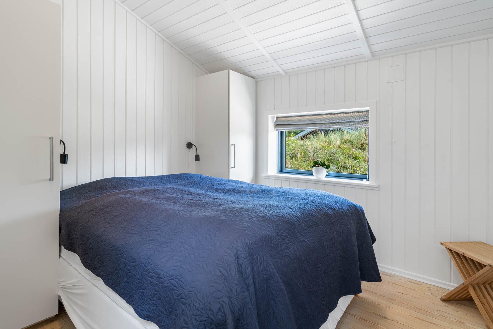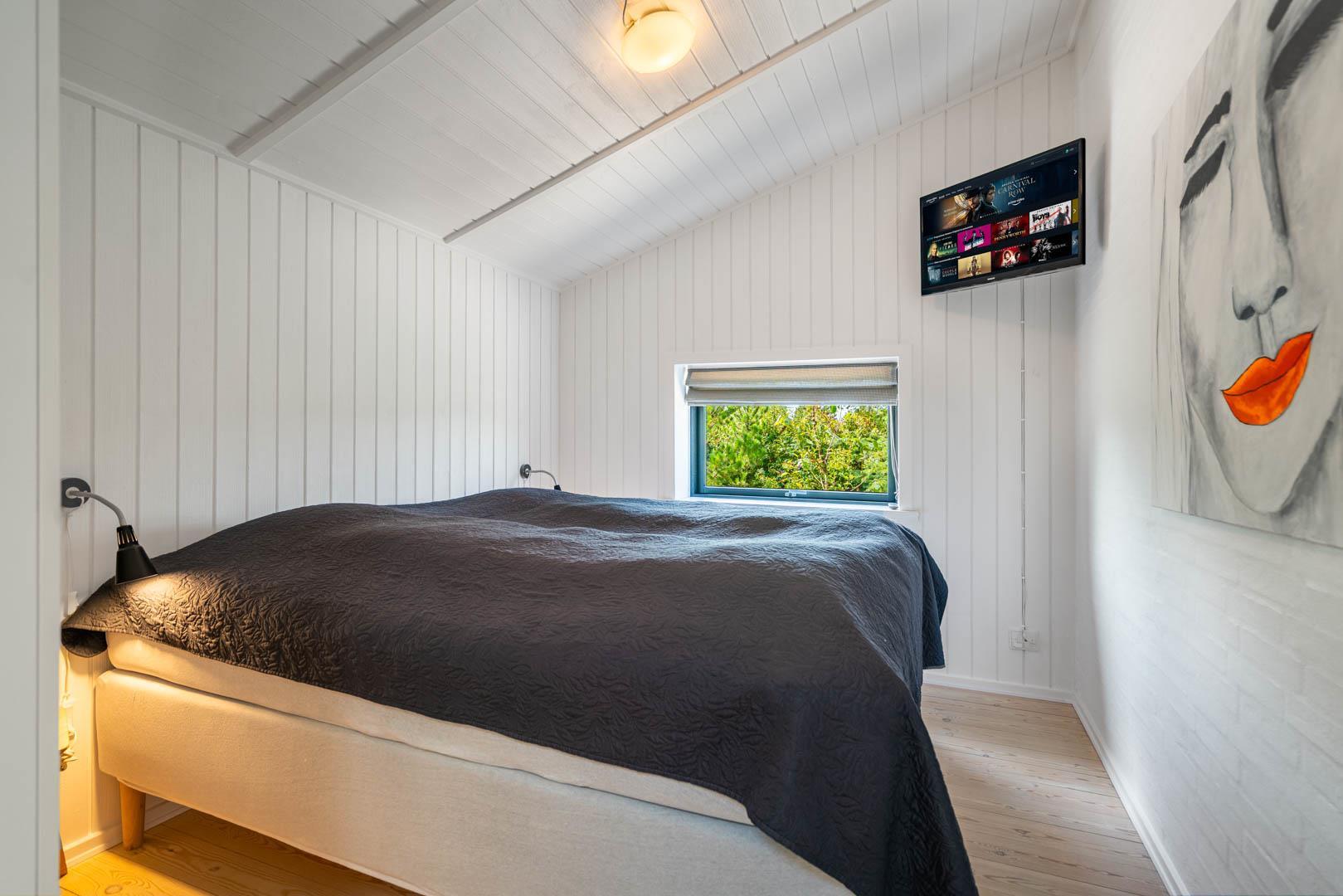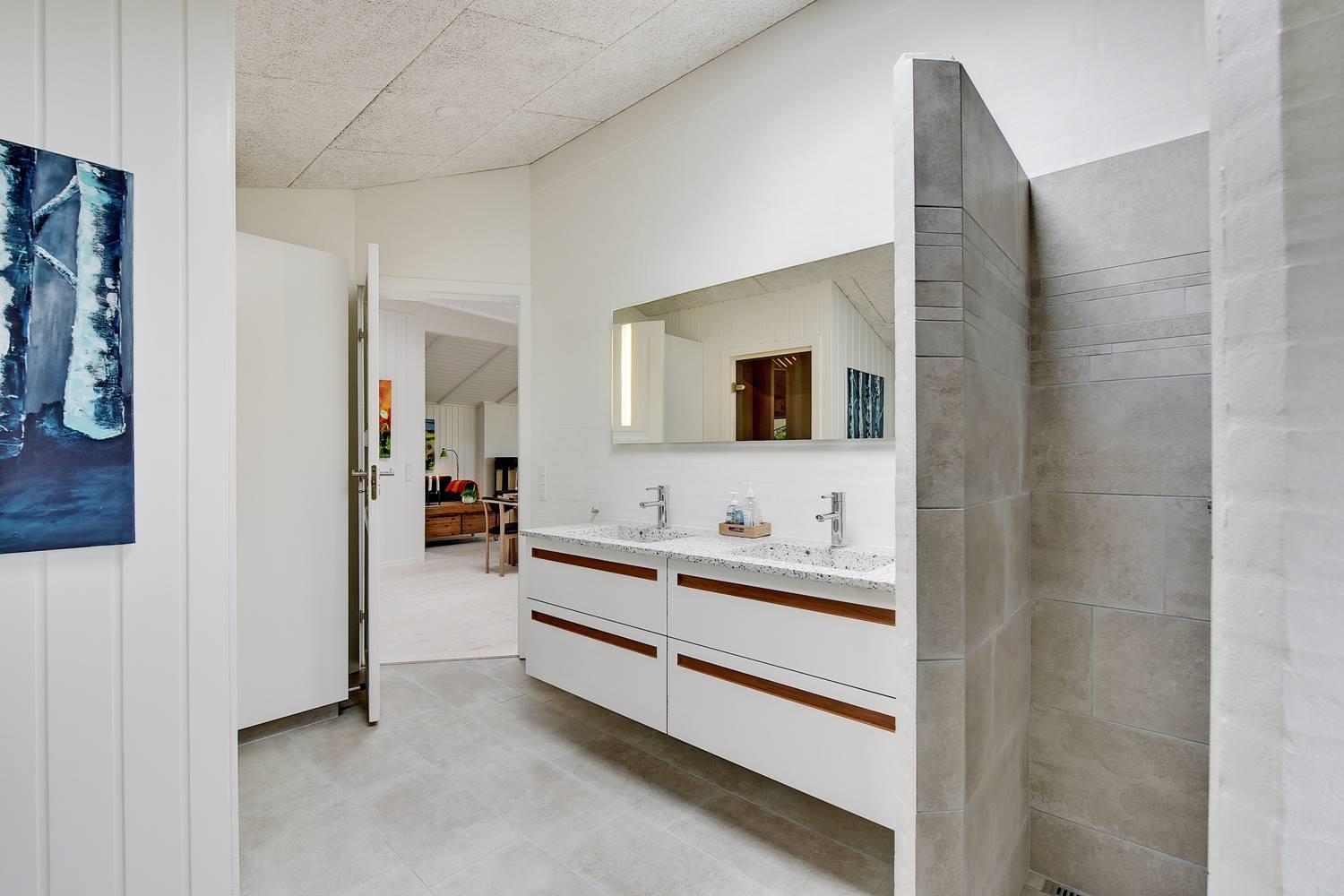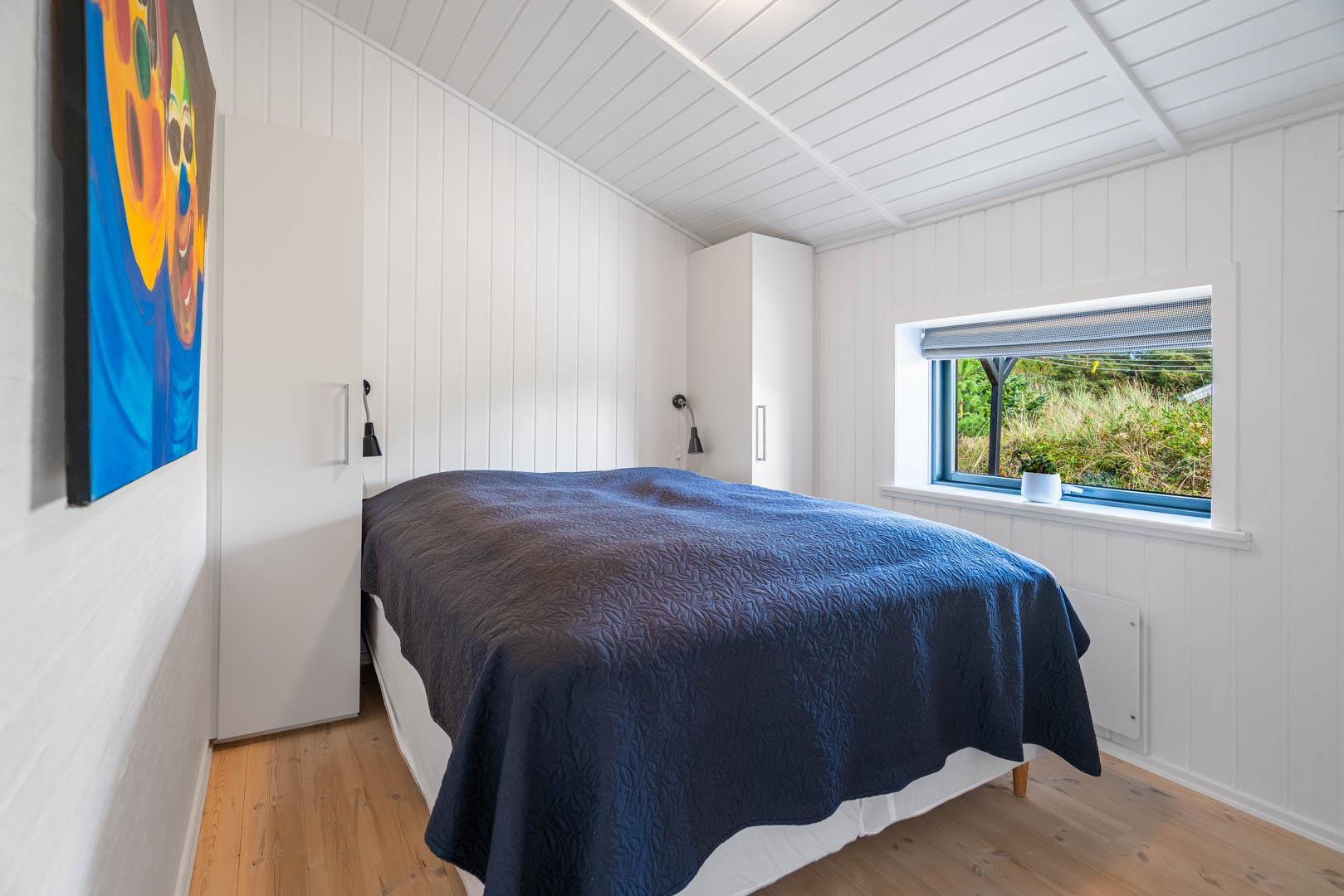 Feriehuset har 2 flotte badeværelser med bruser og gulvvarme, det ene råder over sauna og badekar. Fra stuen er der udgang til stor overdækket træterrasse, samt fliseterrasse der fordeler sig på 3 sider på huset således man kan nyde solen hele dagen. 4 gode soverum. samt alkove hvor børnene kan hygge sig. Stor entre med vaskemaskine og tørretumbler. Til børnene er der 2 fodboldmål på den ene terrasse, samt gynge og sandkasse. Fremhæves skal også den pragtfulde overdækkede terrasse med terrassevarmere som er med til at forlænge terrassesæsonen og gøre grillaftenen længere. Et "super-hus hvor rammerne er til stede for en rigtig god ferie - hele året. Parkering med autocamper på grunden ikke tilladt. Huset er udstyret med kvalitets Continental senge.