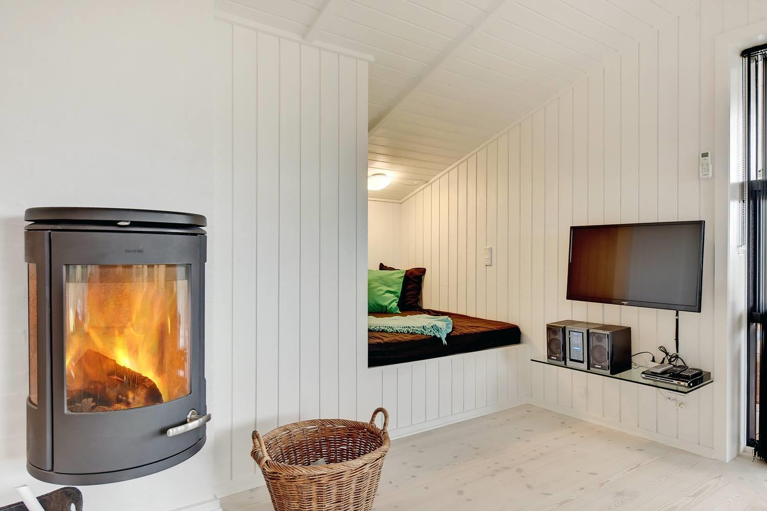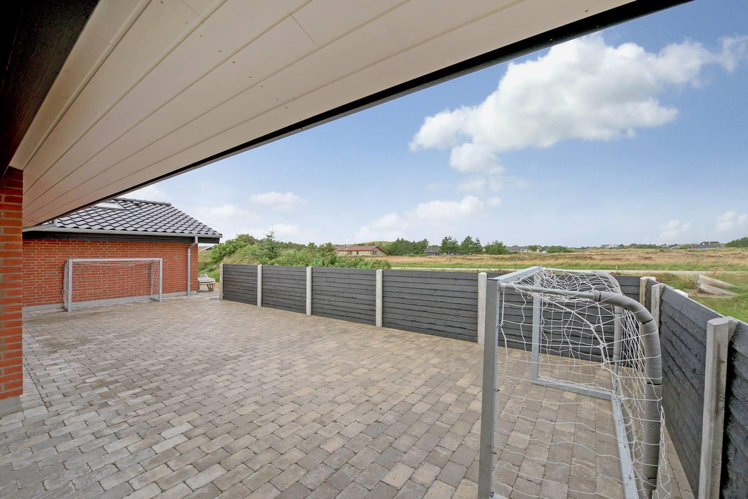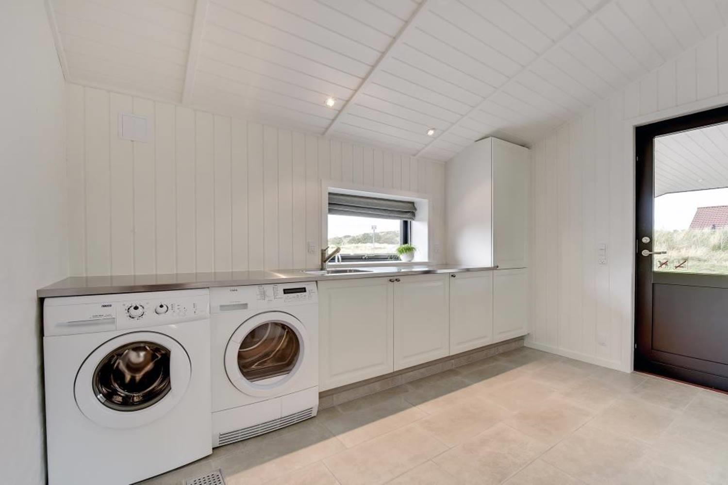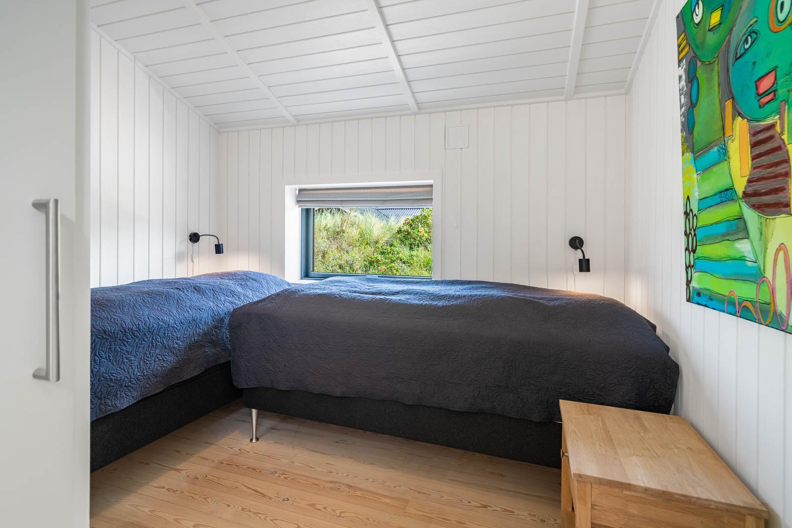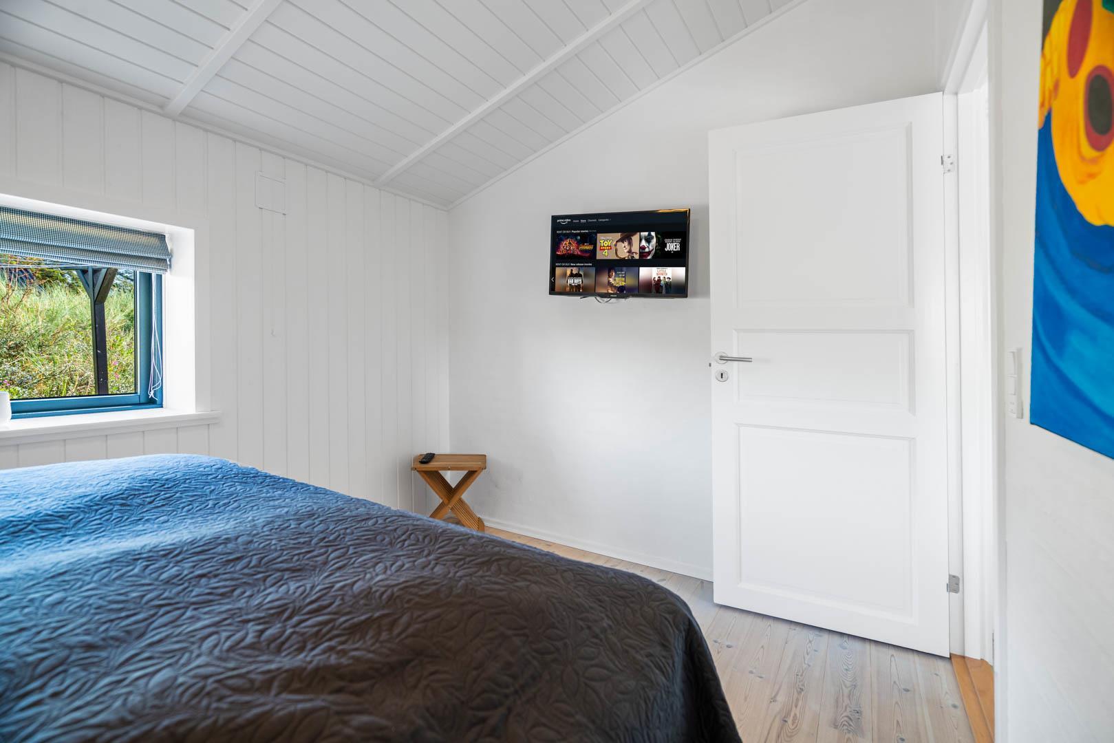 Feriehuset har 2 flotte badeværelser med bruser og gulvvarme, det ene råder over sauna og badekar. Fra stuen er der udgang til stor overdækket træterrasse, samt fliseterrasse der fordeler sig på 3 sider på huset således man kan nyde solen hele dagen. 4 gode soverum. samt alkove hvor børnene kan hygge sig. Stor entre med vaskemaskine og tørretumbler. Til børnene er der 2 fodboldmål på den ene terrasse, samt gynge og sandkasse. Fremhæves skal også den pragtfulde overdækkede terrasse med terrassevarmere som er med til at forlænge terrassesæsonen og gøre grillaftenen længere. Et "super-hus hvor rammerne er til stede for en rigtig god ferie - hele året. Parkering med autocamper på grunden ikke tilladt. Huset er udstyret med kvalitets Continental senge.