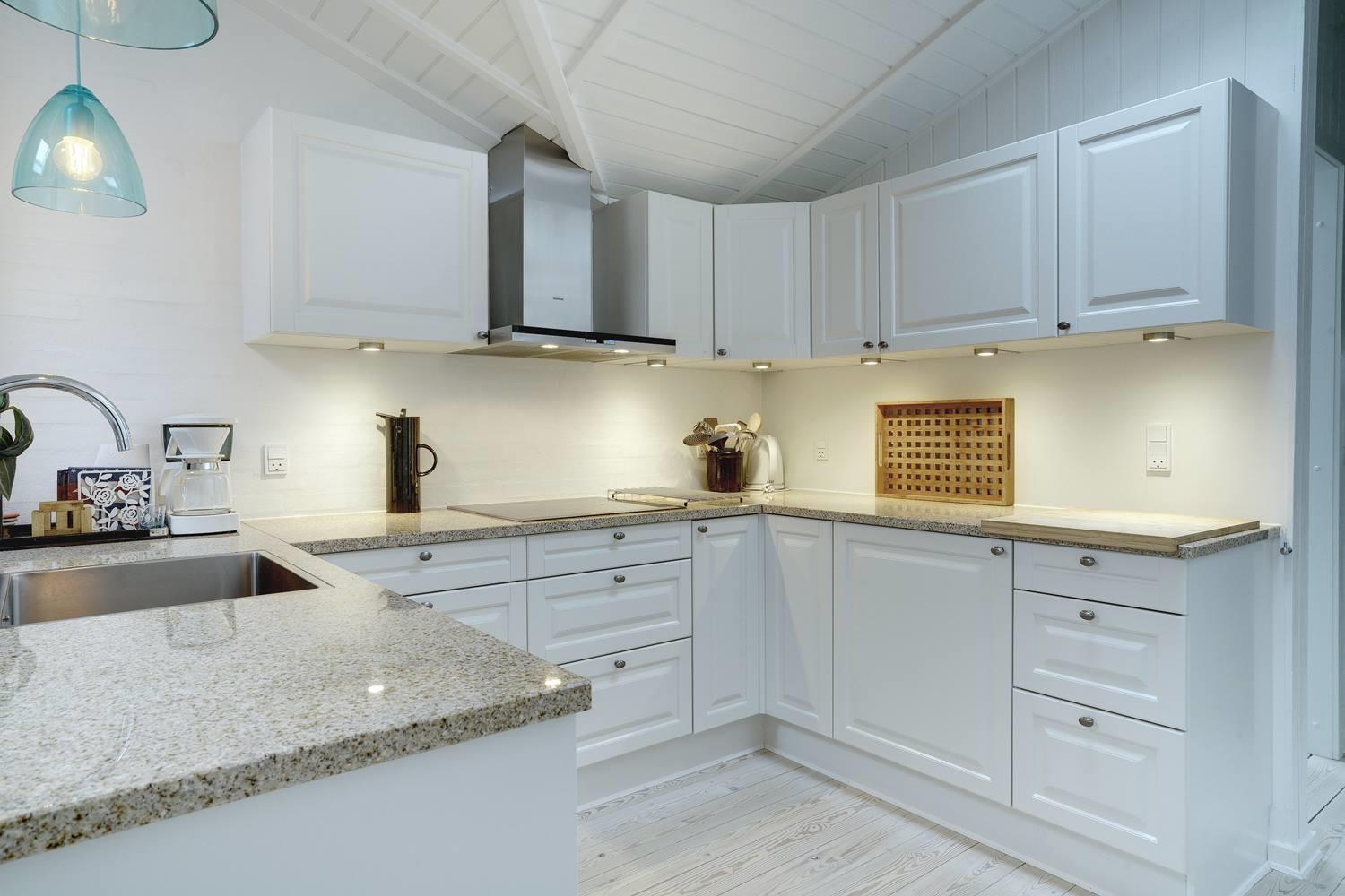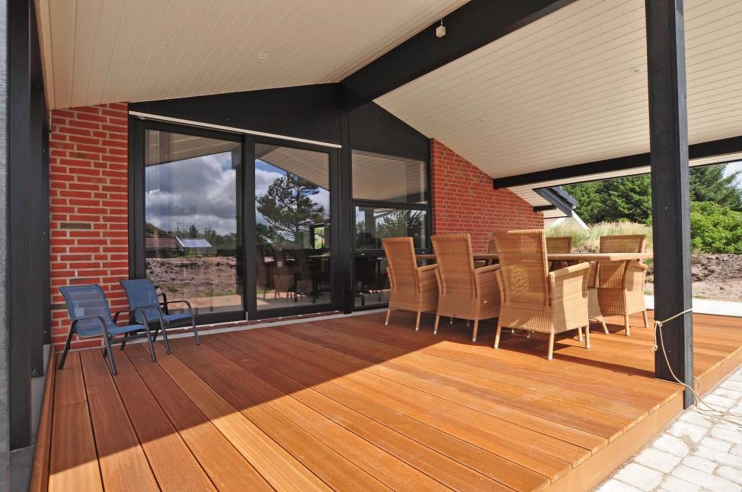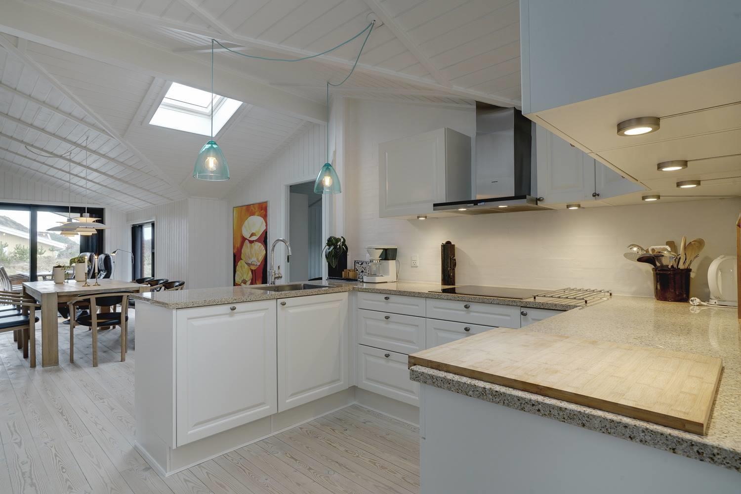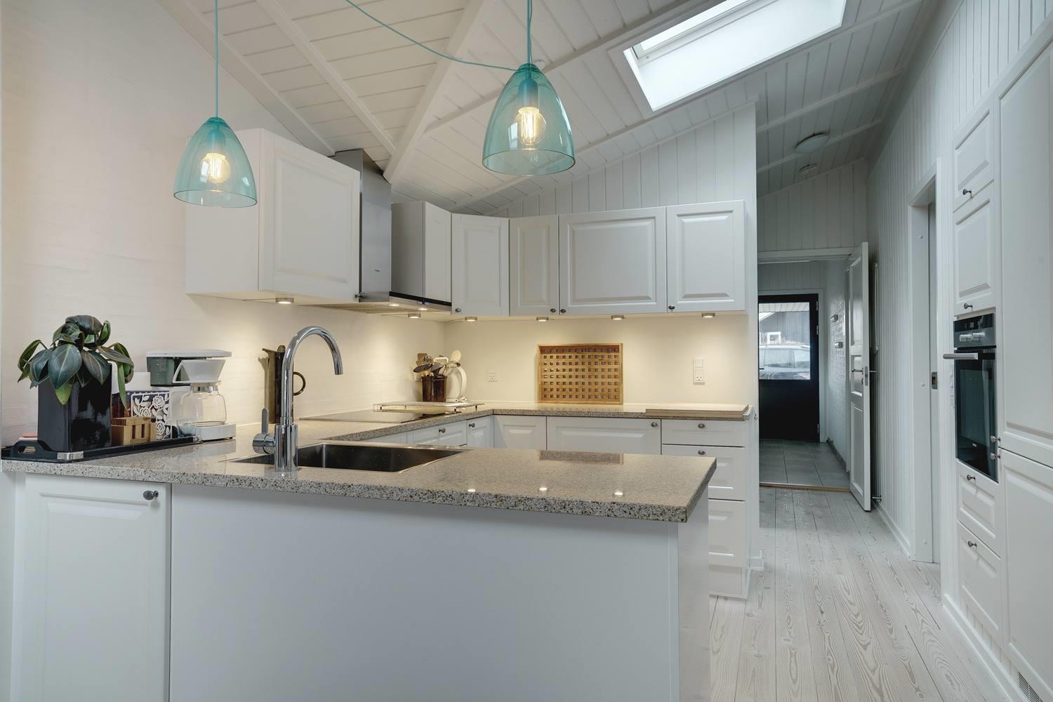På dejlig naturgrund finder I dette stilfulde indrettede kvalitetsferiehus med carport. Flot og smagfuld møbleret stue i åben forbindelse med lækkert og veludstyret køkken.