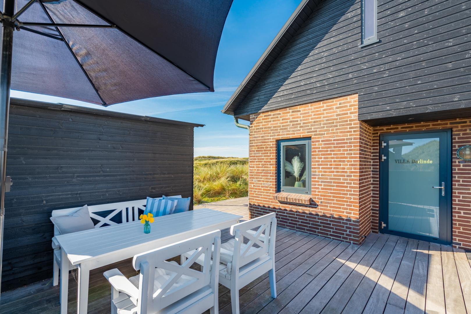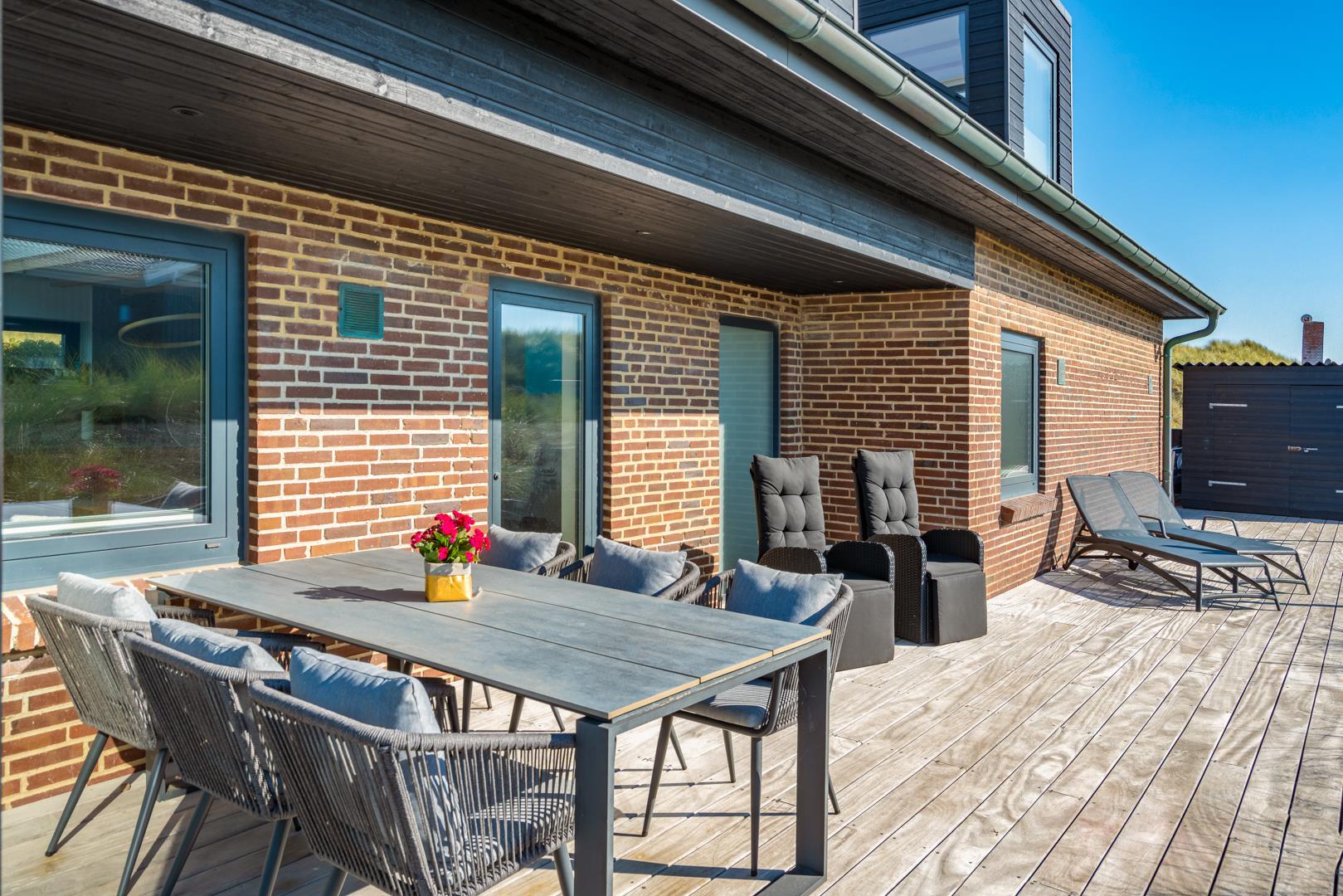 Hele huset er udstyret med WiFi og et lydsystem. Der foreligger i-Pad i huset med div. hus informationer på tysk, dansk og engelsk. Samtlige værelser har smart-tv, mens den omkringliggende terrasse med komfortable havemøbler og liggestole tilbyder favoritsteder når som helst på dagen.