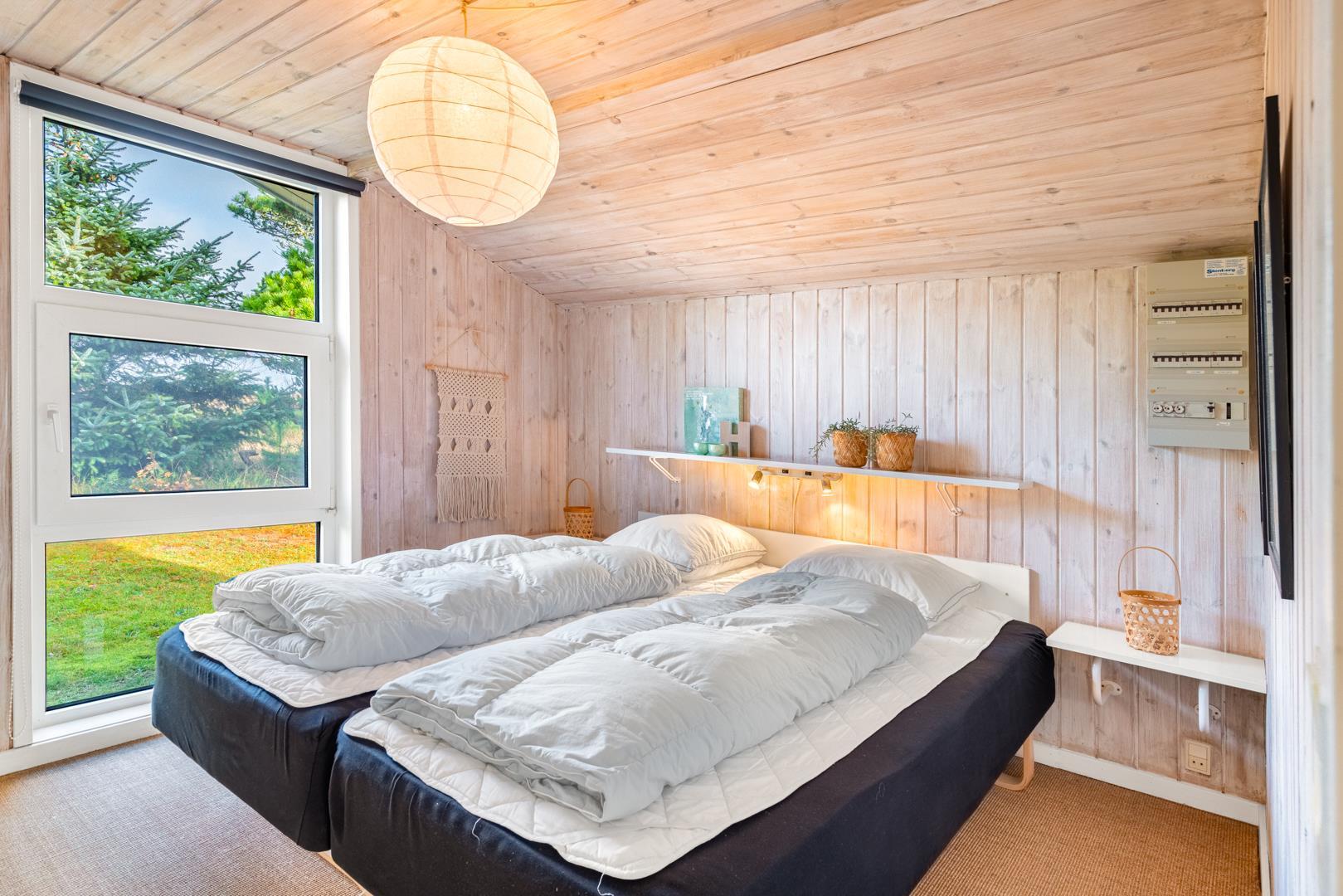 De lyse og indbydende soveværelser tilbyder komfort og ro til en god nattesøvn, og de to luksuriøse badeværelser, hvoraf det ene er udstyret med spa og det andet med sauna, sikrer dig ultimativ afslapning og velvære under dit ophold.
