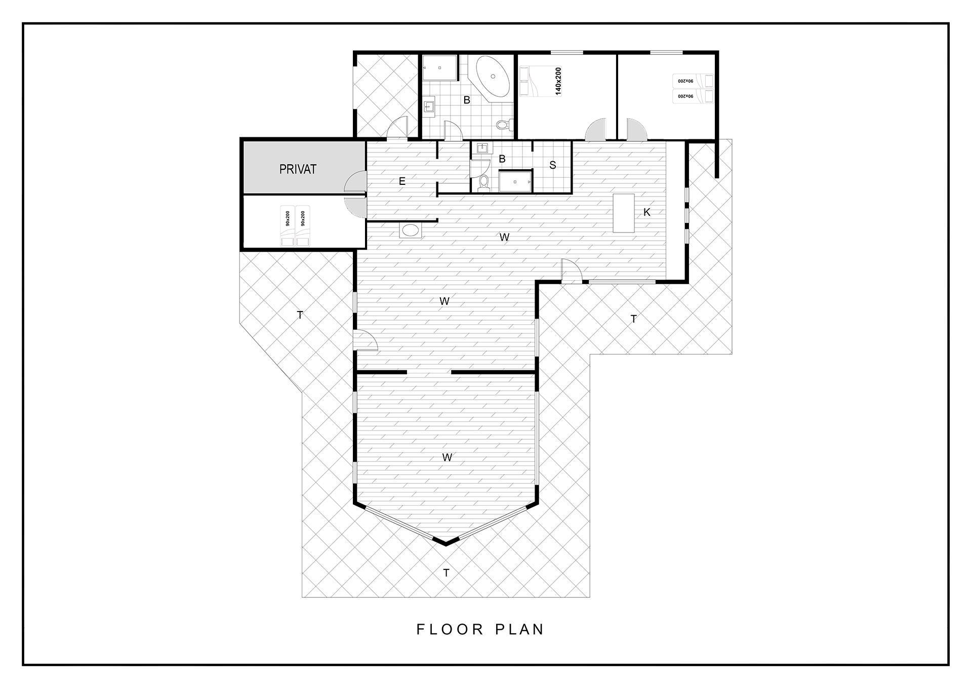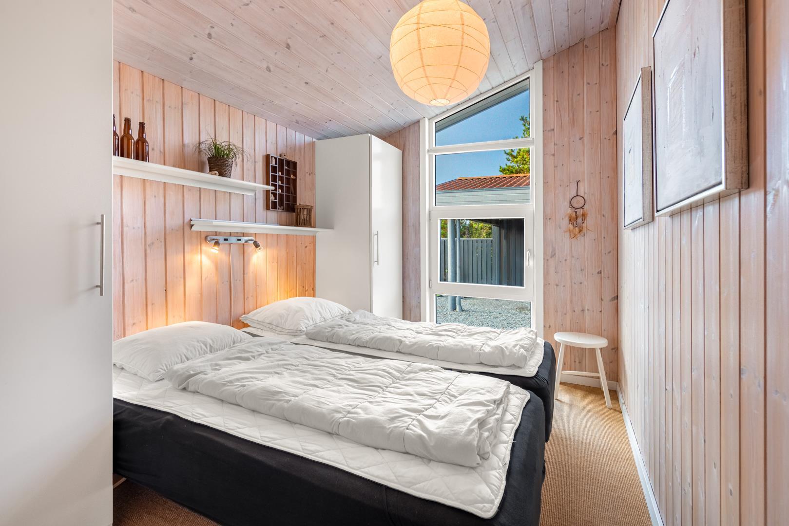 Sengestørrelse: 2 dobbeltsenge med 2 madrasser 90 x 200 cm + 1 dobbeltseng 140 x 200 cm.